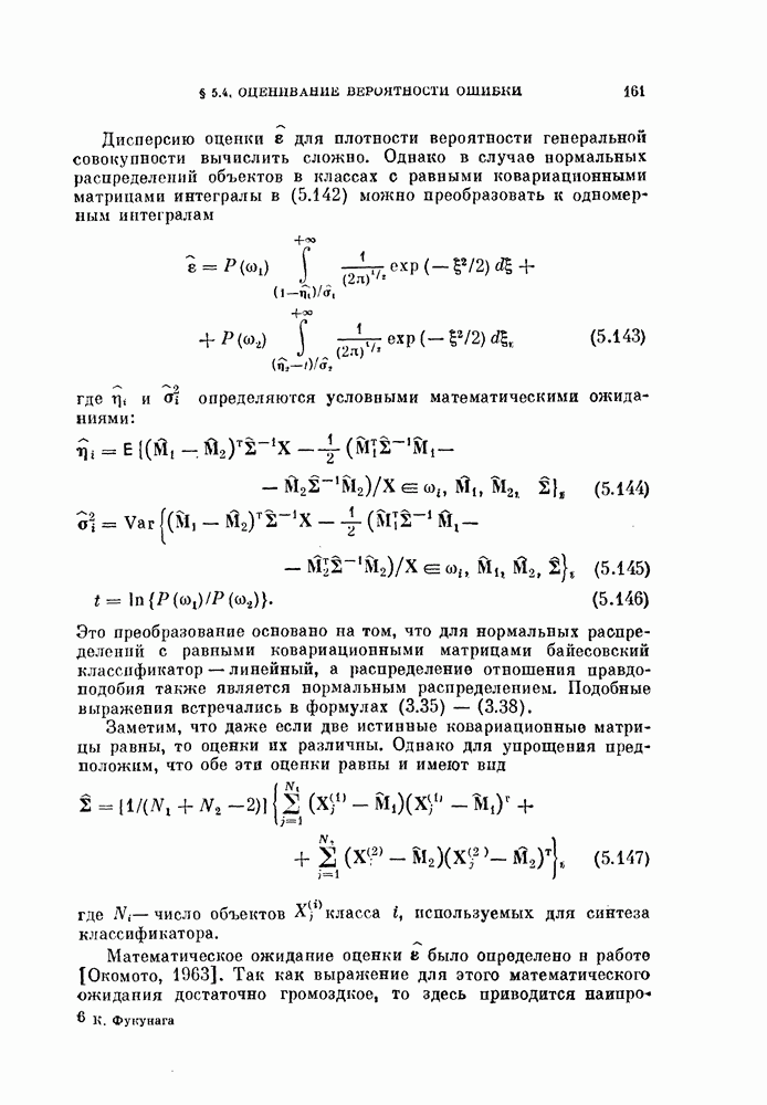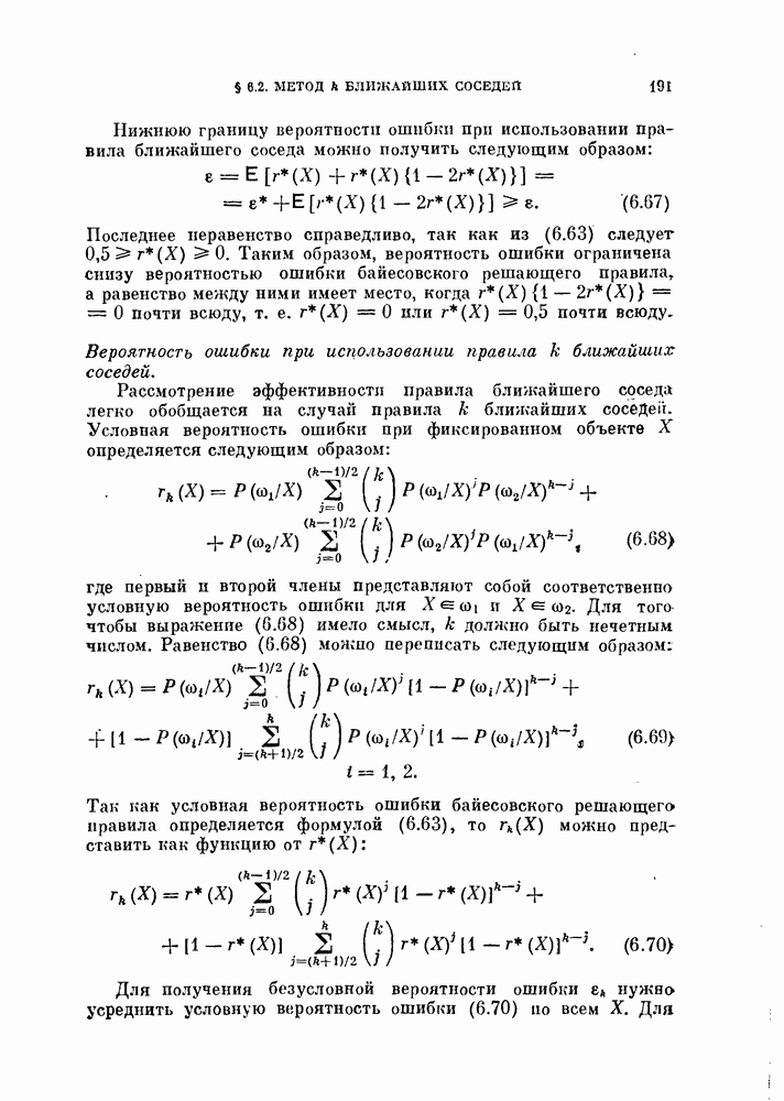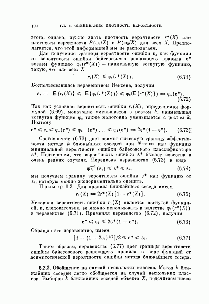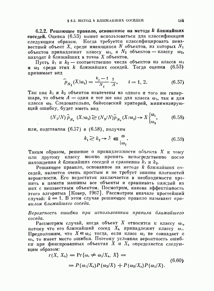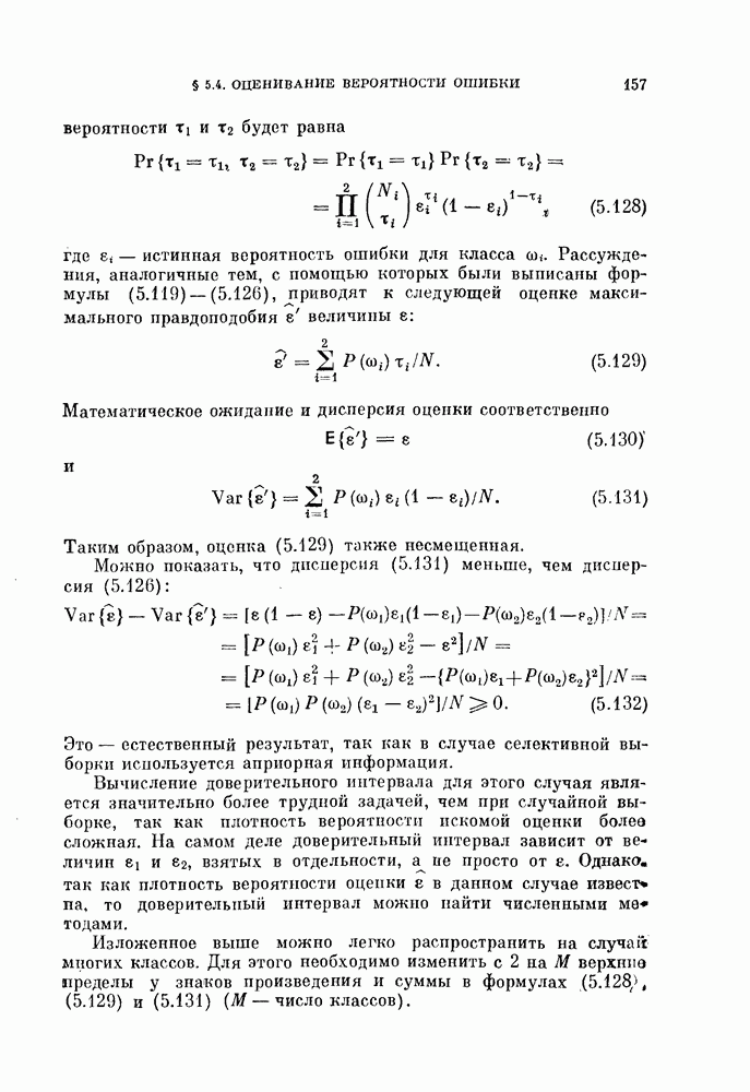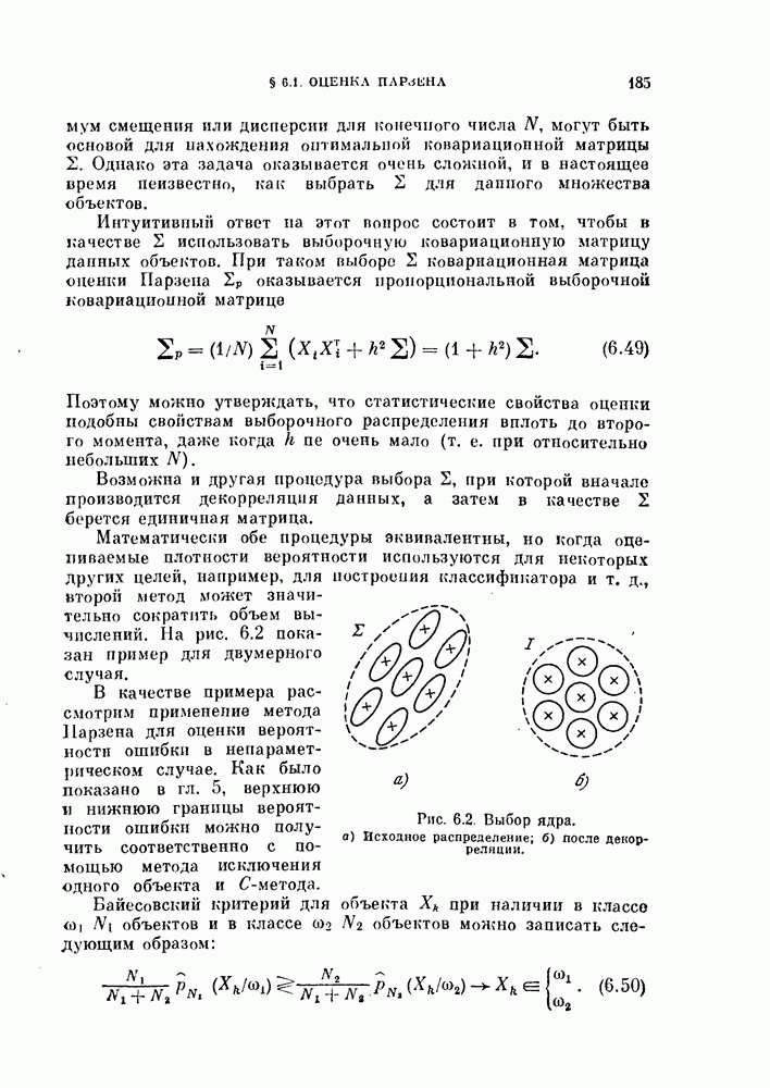 объектов используются и для синтеза байесовского классификатора, и для последующей классификации. Этот случай назовем С-методом. Из (5.140) следует, что С-метод дает, вообще говоря, заниженную оценку вероятности ошибки.