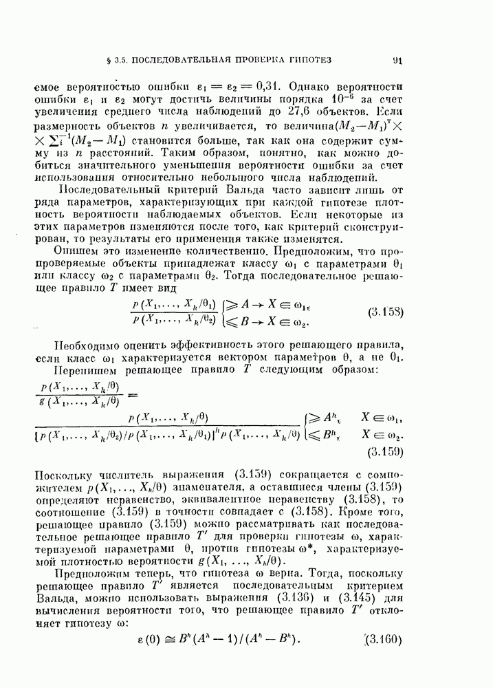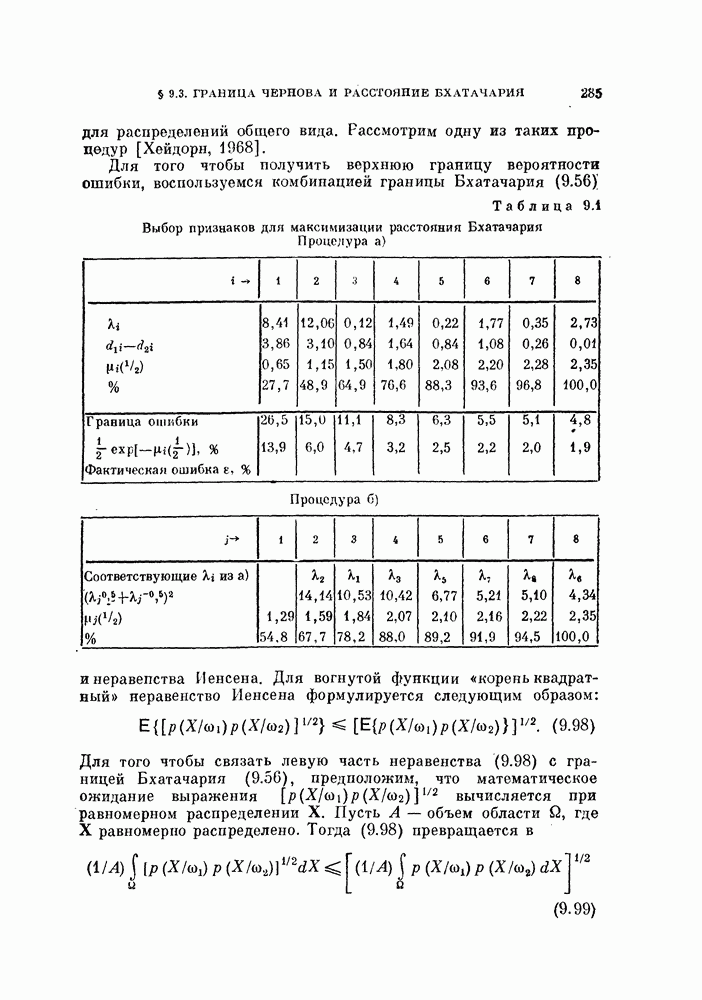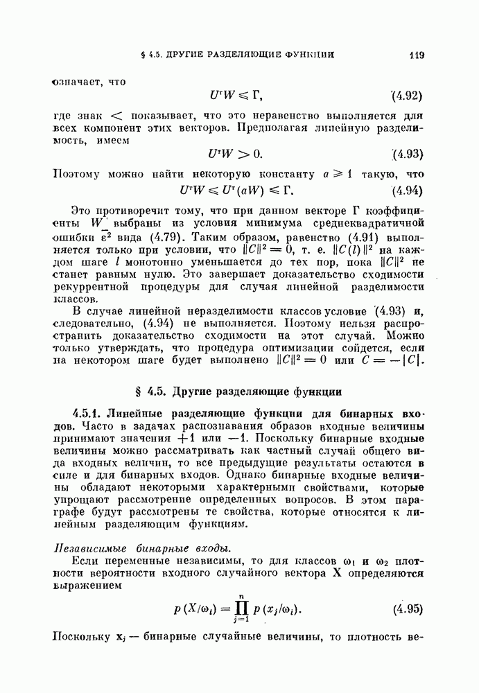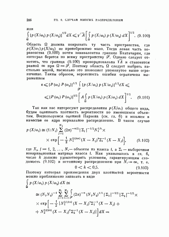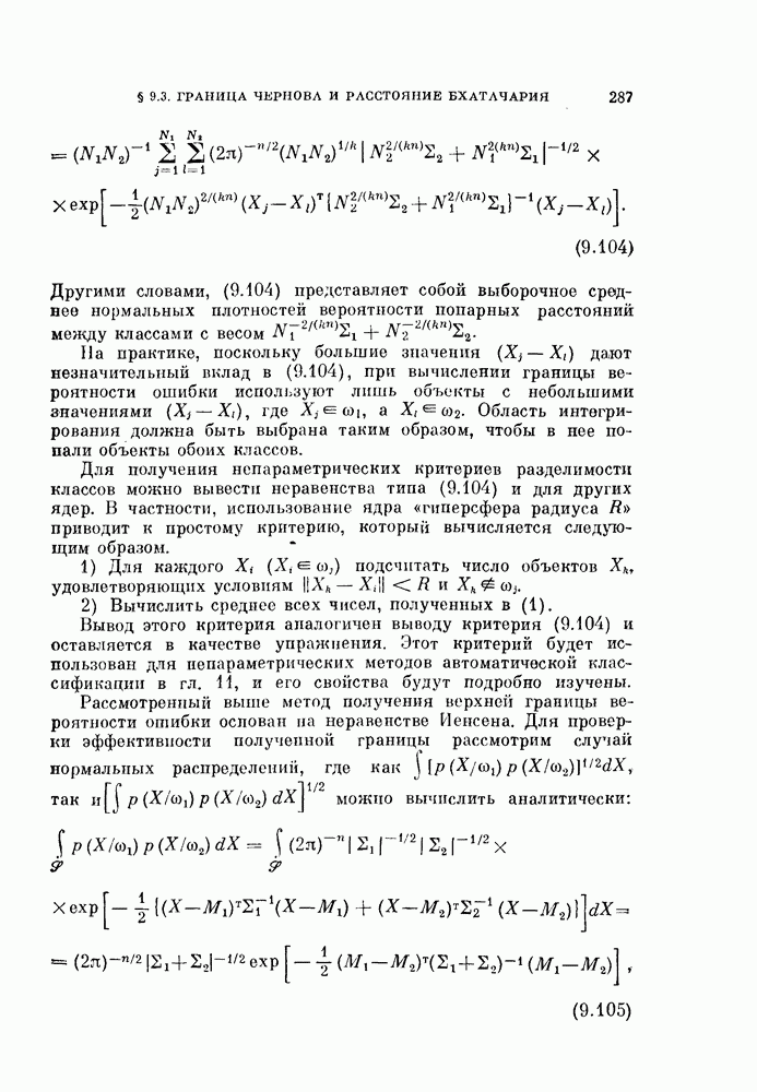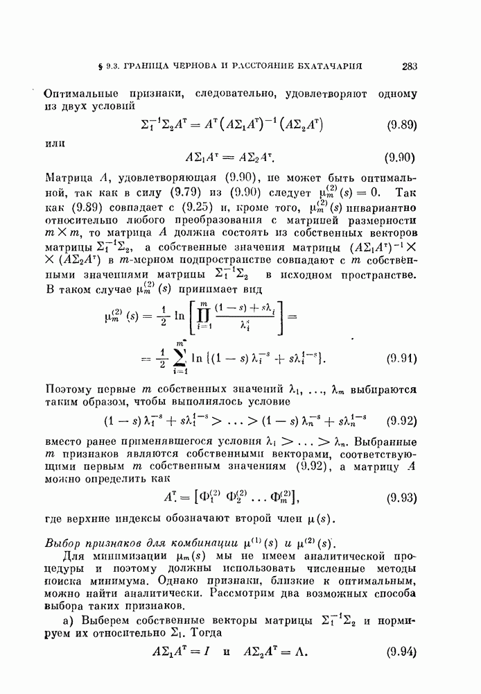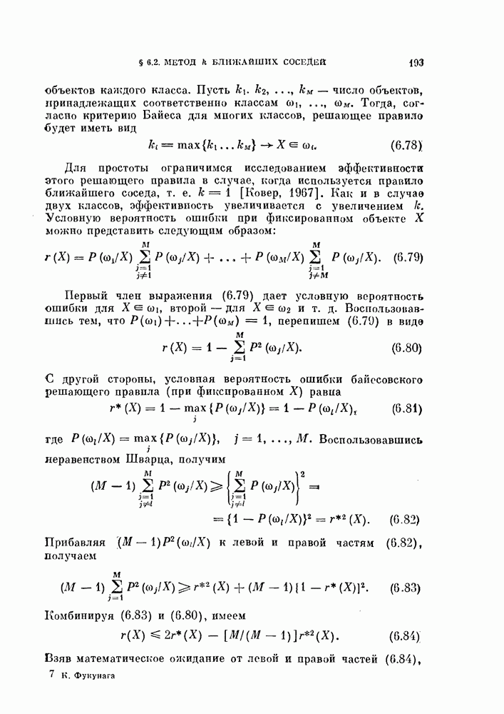 объектов используются и для синтеза байесовского классификатора, и для последующей классификации. Этот случай назовем С-методом. Из (5.140) следует, что С-метод дает, вообще говоря, заниженную оценку вероятности ошибки.