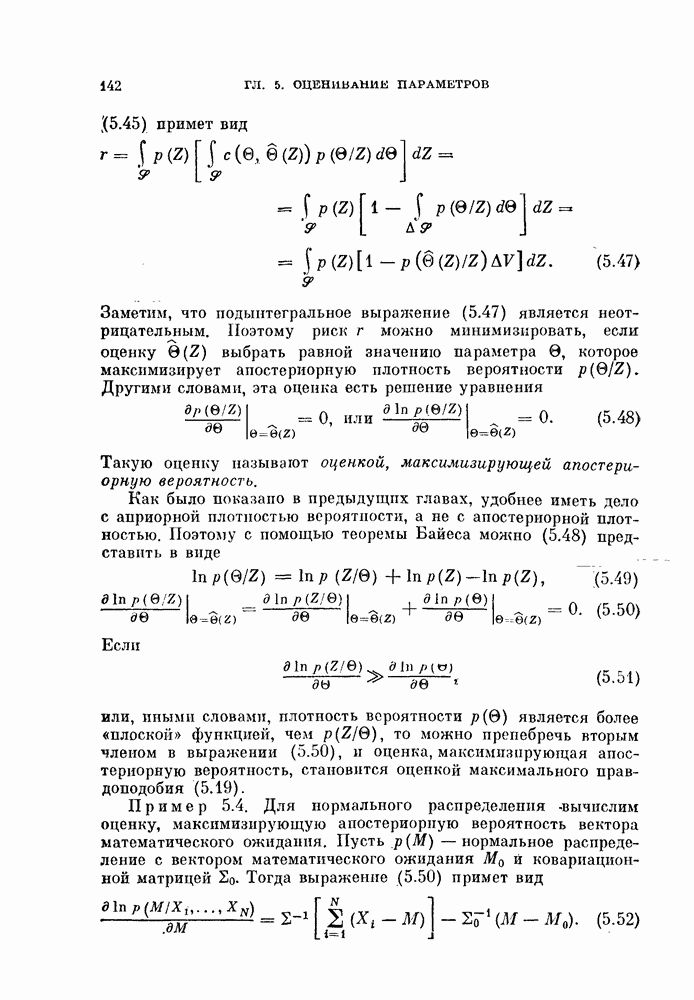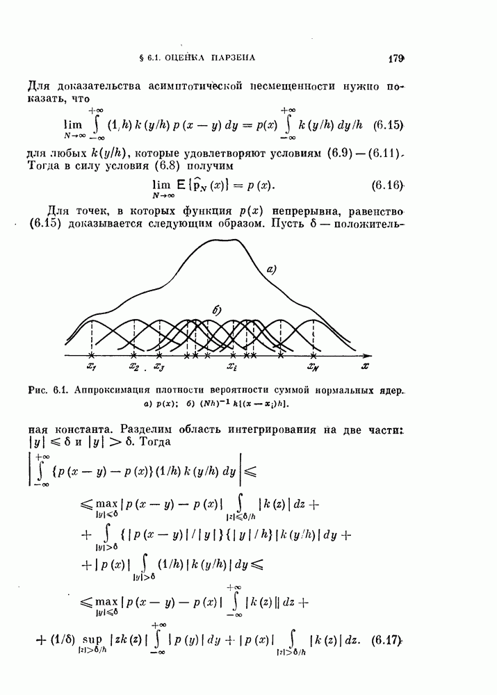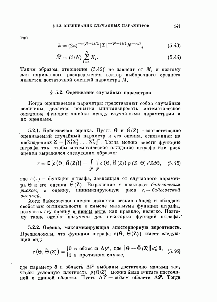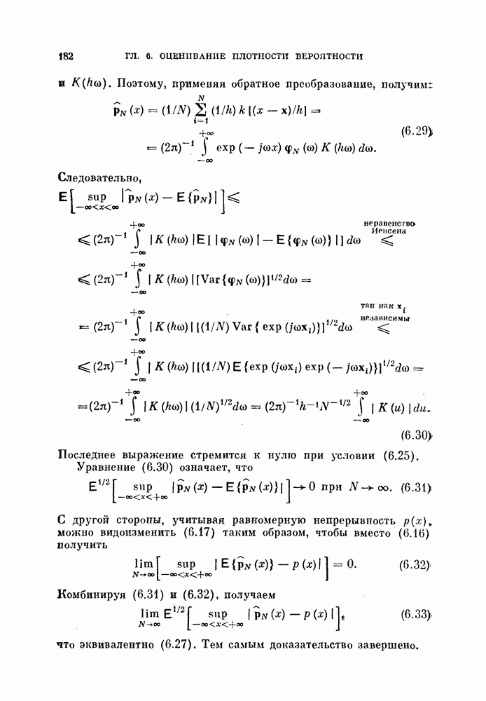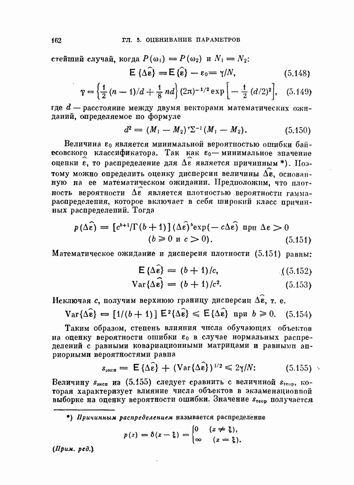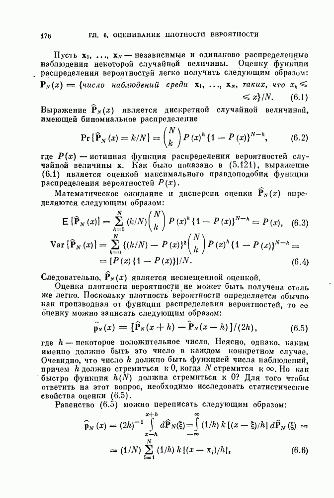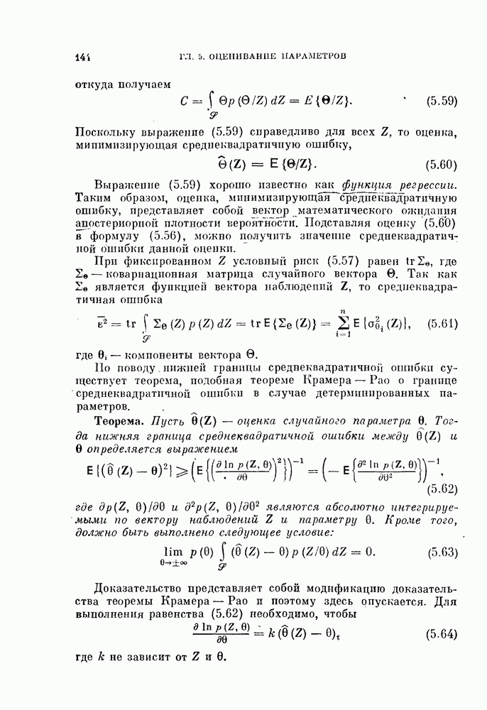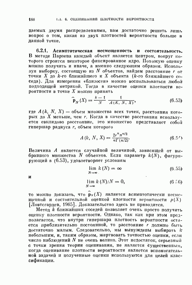 Левое неравенство (5.140) основано на предположении (5.139) и не доказано для произвольных истинных плотностей вероятности. Однако это неравенство можно проверить многими экспериментальными способами. Из выражения (3.7) видно, что равенство (5.139) выполняется тогда, когда оценка проверяемой плотности вероятности, основанная на