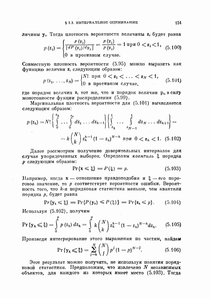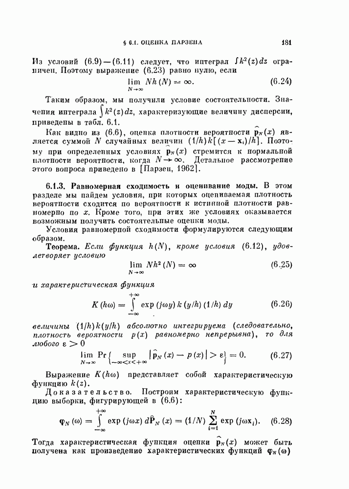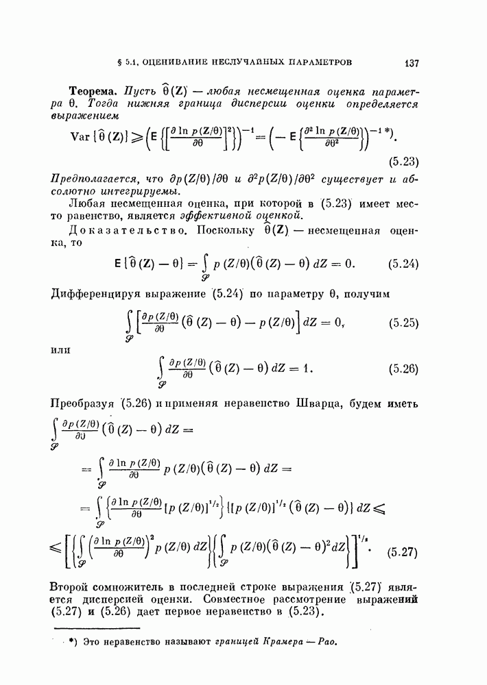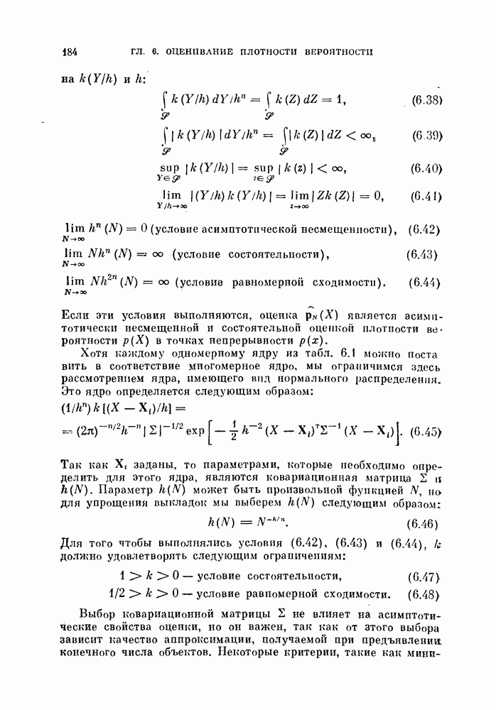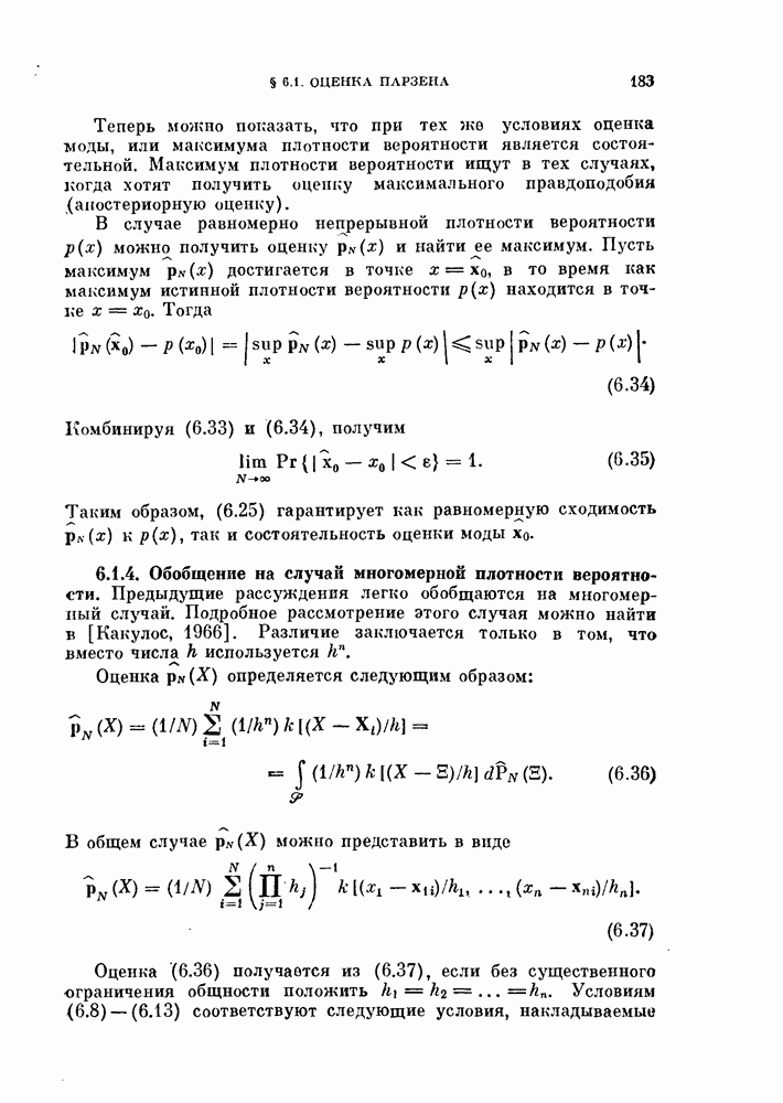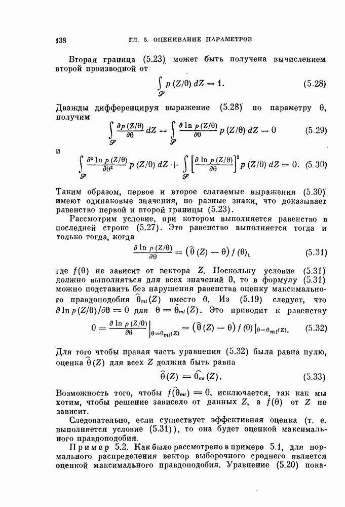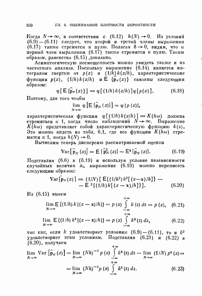 Левое неравенство (5.140) основано на предположении (5.139) и не доказано для произвольных истинных плотностей вероятности. Однако это неравенство можно проверить многими экспериментальными способами. Из выражения (3.7) видно, что равенство (5.139) выполняется тогда, когда оценка проверяемой плотности вероятности, основанная на