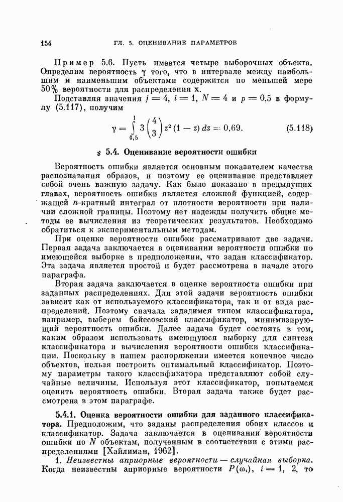 5.4.2. Оценка вероятности ошибки, когда классификатор заранее не задан.