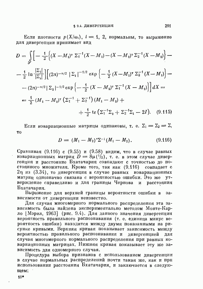 Для упрощения задачи предположим в этом параграфе, что всегда используется байесовский классификатор, минимизирующий вероятность ошибки. Тогда минимальную вероятность ошибки байесовского классификатора, которую необходимо оценить, можно рассматривать как фиксированный параметр при заданных распределениях. Кроме того, эта вероятность является минимальной для данных распределений.