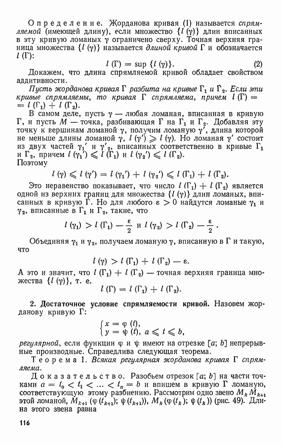 Если эти кривые спрямляемы, то кривая Г спрямляема, причем