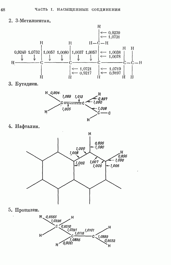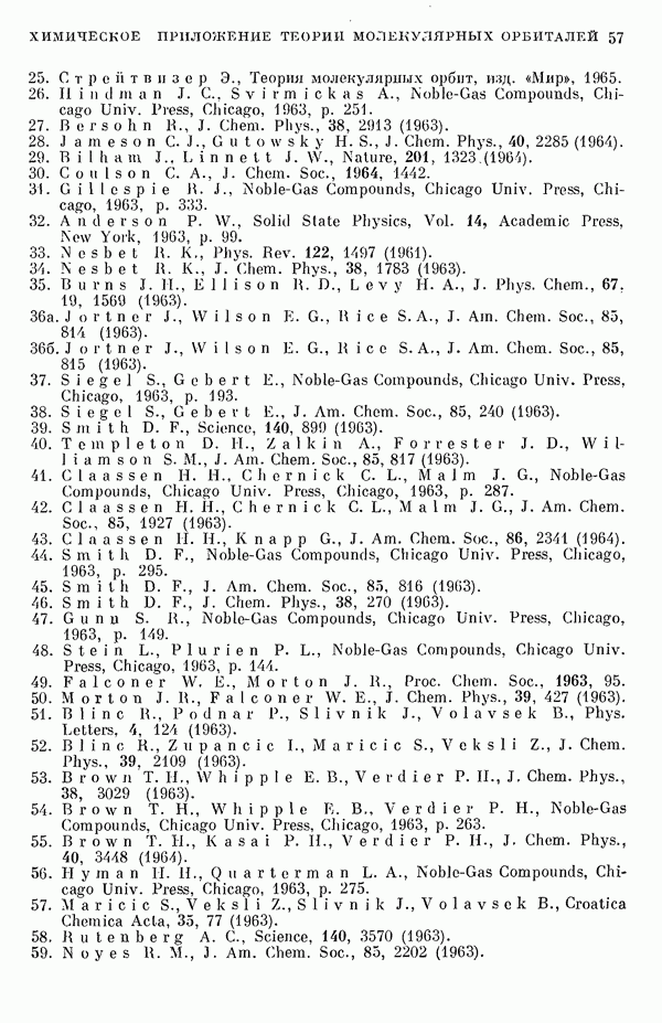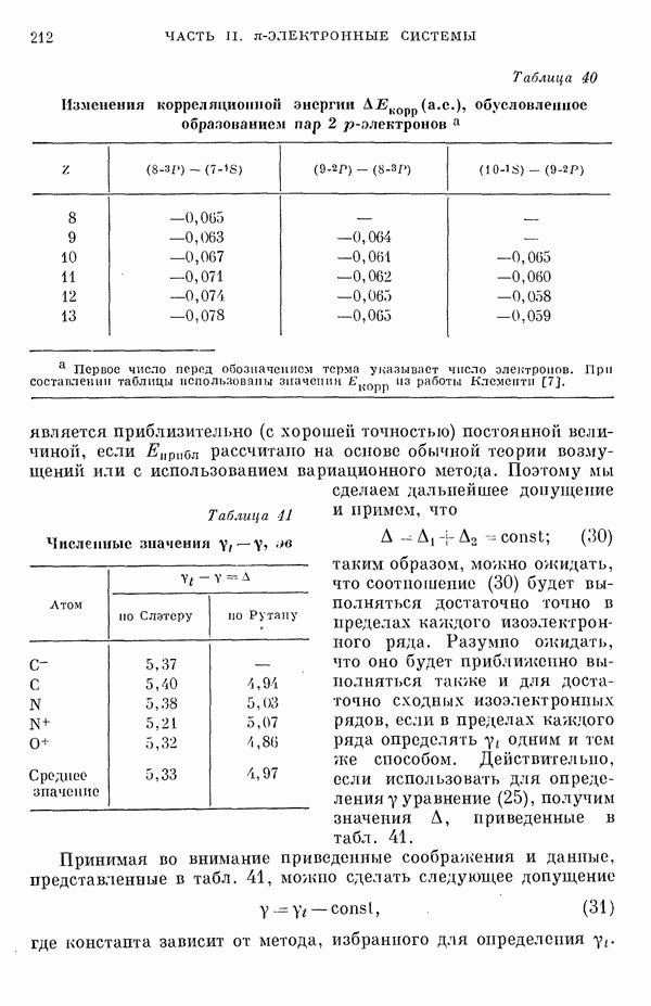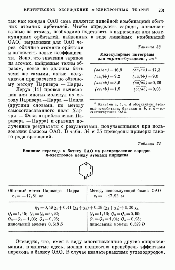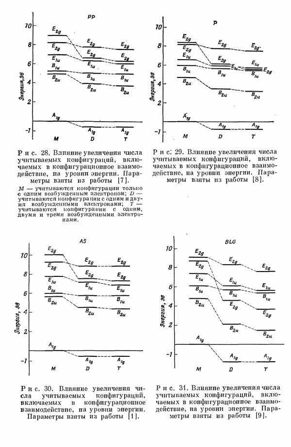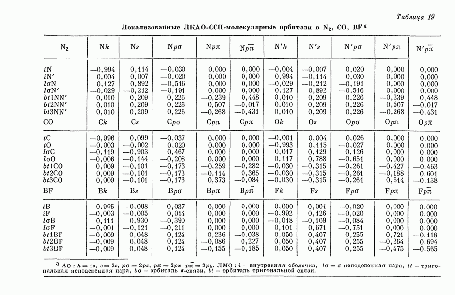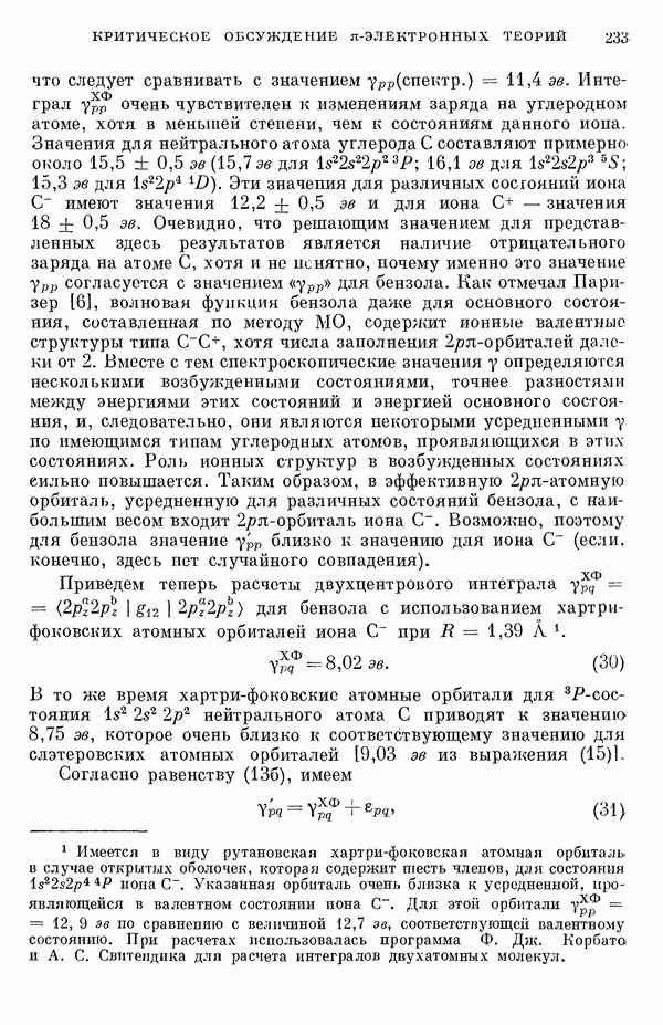(Общее число атомных орбиталей равно 61, расчет для каждой конфигурации занимает 5,04 мин на машине IBM 7090.)