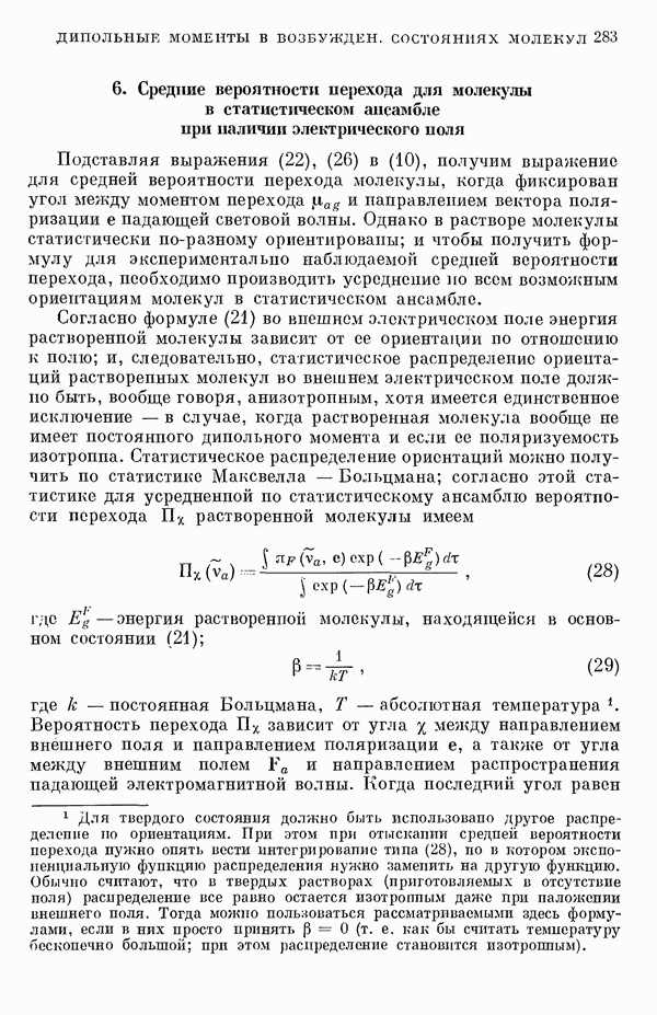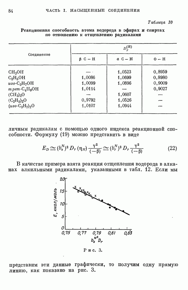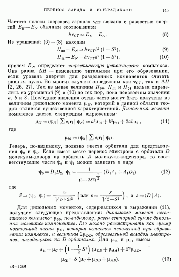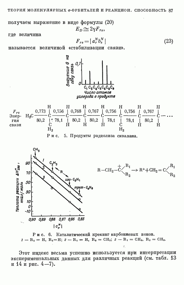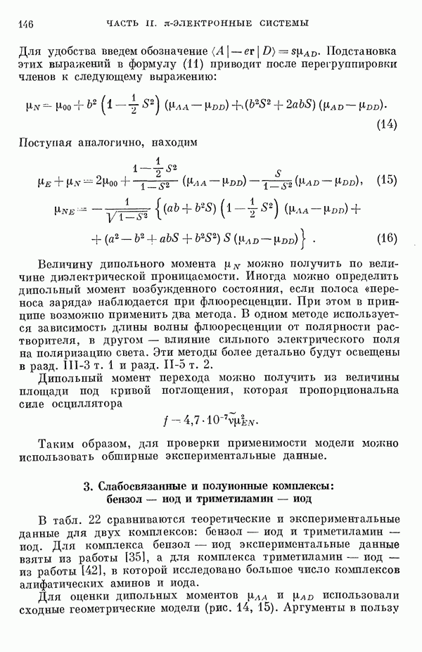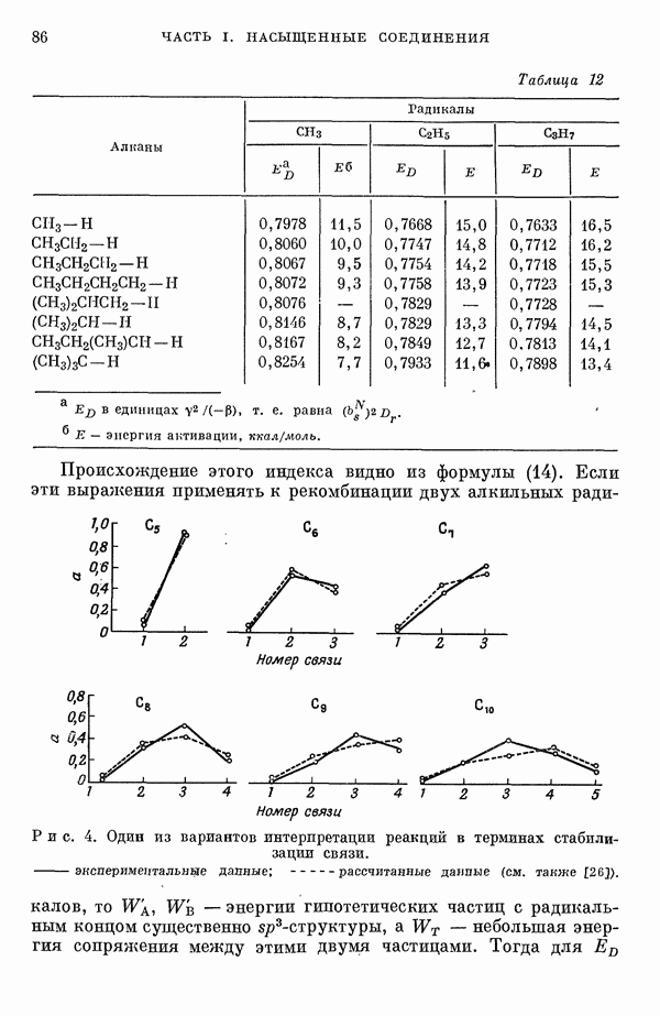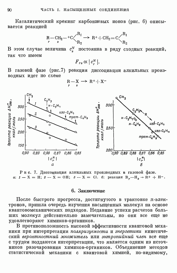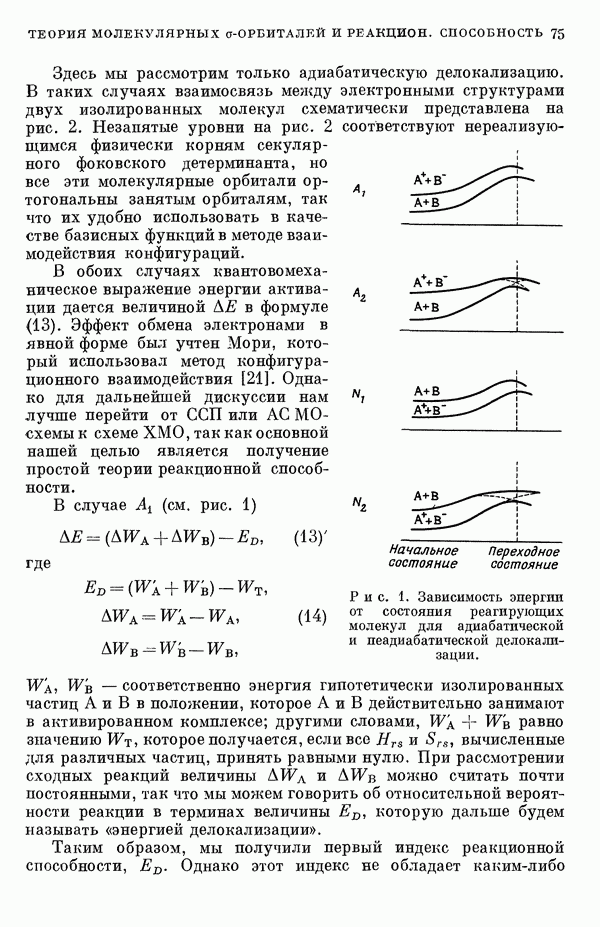 и есть квантовомеханическое выражение энергии активации, которую следует сравнивать с экспериментальной величиной. Помимо того, в некоторых случаях учитывают влияние взаимодействия с молекулами растворителя или катализатора на потенциальную энергию. Такой подход часто является очень эффективным для объяснения «эффектов сольватации» или «рабочего механизма» катализатора. Однако, по крайней мере в существующей ситуации, такие методы ни в коей мере не удобны для практического использования, и рассчитанная таким образом величина В предельно упрощенной форме теории реакционной способности мы используем «приближение изолированной молекулы». При таком подходе мы используем индексы реакционной способности, которые связаны только со свойствами изолированной молекулы реагента. При рассмотрении реакций в ароматических соединениях в качестве примера таких величин можно взять полную плотность При обсуждении квантовомеханической теории реакционной способности мы выделяли понятие энергии активации. Для получения теоретической информации о скорости реакции необходимо наряду с энергией активации знать величину так называемого «энтропийного члена». Из изложенного мы уже знаем, что теория столкновений и теория абсолютных скоростей позволяют рассчитать энтропийный член при помощи квантовой механики. Но если нас интересует ряд сходных реакций с близким видом функции потенциальной энергии для переходного состояния, можно обойтись и без подобных сложных методов, поскольку в этом случае имеет место своеобразная компенсация между изменениями энтропии и энтальпии активации. В таких случаях можно ограничиваться обсуждением относительной скорости реакции только в терминах энергии активации.