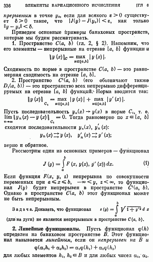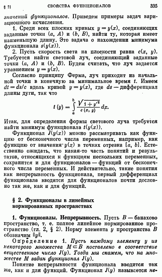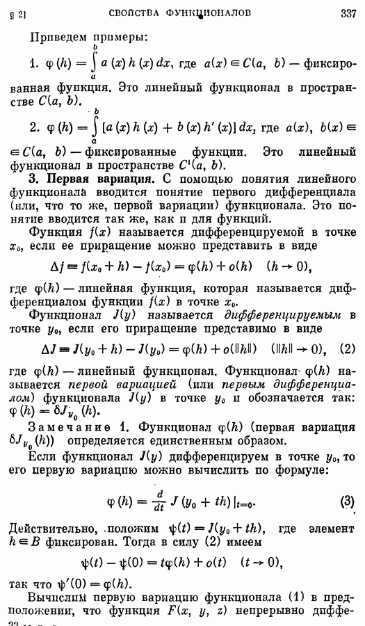 . Естественно ожидать, что какая-то часть понятий и результатов, относящихся к функциям нескольких переменных, сохранится и для функционалов — функций от бесконечного числа переменных. И действительно, такие понятия как непрерывность функционала, первый дифференциал функционала вводятся для функционалов почти дословно так же, как и для функций.