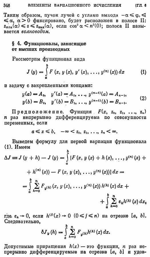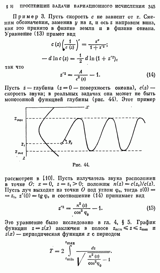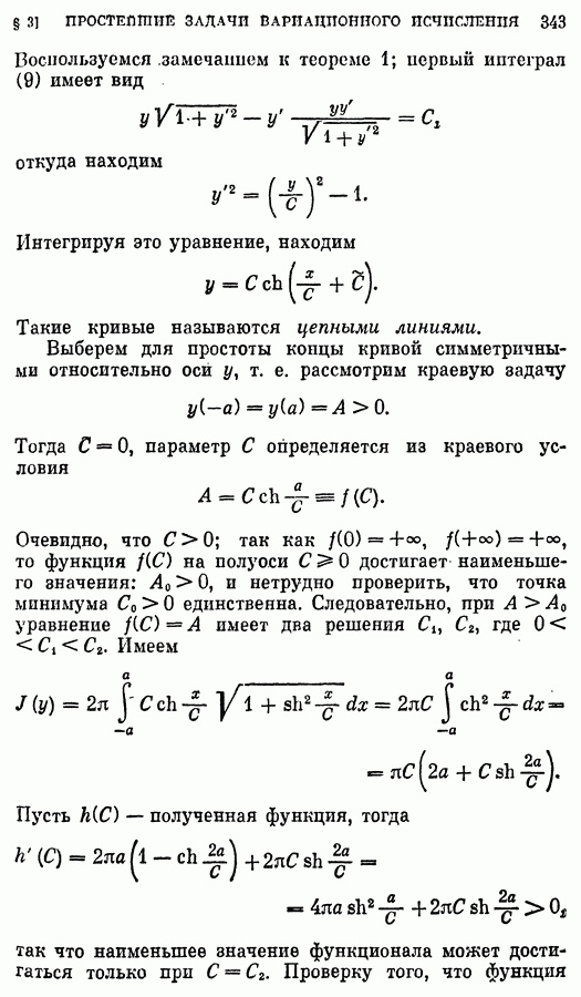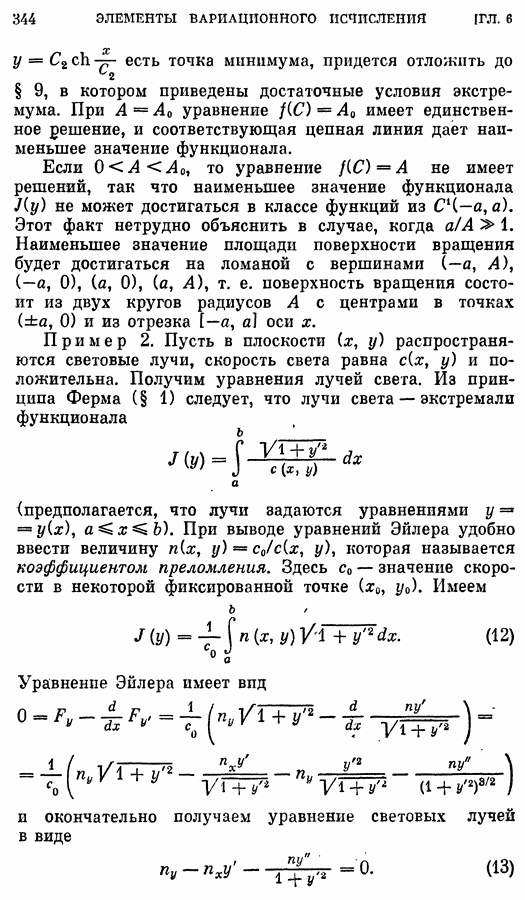 Итак, для определения формы светового луча требуется найти минимум функцйонала