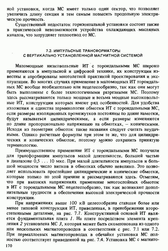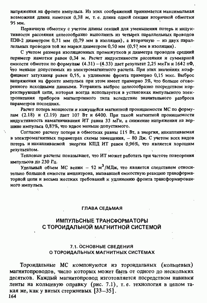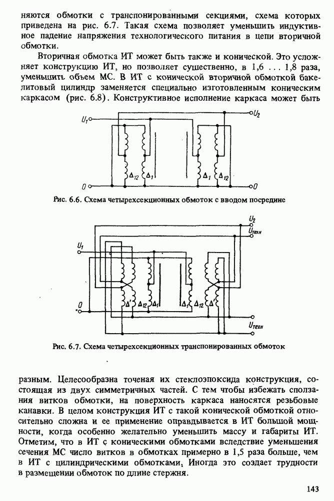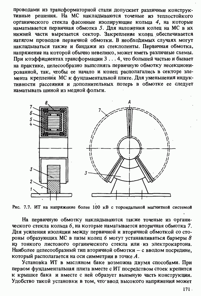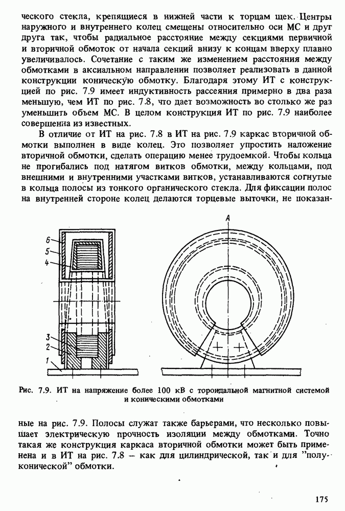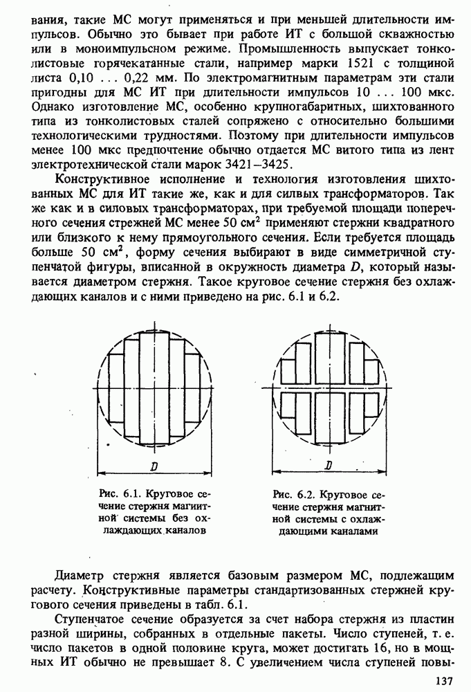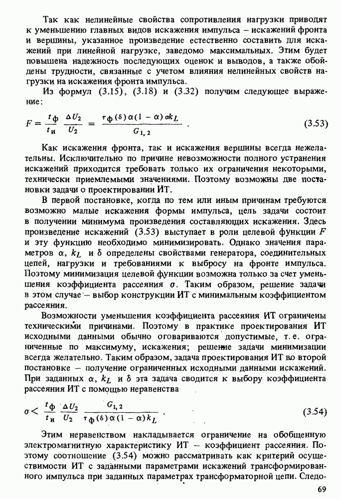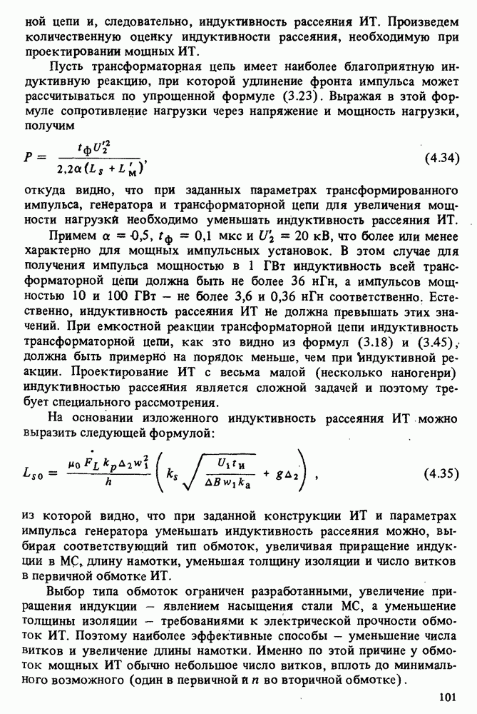 ГЛАВА ПЯТАЯ. ОСНОВЫ ПРОЕКТИРОВАНИЯ5.1. ПОСТАНОВКА ЗАДАЧИПроектирование ИТ состоит в решении комплекса взаимосвязанных частных технических задач. К ним относятся: задача о принципиальной возможности реализации ИТ, удовлетворяющего требованиям в отношении искажений формы трансформированного импульса; выбор конструктивной схемы активной части и общей компоновки ИТ, схемы и конструкции обмоток, изоляционных, магнитных материалов и типа МС; устройство ввода низшего и вывода высшего напряжения; организация режима работы и режима охлаждения МС, расчет конструктивных параметров МС, обмоток, изоляции, электромагнитных и тепловых режимов МС и обмоток; поверочный расчет по завершении отдельных этапов проектирования; оперативное внесение коррективов в ходе проектирования; выбор нормализованных и типовых элементов и повторение поверочных расчетов; оценка технико-экономических и функциональных показателей спроектированного ИТ. Решаемые в процессе проектирования задачи отличаются противоречивостью. Так, например, любые изменения конструкции ИТ, направленные на уменьшение искажений фронта трансформированного импульса или увеличение его напряжения, приводят к снижению всех, без исключения, технико-экономических показателей ИТ. При этом, в частности, увеличивается объем магнитных, проводниковых и изоляционных материалов, растут потери мощности в МС и обмотках, ухудшаются условия теплоотвода. В свою очередь, любые изменения конструкции МС и обмоток, имеющие целью улучшить теплоотвод, дополнительно снижают технико-экономические показатели, усложняют конструкцию и снижают технологичность ИТ. Противоречива также и сама задача уменьшения искажений формы трансформированного импульса. Например, уменьшение искажений вершины, как это следует из критерия осуществимости ИТ, приводит к увеличению искажений фронта и наоборот. Увеличение напряжения трансформированного импульса всегда увеличивает искажения вершины и фронта импульса. В целом можно констатировать, что всякие изменения конструкции с целью повышения функциональных показателей приводят к снижению технико-экономических и, наоборот, повышение технико-экономических показателей снижает функциональные. Таким образом, задача проектирования ИТ выглядит весьма сложной и неоднозначной. По этой причине вне зависимости от выбранной методики и способа расчета проектирование всегда состоит из ряда последовательных расчетных приближений, после выполнения каждого из которых проводится оценка и сопоставление полученных результатов и вносятся необходимые поправки. В связи со сложным и противоречивым характером задач, решаемых в процессе проектирования ИТ, особенно важно выбрать некоторую стратегическую линию проектирования. Для этого необходим простой, но достаточно общий критерий качества ИТ, которым бы учитывались главные технико-экономические показатели ИТ. Этот вопрос подробно исследовался, в результате чего был выработан критерий качества в виде минимума объема активной части ИТ, т. е. минимума объема стали МС и меди обмоток [28]. Обоснованием выбора такого критерия послужило то, что объему активной части пропорциональны потери мощности, стоимость, массогабаритные и другие характеристики ИТ. Если иметь в виду в основном мощные ИТ, критерий в виде минимума об