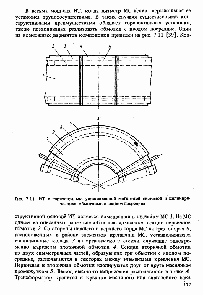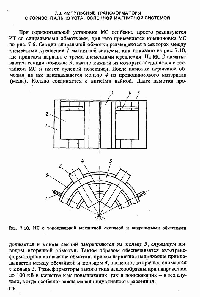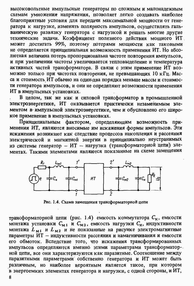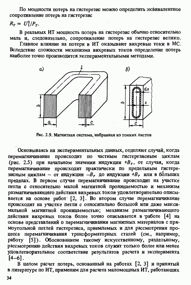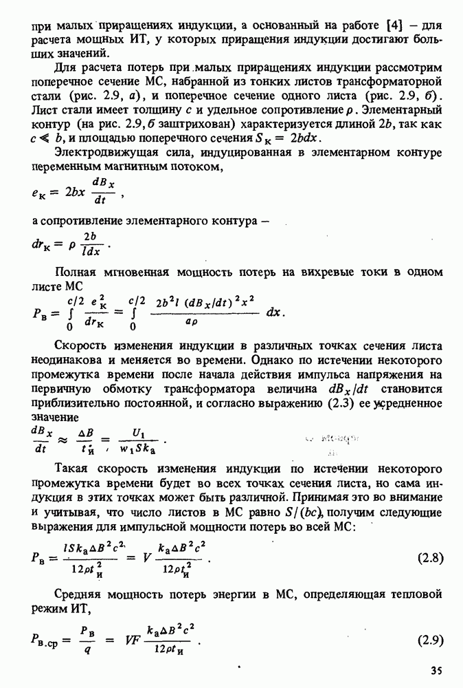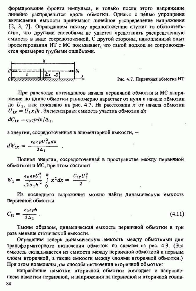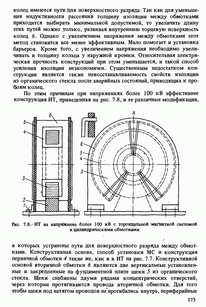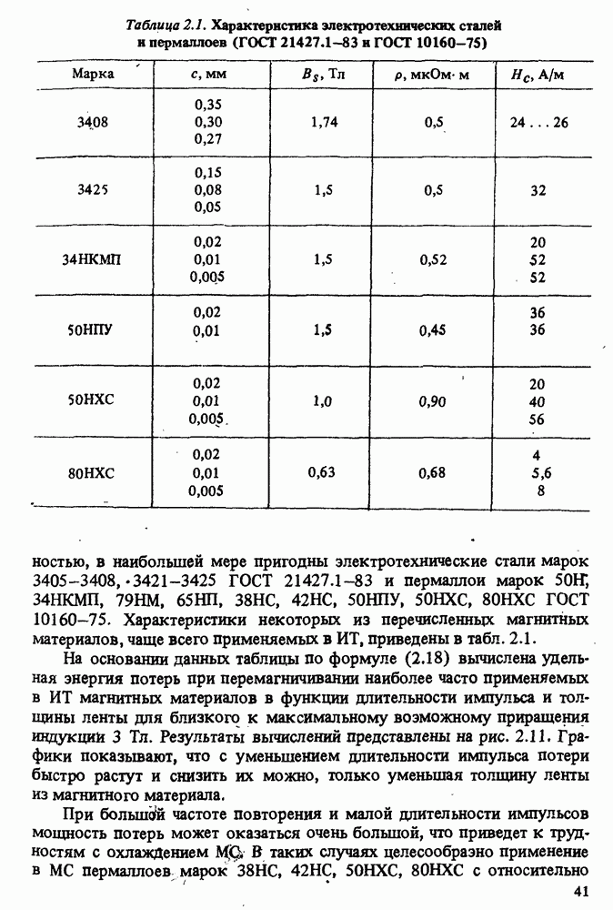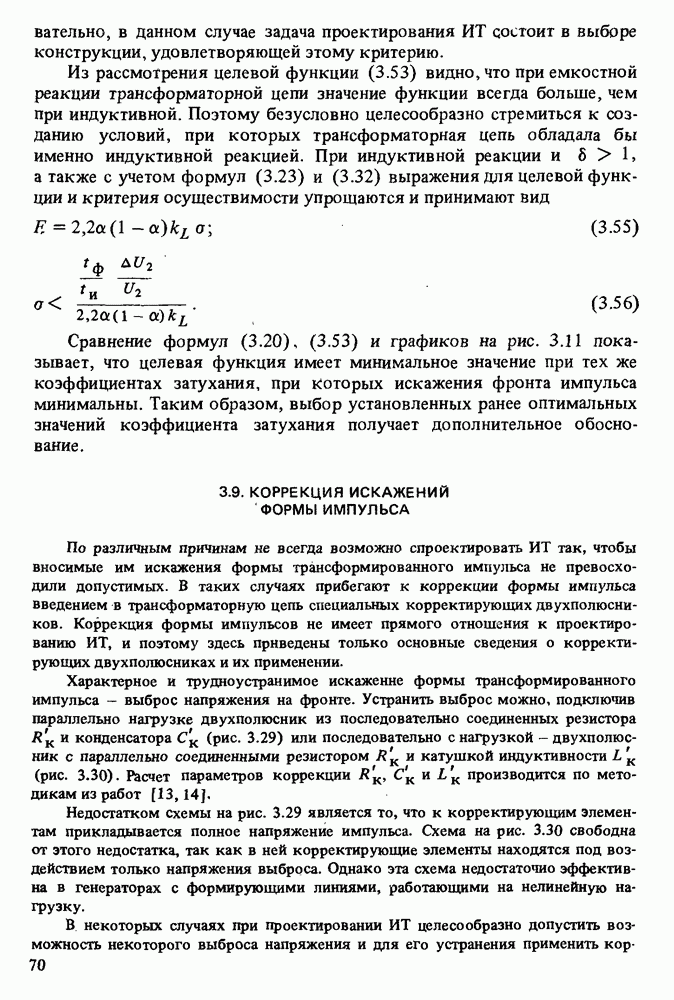 ГЛАВА ПЯТАЯ. ОСНОВЫ ПРОЕКТИРОВАНИЯ5.1. ПОСТАНОВКА ЗАДАЧИПроектирование ИТ состоит в решении комплекса взаимосвязанных частных технических задач. К ним относятся: задача о принципиальной возможности реализации ИТ, удовлетворяющего требованиям в отношении искажений формы трансформированного импульса; выбор конструктивной схемы активной части и общей компоновки ИТ, схемы и конструкции обмоток, изоляционных, магнитных материалов и типа МС; устройство ввода низшего и вывода высшего напряжения; организация режима работы и режима охлаждения МС, расчет конструктивных параметров МС, обмоток, изоляции, электромагнитных и тепловых режимов МС и обмоток; поверочный расчет по завершении отдельных этапов проектирования; оперативное внесение коррективов в ходе проектирования; выбор нормализованных и типовых элементов и повторение поверочных расчетов; оценка технико-экономических и функциональных показателей спроектированного ИТ. Решаемые в процессе проектирования задачи отличаются противоречивостью. Так, например, любые изменения конструкции ИТ, направленные на уменьшение искажений фронта трансформированного импульса или увеличение его напряжения, приводят к снижению всех, без исключения, технико-экономических показателей ИТ. При этом, в частности, увеличивается объем магнитных, проводниковых и изоляционных материалов, растут потери мощности в МС и обмотках, ухудшаются условия теплоотвода. В свою очередь, любые изменения конструкции МС и обмоток, имеющие целью улучшить теплоотвод, дополнительно снижают технико-экономические показатели, усложняют конструкцию и снижают технологичность ИТ. Противоречива также и сама задача уменьшения искажений формы трансформированного импульса. Например, уменьшение искажений вершины, как это следует из критерия осуществимости ИТ, приводит к увеличению искажений фронта и наоборот. Увеличение напряжения трансформированного импульса всегда увеличивает искажения вершины и фронта импульса. В целом можно констатировать, что всякие изменения конструкции с целью повышения функциональных показателей приводят к снижению технико-экономических и, наоборот, повышение технико-экономических показателей снижает функциональные. Таким образом, задача проектирования ИТ выглядит весьма сложной и неоднозначной. По этой причине вне зависимости от выбранной методики и способа расчета проектирование всегда состоит из ряда последовательных расчетных приближений, после выполнения каждого из которых проводится оценка и сопоставление полученных результатов и вносятся необходимые поправки. В связи со сложным и противоречивым характером задач, решаемых в процессе проектирования ИТ, особенно важно выбрать некоторую стратегическую линию проектирования. Для этого необходим простой, но достаточно общий критерий качества ИТ, которым бы учитывались главные технико-экономические показатели ИТ. Этот вопрос подробно исследовался, в результате чего был выработан критерий качества в виде минимума объема активной части ИТ, т. е. минимума объема стали МС и меди обмоток [28]. Обоснованием выбора такого критерия послужило то, что объему активной части пропорциональны потери мощности, стоимость, массогабаритные и другие характеристики ИТ. Если иметь в виду в основном мощные ИТ, критерий в виде минимума об