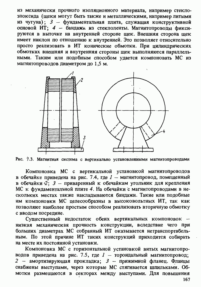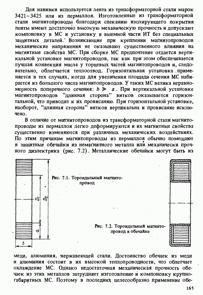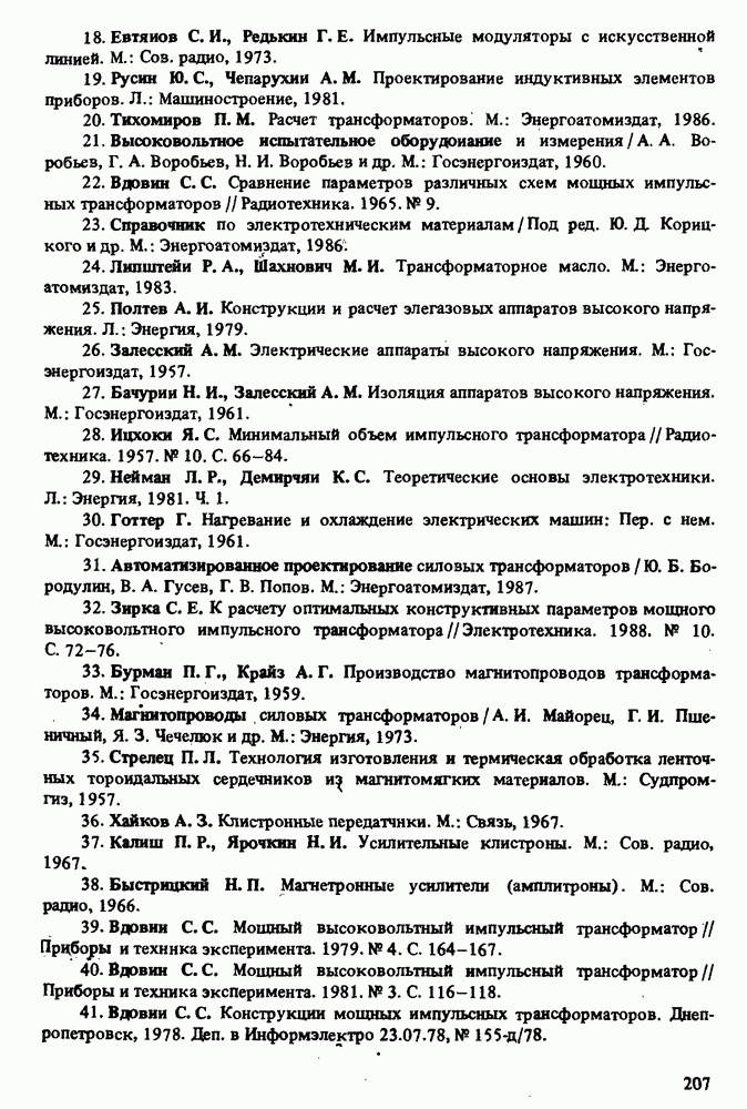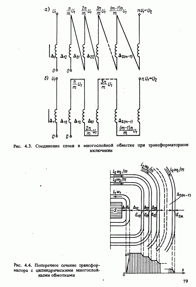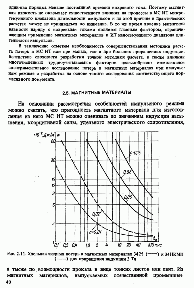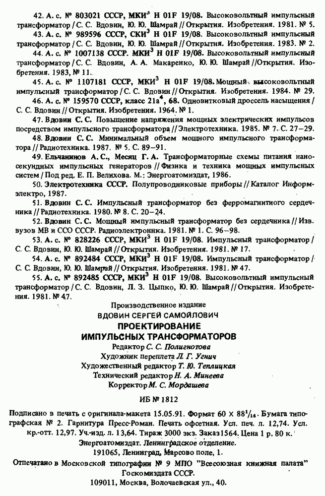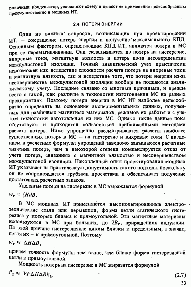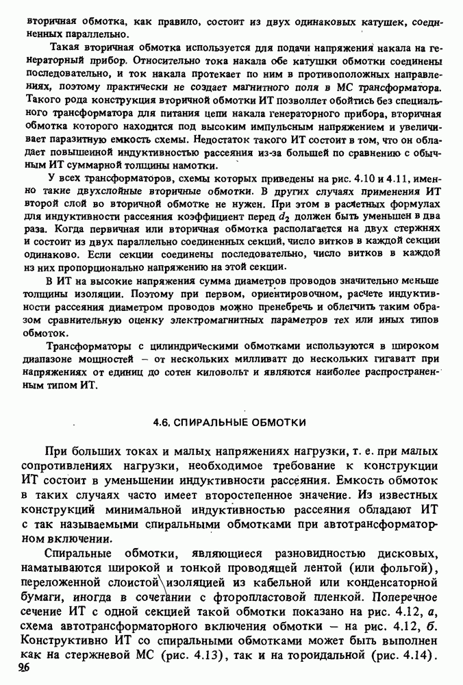 ГЛАВА ПЯТАЯ. ОСНОВЫ ПРОЕКТИРОВАНИЯ5.1. ПОСТАНОВКА ЗАДАЧИПроектирование ИТ состоит в решении комплекса взаимосвязанных частных технических задач. К ним относятся: задача о принципиальной возможности реализации ИТ, удовлетворяющего требованиям в отношении искажений формы трансформированного импульса; выбор конструктивной схемы активной части и общей компоновки ИТ, схемы и конструкции обмоток, изоляционных, магнитных материалов и типа МС; устройство ввода низшего и вывода высшего напряжения; организация режима работы и режима охлаждения МС, расчет конструктивных параметров МС, обмоток, изоляции, электромагнитных и тепловых режимов МС и обмоток; поверочный расчет по завершении отдельных этапов проектирования; оперативное внесение коррективов в ходе проектирования; выбор нормализованных и типовых элементов и повторение поверочных расчетов; оценка технико-экономических и функциональных показателей спроектированного ИТ. Решаемые в процессе проектирования задачи отличаются противоречивостью. Так, например, любые изменения конструкции ИТ, направленные на уменьшение искажений фронта трансформированного импульса или увеличение его напряжения, приводят к снижению всех, без исключения, технико-экономических показателей ИТ. При этом, в частности, увеличивается объем магнитных, проводниковых и изоляционных материалов, растут потери мощности в МС и обмотках, ухудшаются условия теплоотвода. В свою очередь, любые изменения конструкции МС и обмоток, имеющие целью улучшить теплоотвод, дополнительно снижают технико-экономические показатели, усложняют конструкцию и снижают технологичность ИТ. Противоречива также и сама задача уменьшения искажений формы трансформированного импульса. Например, уменьшение искажений вершины, как это следует из критерия осуществимости ИТ, приводит к увеличению искажений фронта и наоборот. Увеличение напряжения трансформированного импульса всегда увеличивает искажения вершины и фронта импульса. В целом можно констатировать, что всякие изменения конструкции с целью повышения функциональных показателей приводят к снижению технико-экономических и, наоборот, повышение технико-экономических показателей снижает функциональные. Таким образом, задача проектирования ИТ выглядит весьма сложной и неоднозначной. По этой причине вне зависимости от выбранной методики и способа расчета проектирование всегда состоит из ряда последовательных расчетных приближений, после выполнения каждого из которых проводится оценка и сопоставление полученных результатов и вносятся необходимые поправки. В связи со сложным и противоречивым характером задач, решаемых в процессе проектирования ИТ, особенно важно выбрать некоторую стратегическую линию проектирования. Для этого необходим простой, но достаточно общий критерий качества ИТ, которым бы учитывались главные технико-экономические показатели ИТ. Этот вопрос подробно исследовался, в результате чего был выработан критерий качества в виде минимума объема активной части ИТ, т. е. минимума объема стали МС и меди обмоток [28]. Обоснованием выбора такого критерия послужило то, что объему активной части пропорциональны потери мощности, стоимость, массогабаритные и другие характеристики ИТ. Если иметь в виду в основном мощные ИТ, критерий в виде минимума об