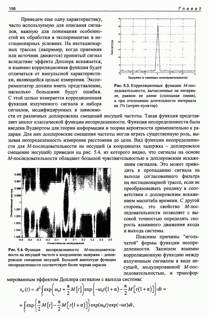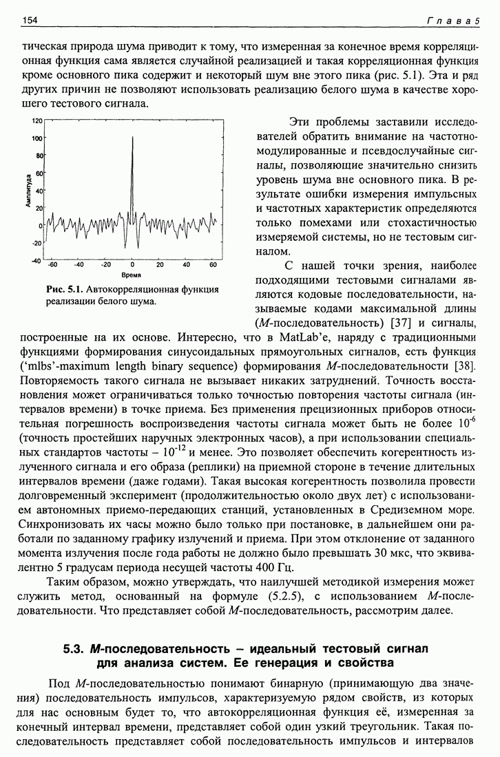 представляет собой радиоимпульс с огибающей в виде треугольника с основаниея равным удвоенной длине единицы М-последовательности с заполнением синусоидой На выходе системы сигнал есть сумма сигналов, прошедших по разным каналам. Здеь тот случай, когда разница времен распространения сигнала по разным Сигнал с выхода исследуемой системы разобьем на интервалы, равные по Для сигнала каждого такого