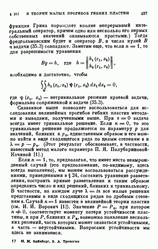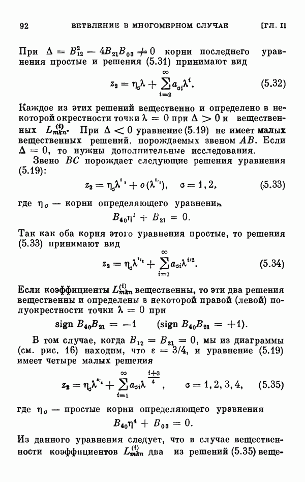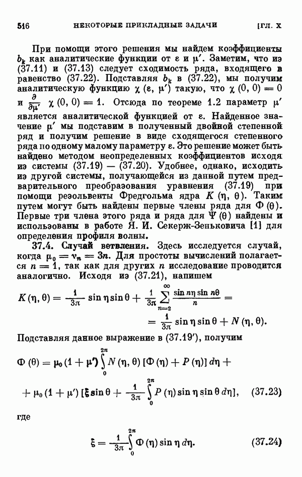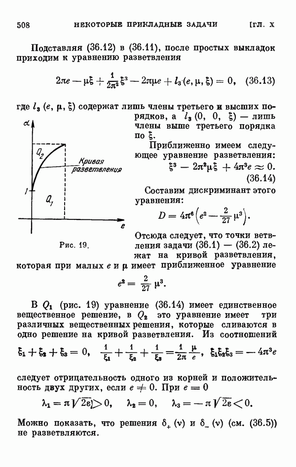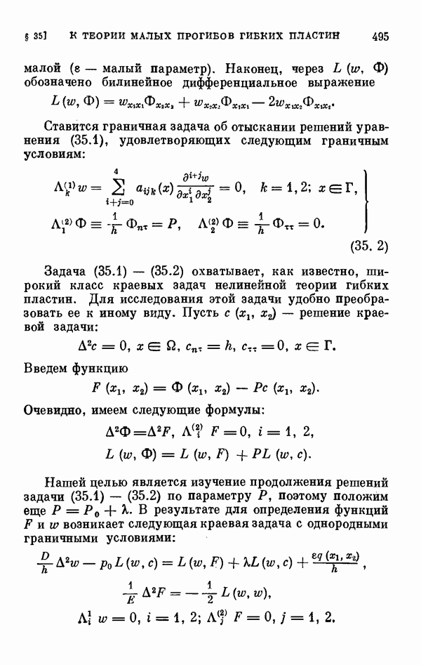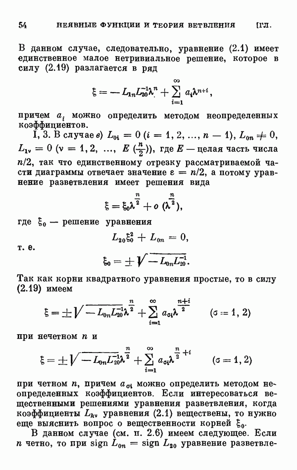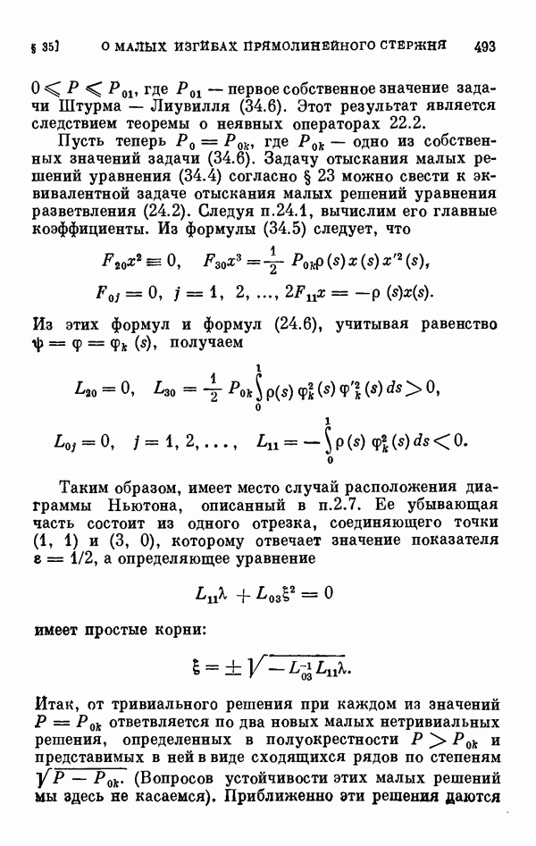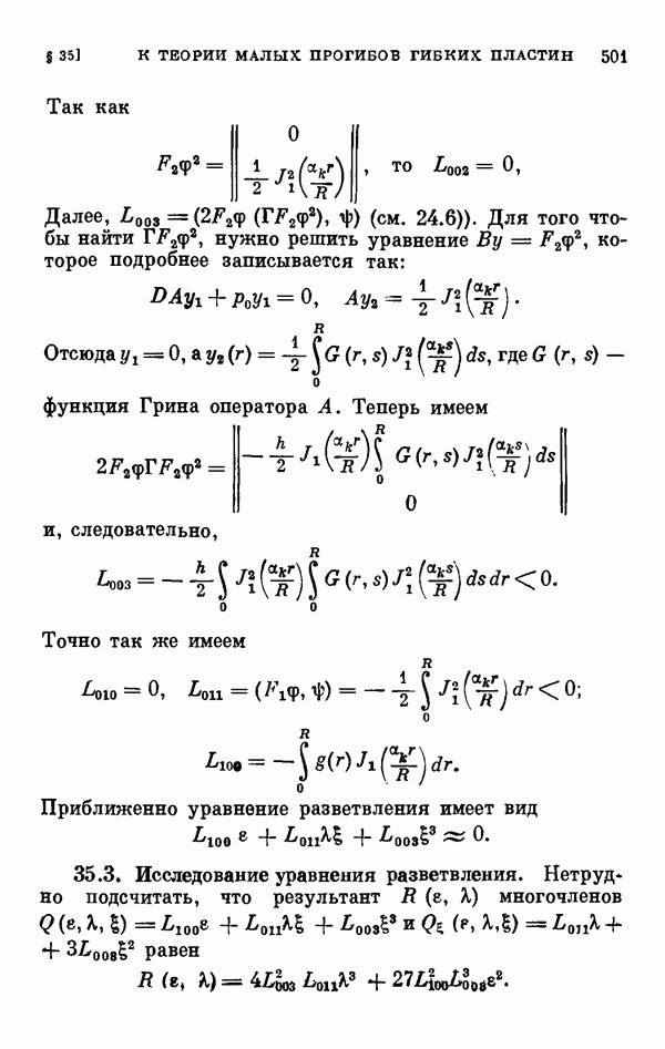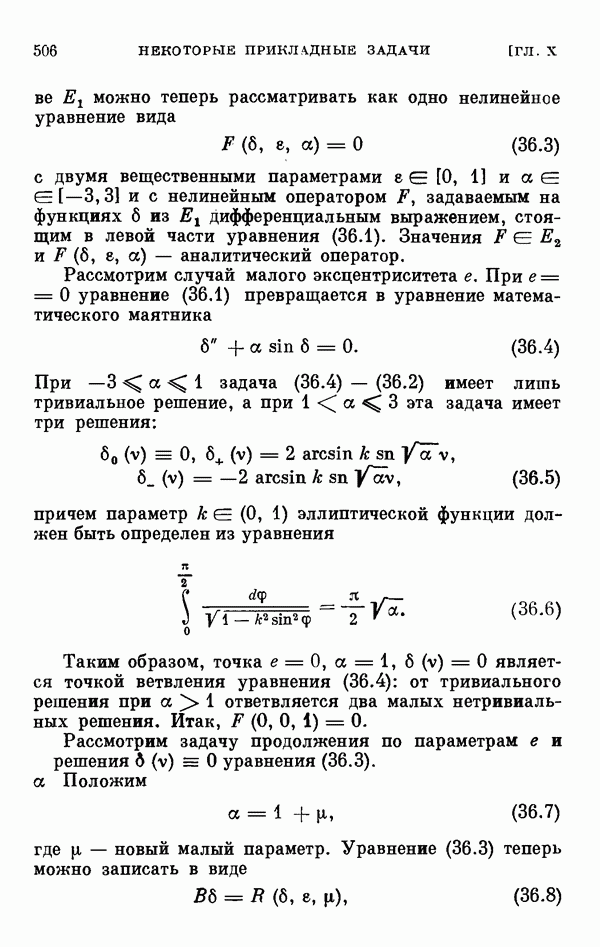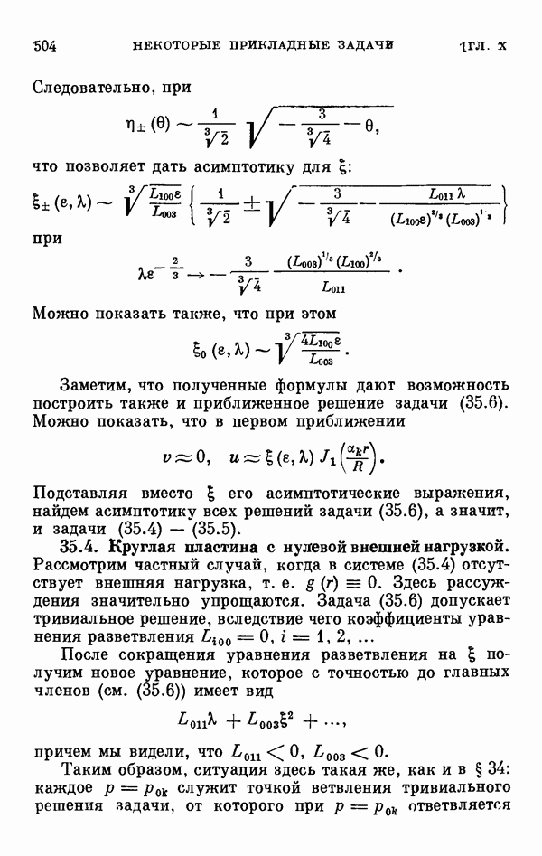 Здесь рассуждения значительно упрощаются. Задача (35.6) допускает тривиальное решение, вследствие чего коэффициенты уравнения разветвления