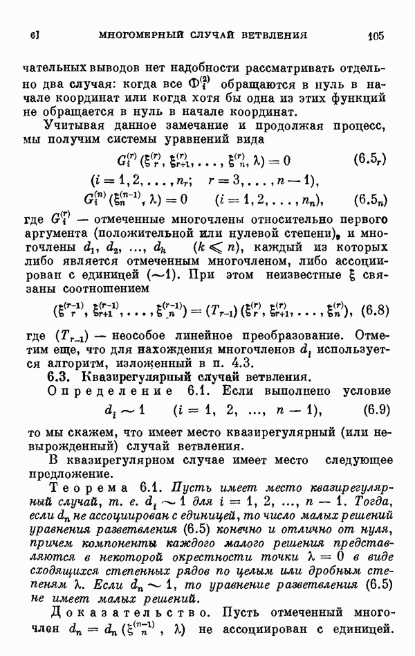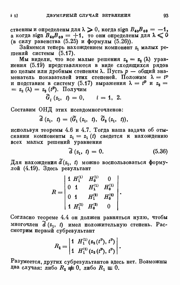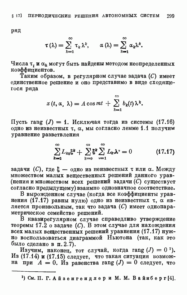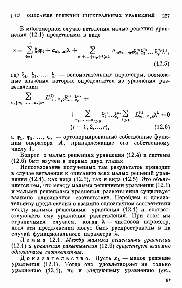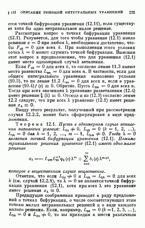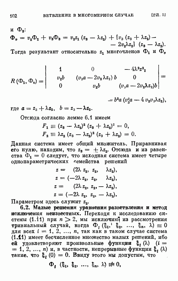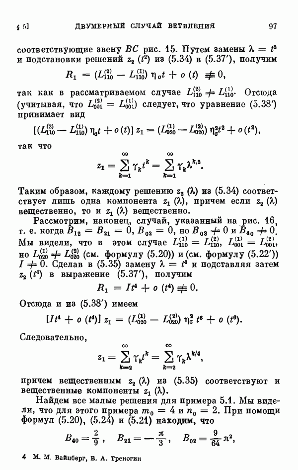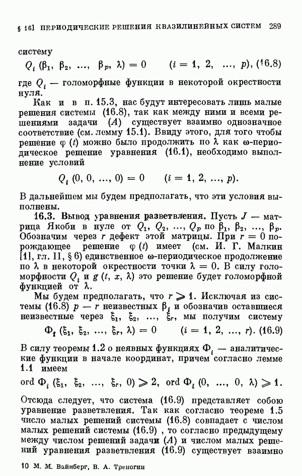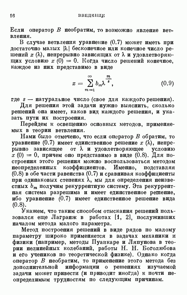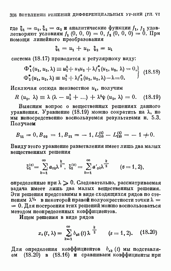 Здесь рассуждения значительно упрощаются. Задача (35.6) допускает тривиальное решение, вследствие чего коэффициенты уравнения разветвления