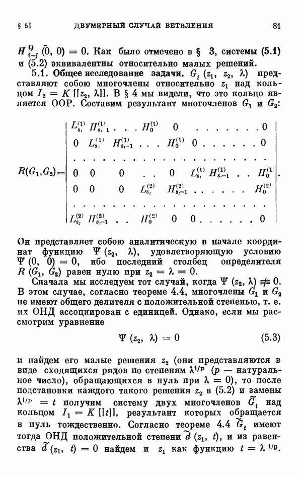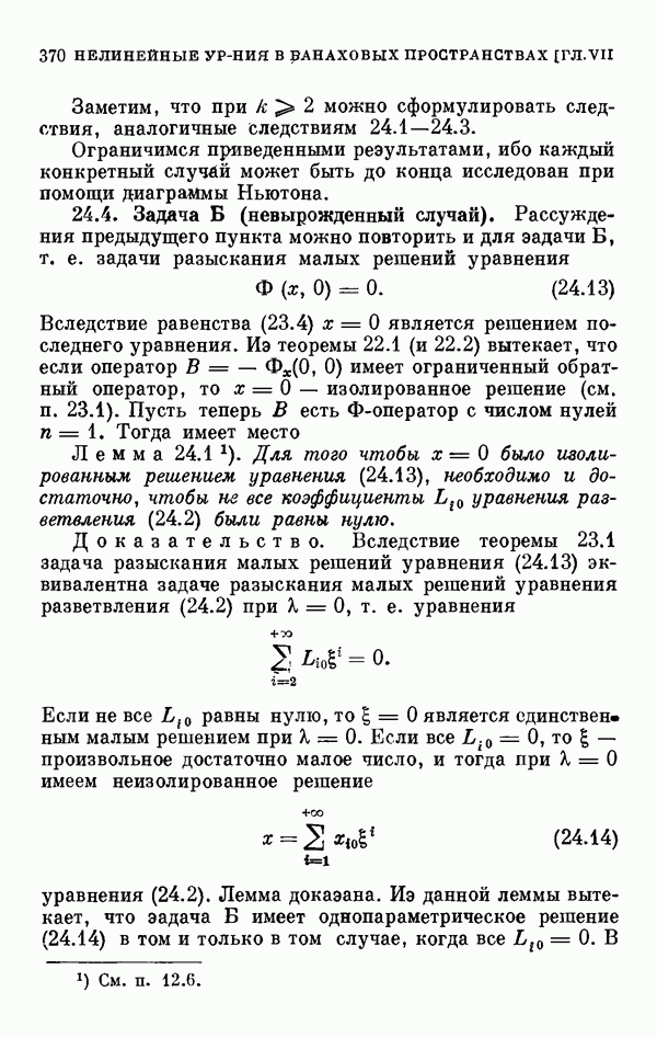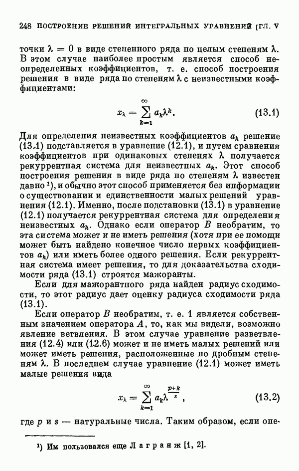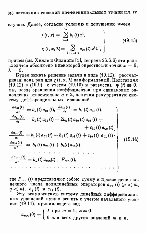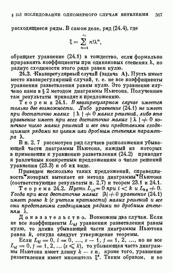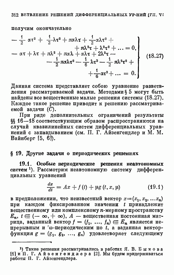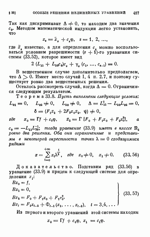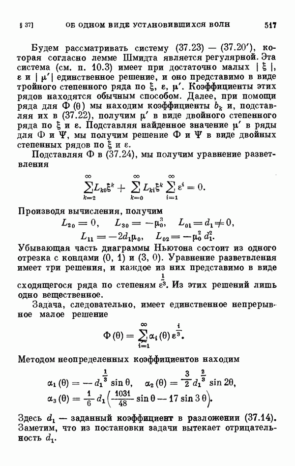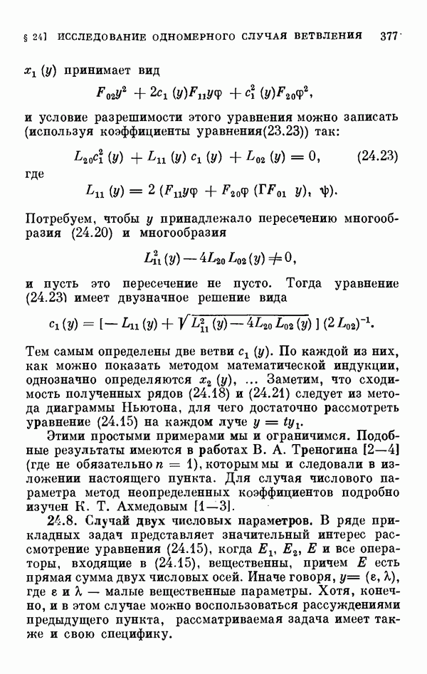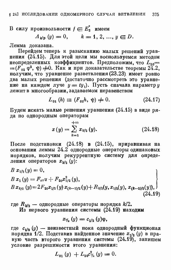 Здесь рассуждения значительно упрощаются. Задача (35.6) допускает тривиальное решение, вследствие чего коэффициенты уравнения разветвления
