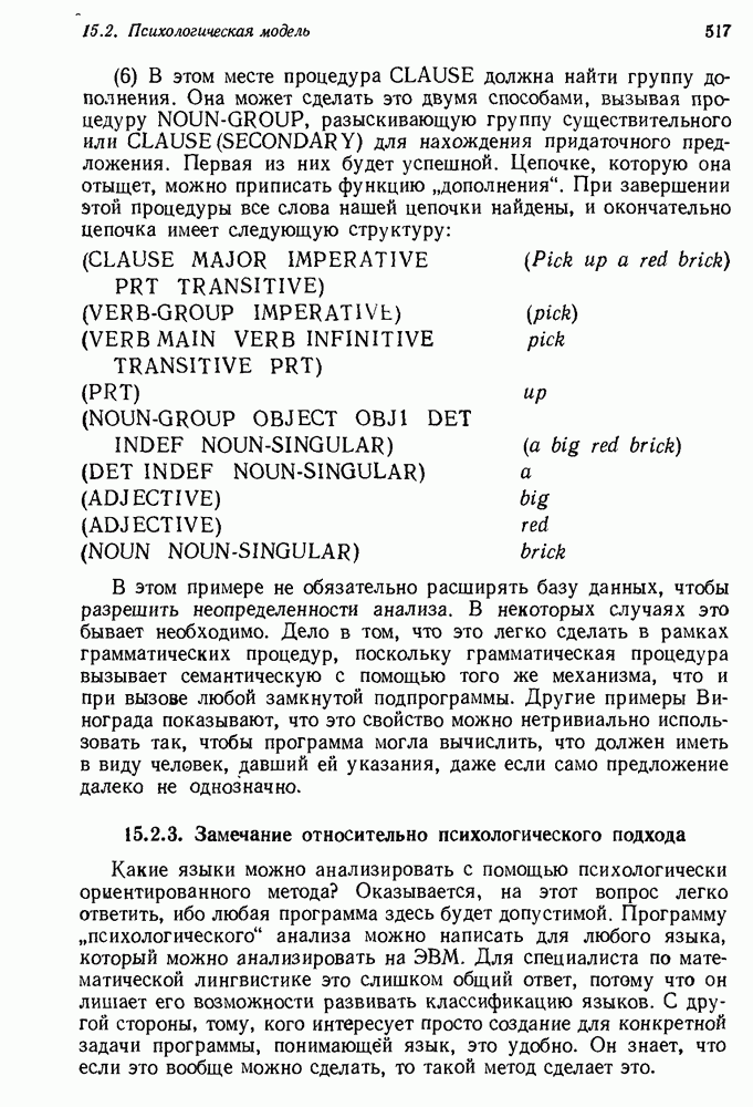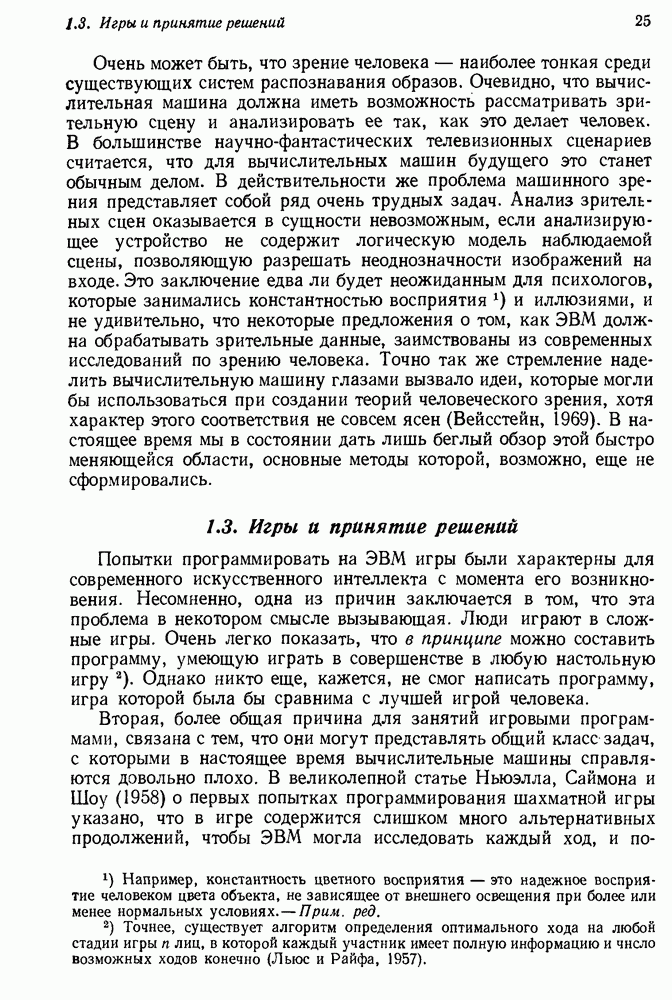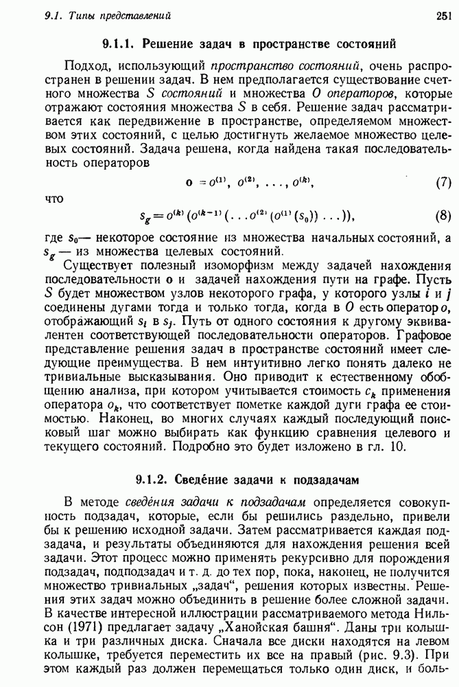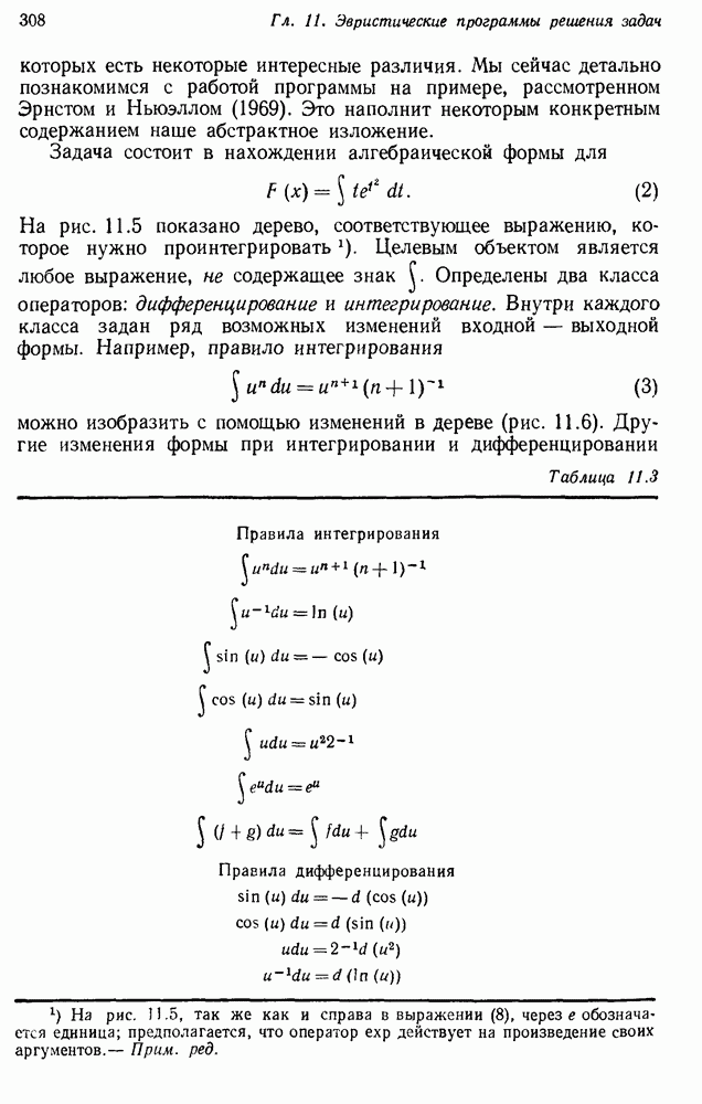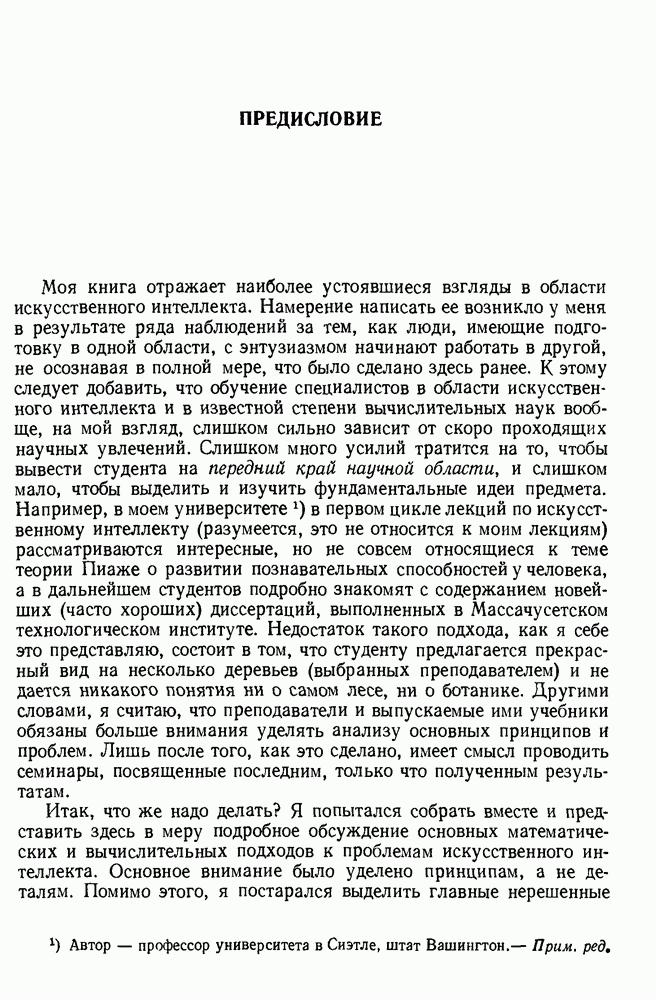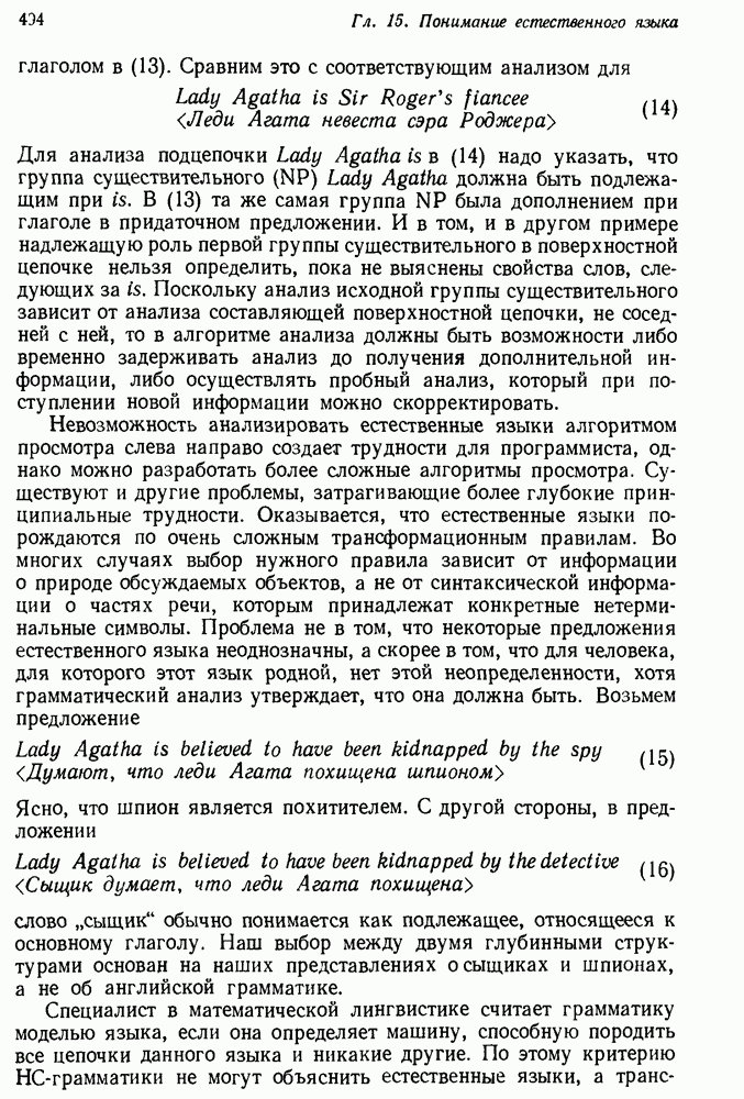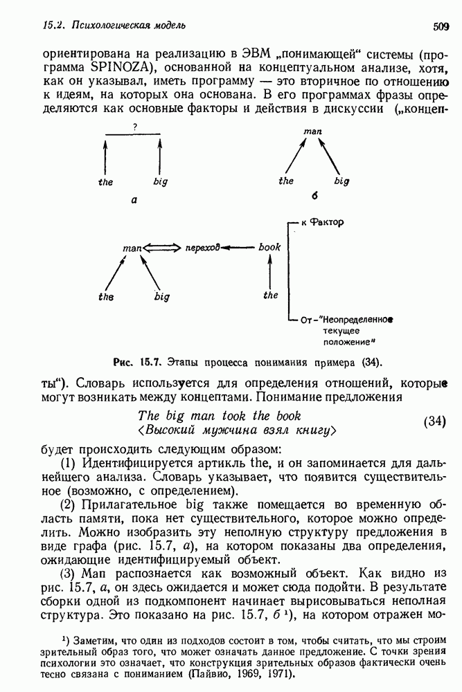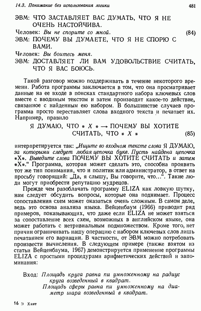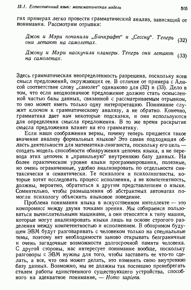 Конечно, никто не потребует от системы доказательства теорем, чтобы она допускала такие утверждения, но в этом ли задача системы дедуктивного ответа на вопросы? Иначе говоря, должна ли программа отвергать противоречивые базы данных? Возможно нет, поскольку много интересных баз данных противоречивы. Литература об экспериментах практически в любой науке полна противоречий, связанных с самыми важными темами исследования. В юриспруденции наиболее сложные юридические проблемы возникают, когда принципы отдельных законов вступают в конфликт. Работающая система PROTOSYNTHEX должна следовать примеру РЕАГИРУЮЩЕЙ БИБЛИОТЕКИ: замечай несоответствия, но не отказывайся их разбирать. Неудача системы PROTOSYNTHEX в работе с кванторами гораздо серьезнее. В действительности работа с кванторами не была адекватным образом учтена ни одним из решателей задач, применяющих методы продукций. Кроме того, PROTOSYNTHEX не может оперировать с вопросами типа „как?“, т. е. с вопросами, для которых нужный ответ будет образом действий, дающим нужный выход. Как мы увидим в следующем разделе, существует естественный метод работы с такими вопросами, основанный на принципе резолюции. Подводя итог, можно сказать, что подход семантических сетей одновременно и обещает, и разочаровывает. Обещает потому, что кажется таким разумным. На практике системы семантических сетей порождают много умных примеров, которые при ближайшем рассмотрении зависят от частных решений. Поскольку нет законченной формальной теории, как для программ, основанных на принципе резолюции, трудно предвидеть, что еще можно ожидать. Область искусственного интеллекта очень нуждается в теории семантических сетей. Такая теория должна была бы объединить вывод с помощью продукций, теорию графов и методы поиска на графе — одним словом, работу нужно проделать немалую!