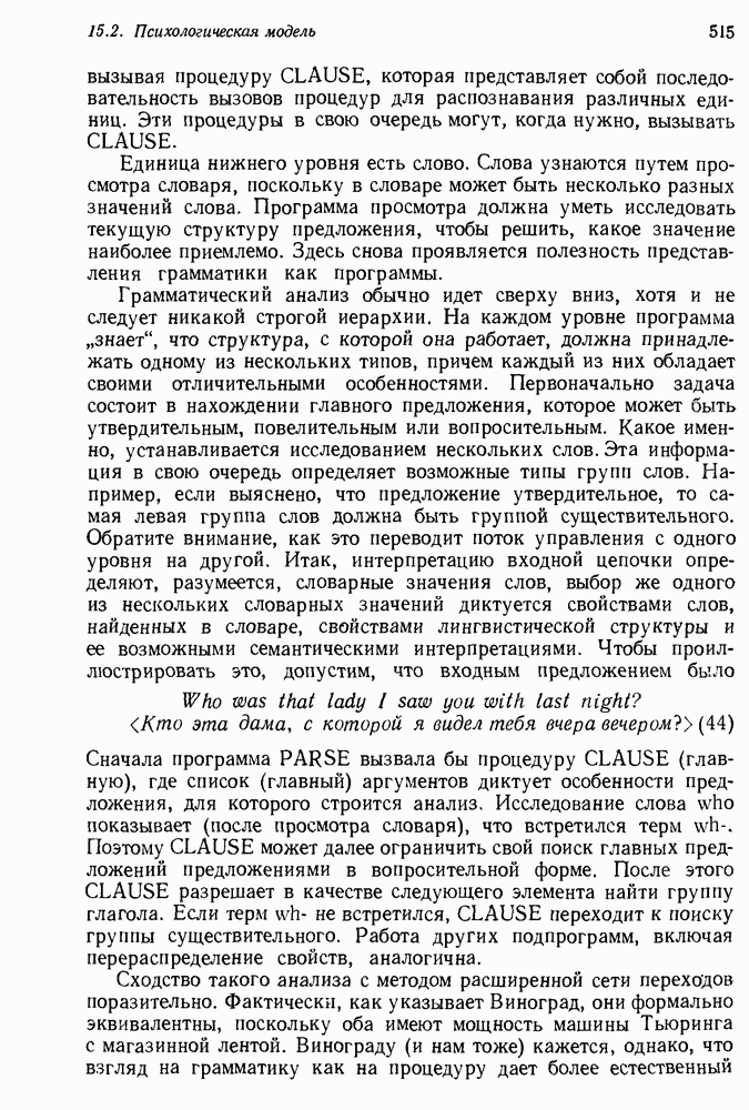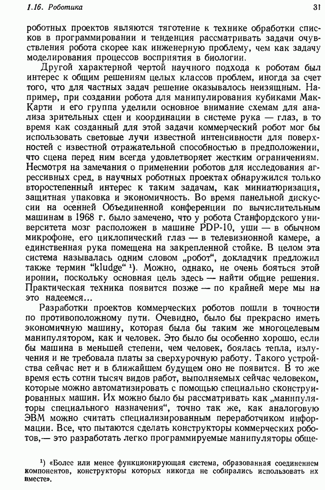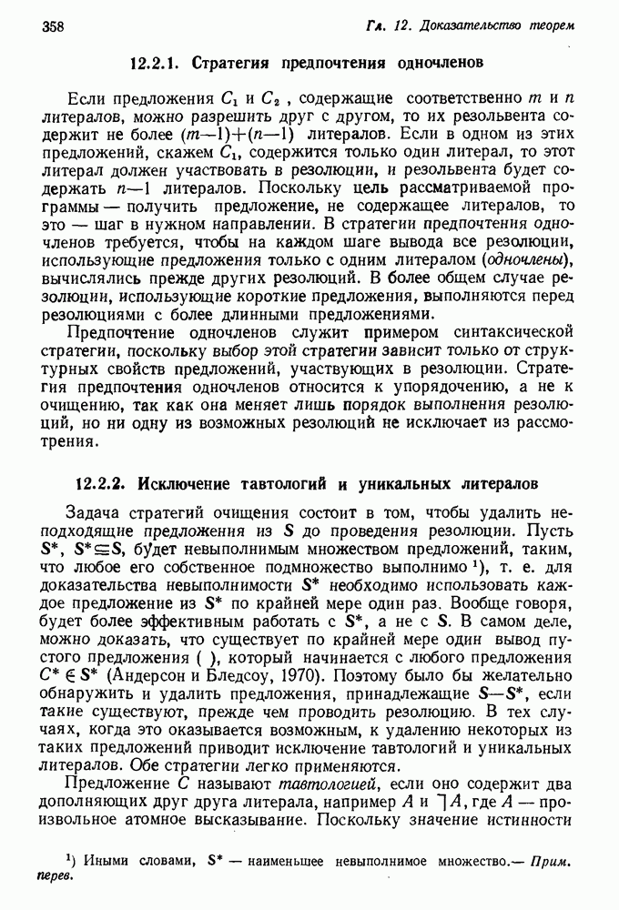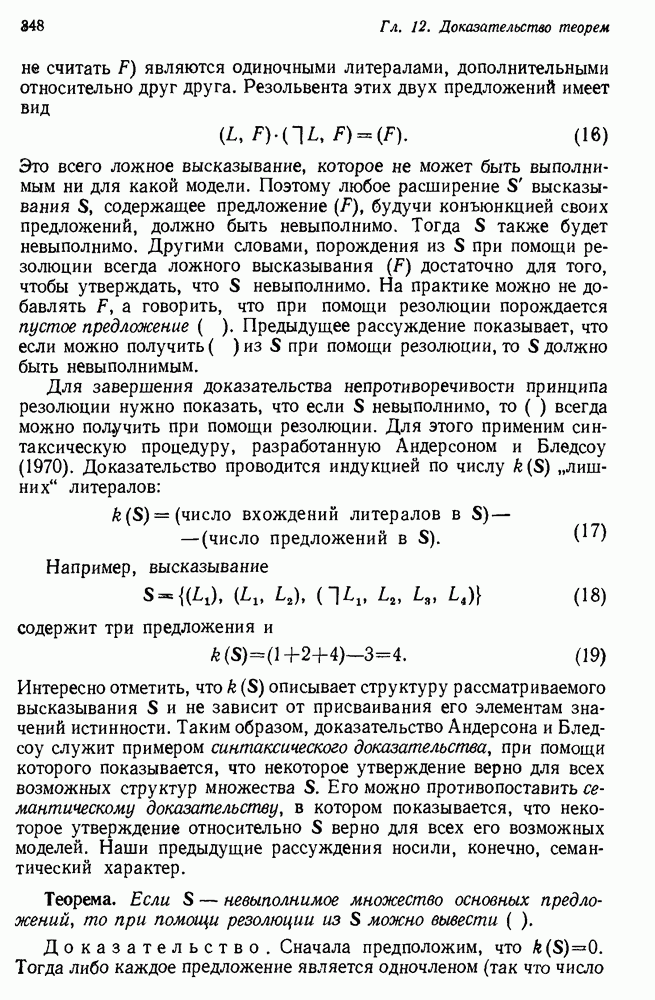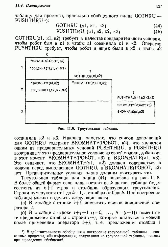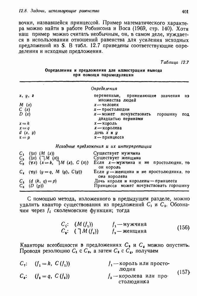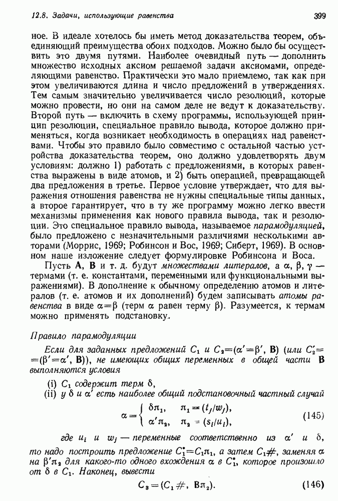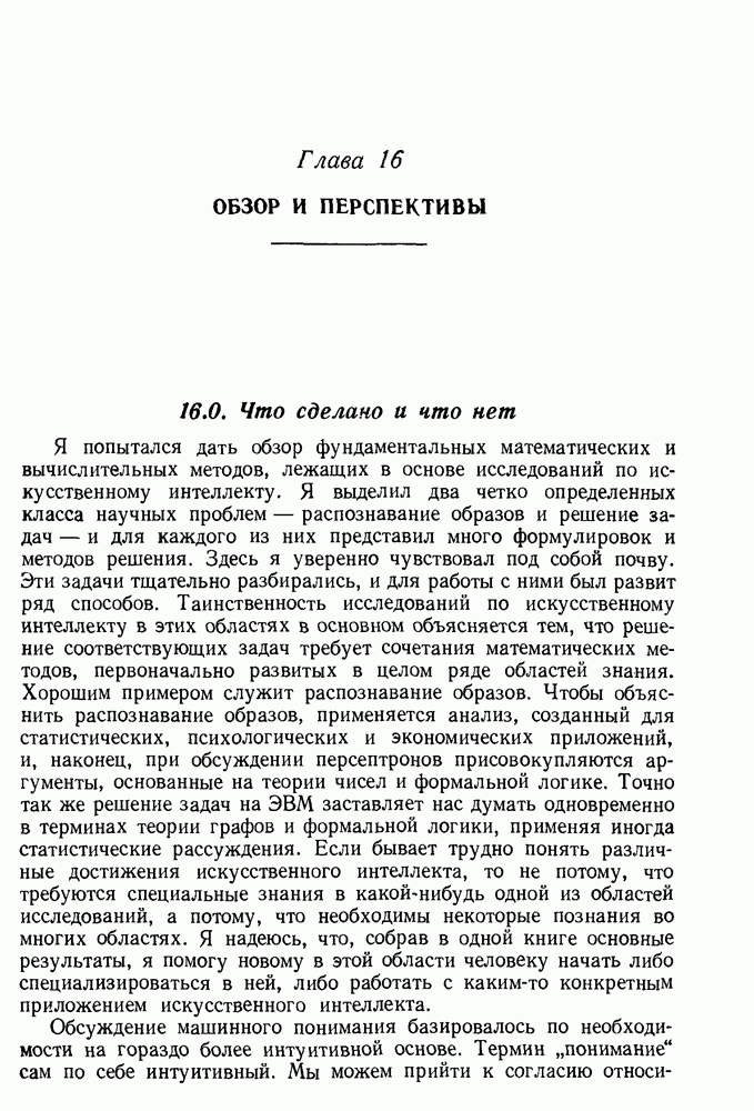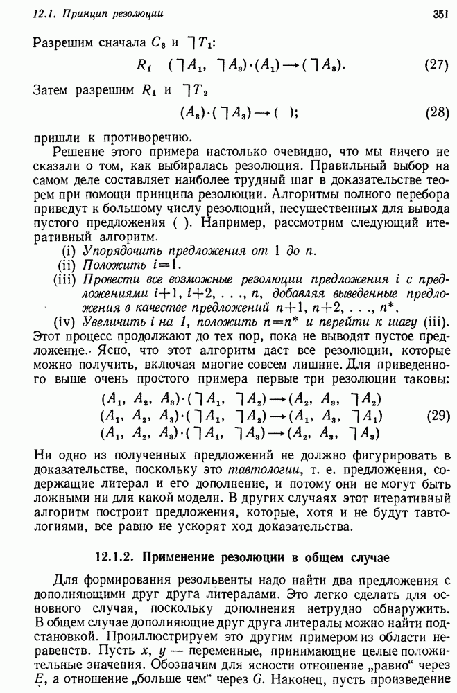 Конечно, никто не потребует от системы доказательства теорем, чтобы она допускала такие утверждения, но в этом ли задача системы дедуктивного ответа на вопросы? Иначе говоря, должна ли программа отвергать противоречивые базы данных? Возможно нет, поскольку много интересных баз данных противоречивы. Литература об экспериментах практически в любой науке полна противоречий, связанных с самыми важными темами исследования. В юриспруденции наиболее сложные юридические проблемы возникают, когда принципы отдельных законов вступают в конфликт. Работающая система PROTOSYNTHEX должна следовать примеру РЕАГИРУЮЩЕЙ БИБЛИОТЕКИ: замечай несоответствия, но не отказывайся их разбирать. Неудача системы PROTOSYNTHEX в работе с кванторами гораздо серьезнее. В действительности работа с кванторами не была адекватным образом учтена ни одним из решателей задач, применяющих методы продукций. Кроме того, PROTOSYNTHEX не может оперировать с вопросами типа „как?“, т. е. с вопросами, для которых нужный ответ будет образом действий, дающим нужный выход. Как мы увидим в следующем разделе, существует естественный метод работы с такими вопросами, основанный на принципе резолюции. Подводя итог, можно сказать, что подход семантических сетей одновременно и обещает, и разочаровывает. Обещает потому, что кажется таким разумным. На практике системы семантических сетей порождают много умных примеров, которые при ближайшем рассмотрении зависят от частных решений. Поскольку нет законченной формальной теории, как для программ, основанных на принципе резолюции, трудно предвидеть, что еще можно ожидать. Область искусственного интеллекта очень нуждается в теории семантических сетей. Такая теория должна была бы объединить вывод с помощью продукций, теорию графов и методы поиска на графе — одним словом, работу нужно проделать немалую!