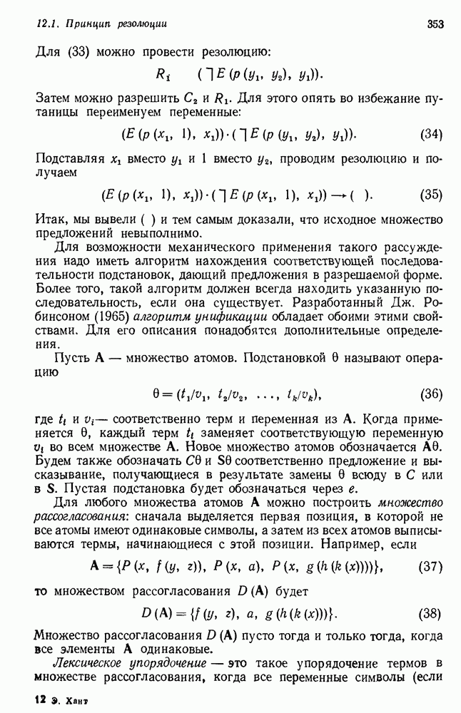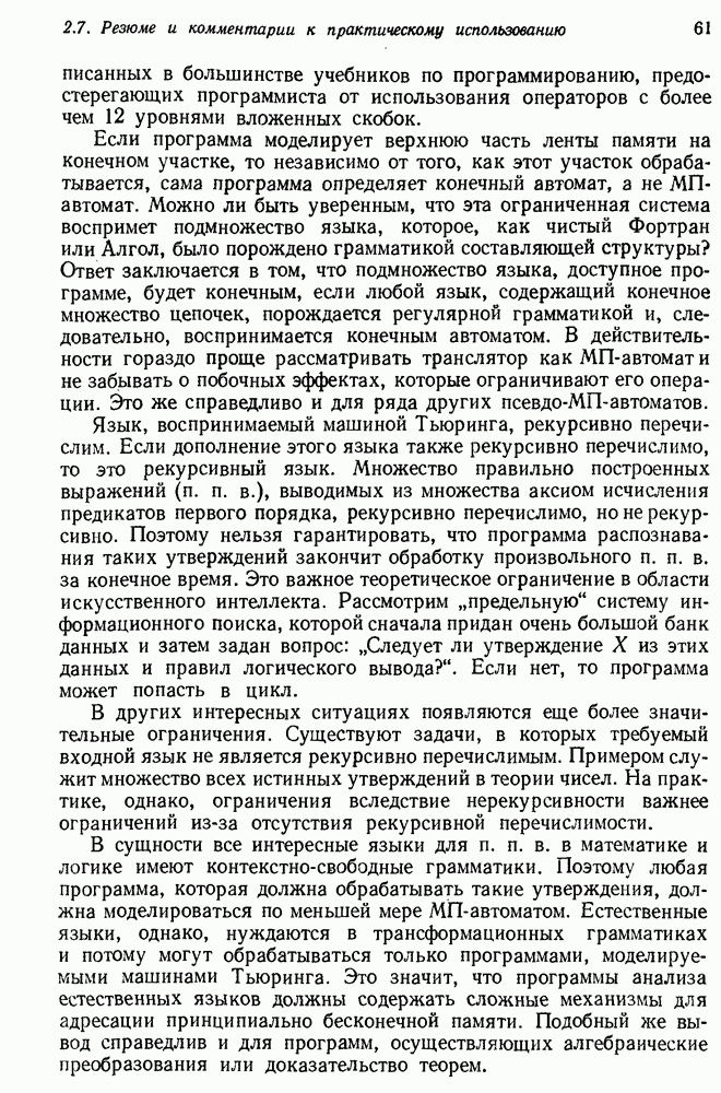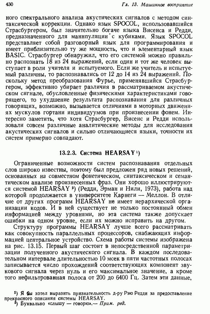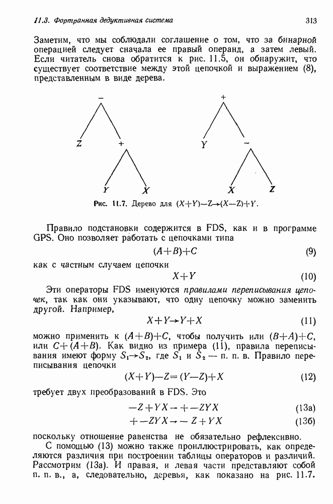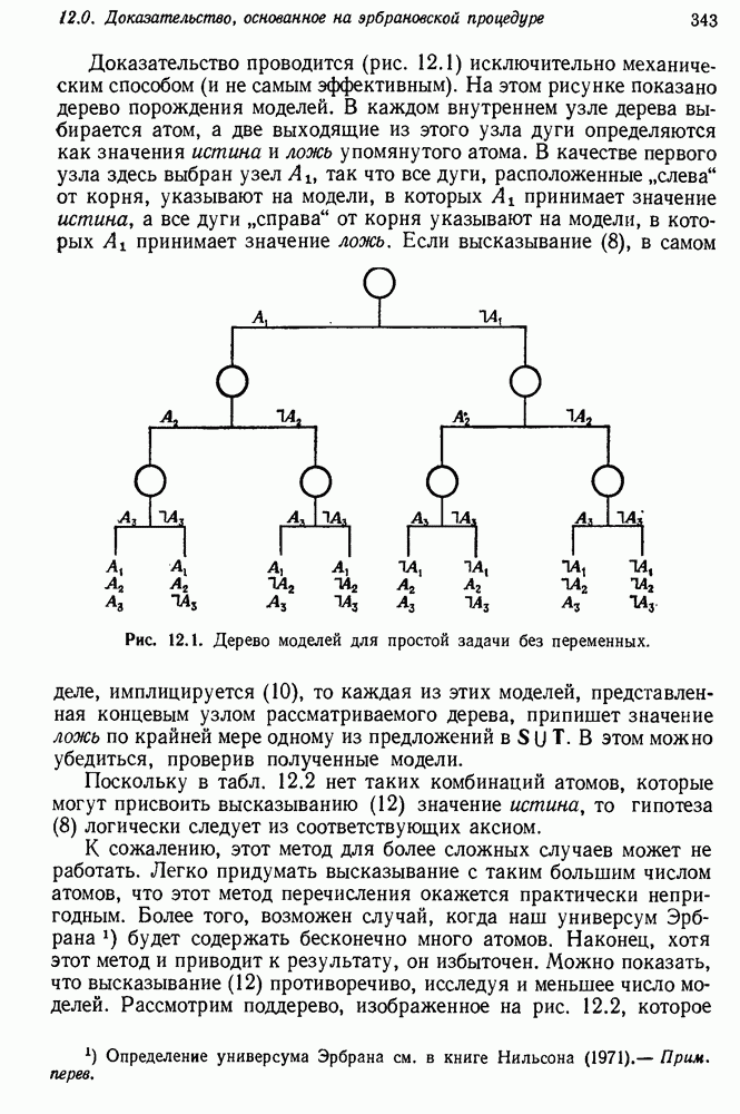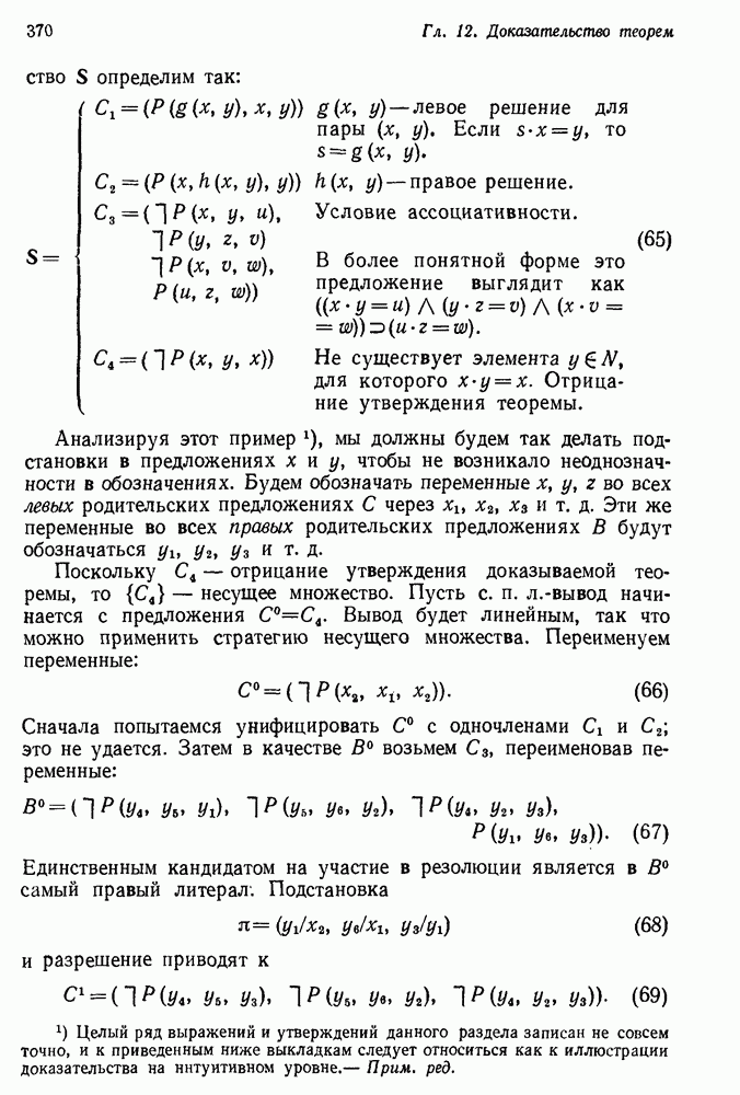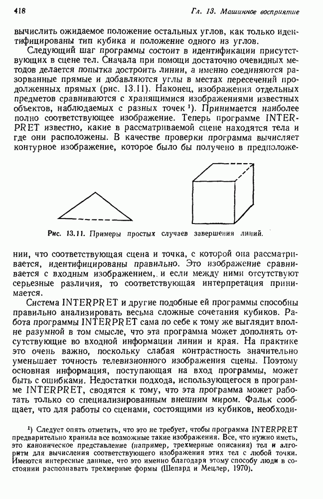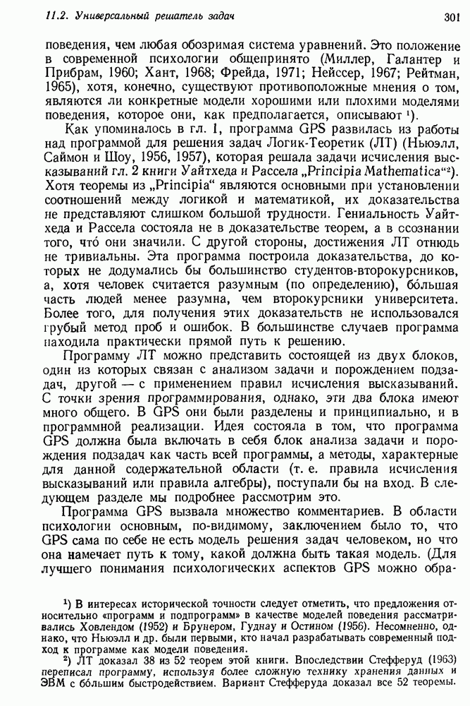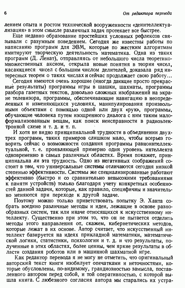 Конечно, никто не потребует от системы доказательства теорем, чтобы она допускала такие утверждения, но в этом ли задача системы дедуктивного ответа на вопросы? Иначе говоря, должна ли программа отвергать противоречивые базы данных? Возможно нет, поскольку много интересных баз данных противоречивы. Литература об экспериментах практически в любой науке полна противоречий, связанных с самыми важными темами исследования. В юриспруденции наиболее сложные юридические проблемы возникают, когда принципы отдельных законов вступают в конфликт. Работающая система PROTOSYNTHEX должна следовать примеру РЕАГИРУЮЩЕЙ БИБЛИОТЕКИ: замечай несоответствия, но не отказывайся их разбирать. Неудача системы PROTOSYNTHEX в работе с кванторами гораздо серьезнее. В действительности работа с кванторами не была адекватным образом учтена ни одним из решателей задач, применяющих методы продукций. Кроме того, PROTOSYNTHEX не может оперировать с вопросами типа „как?“, т. е. с вопросами, для которых нужный ответ будет образом действий, дающим нужный выход. Как мы увидим в следующем разделе, существует естественный метод работы с такими вопросами, основанный на принципе резолюции. Подводя итог, можно сказать, что подход семантических сетей одновременно и обещает, и разочаровывает. Обещает потому, что кажется таким разумным. На практике системы семантических сетей порождают много умных примеров, которые при ближайшем рассмотрении зависят от частных решений. Поскольку нет законченной формальной теории, как для программ, основанных на принципе резолюции, трудно предвидеть, что еще можно ожидать. Область искусственного интеллекта очень нуждается в теории семантических сетей. Такая теория должна была бы объединить вывод с помощью продукций, теорию графов и методы поиска на графе — одним словом, работу нужно проделать немалую!
