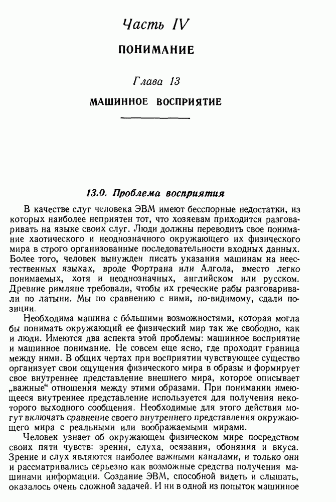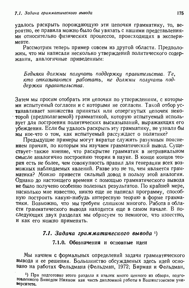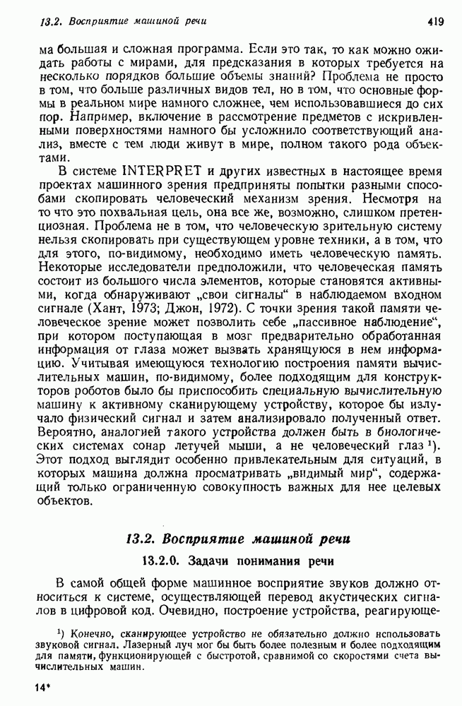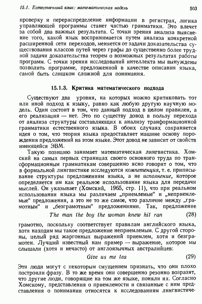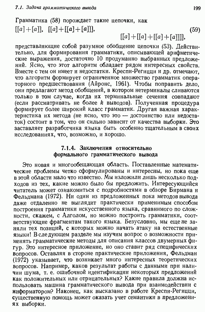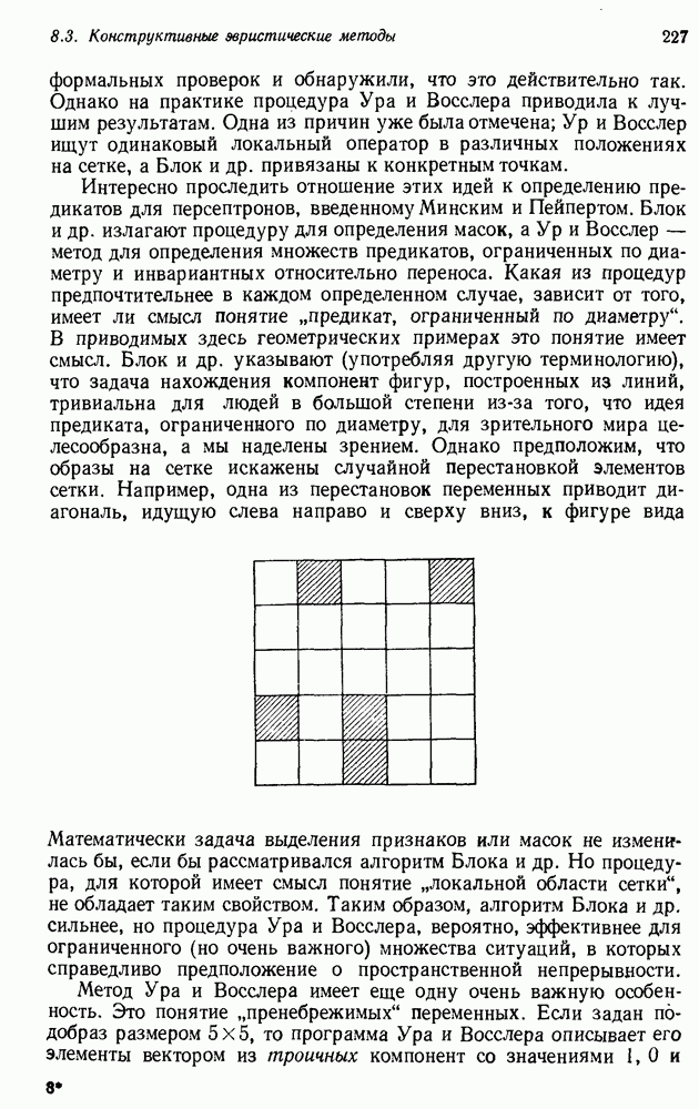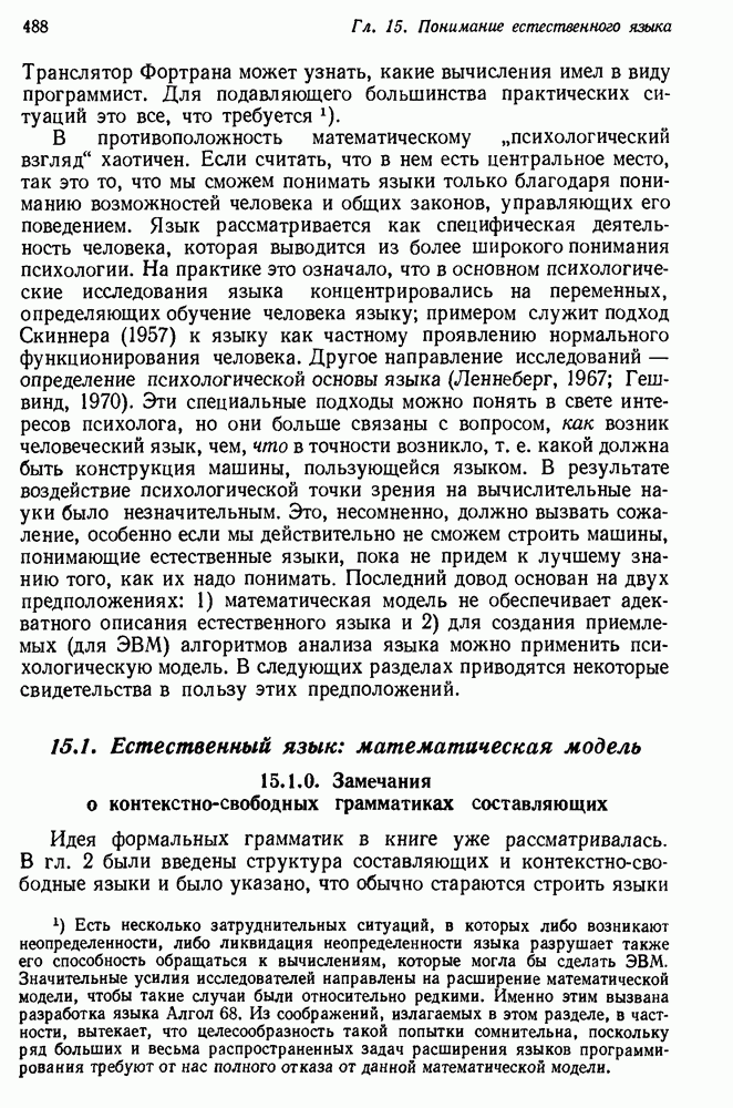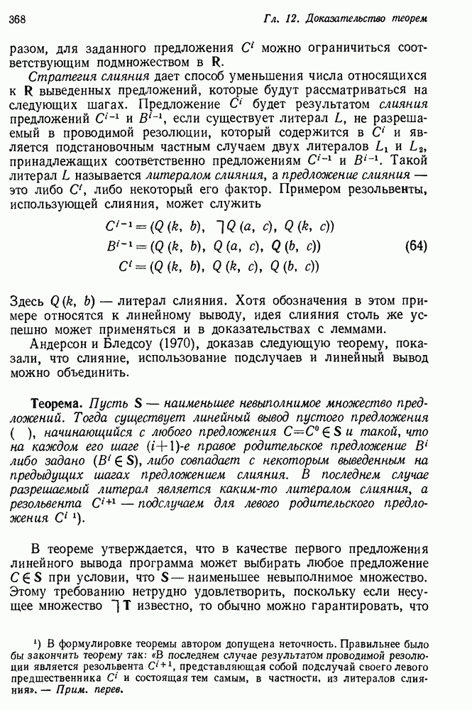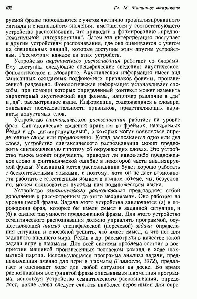 Конечно, никто не потребует от системы доказательства теорем, чтобы она допускала такие утверждения, но в этом ли задача системы дедуктивного ответа на вопросы? Иначе говоря, должна ли программа отвергать противоречивые базы данных? Возможно нет, поскольку много интересных баз данных противоречивы. Литература об экспериментах практически в любой науке полна противоречий, связанных с самыми важными темами исследования. В юриспруденции наиболее сложные юридические проблемы возникают, когда принципы отдельных законов вступают в конфликт. Работающая система PROTOSYNTHEX должна следовать примеру РЕАГИРУЮЩЕЙ БИБЛИОТЕКИ: замечай несоответствия, но не отказывайся их разбирать. Неудача системы PROTOSYNTHEX в работе с кванторами гораздо серьезнее. В действительности работа с кванторами не была адекватным образом учтена ни одним из решателей задач, применяющих методы продукций. Кроме того, PROTOSYNTHEX не может оперировать с вопросами типа „как?“, т. е. с вопросами, для которых нужный ответ будет образом действий, дающим нужный выход. Как мы увидим в следующем разделе, существует естественный метод работы с такими вопросами, основанный на принципе резолюции. Подводя итог, можно сказать, что подход семантических сетей одновременно и обещает, и разочаровывает. Обещает потому, что кажется таким разумным. На практике системы семантических сетей порождают много умных примеров, которые при ближайшем рассмотрении зависят от частных решений. Поскольку нет законченной формальной теории, как для программ, основанных на принципе резолюции, трудно предвидеть, что еще можно ожидать. Область искусственного интеллекта очень нуждается в теории семантических сетей. Такая теория должна была бы объединить вывод с помощью продукций, теорию графов и методы поиска на графе — одним словом, работу нужно проделать немалую!