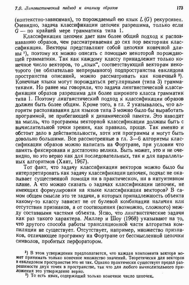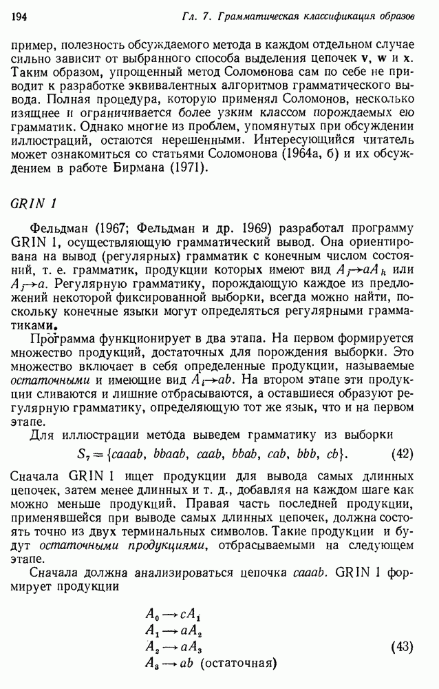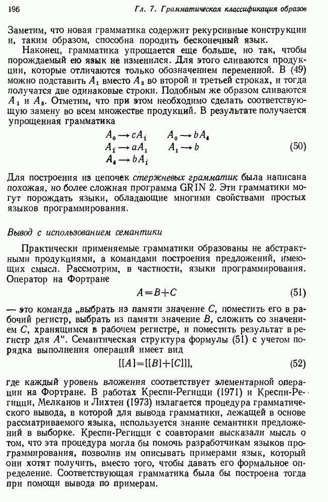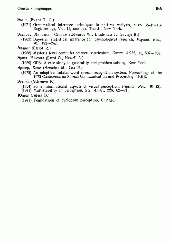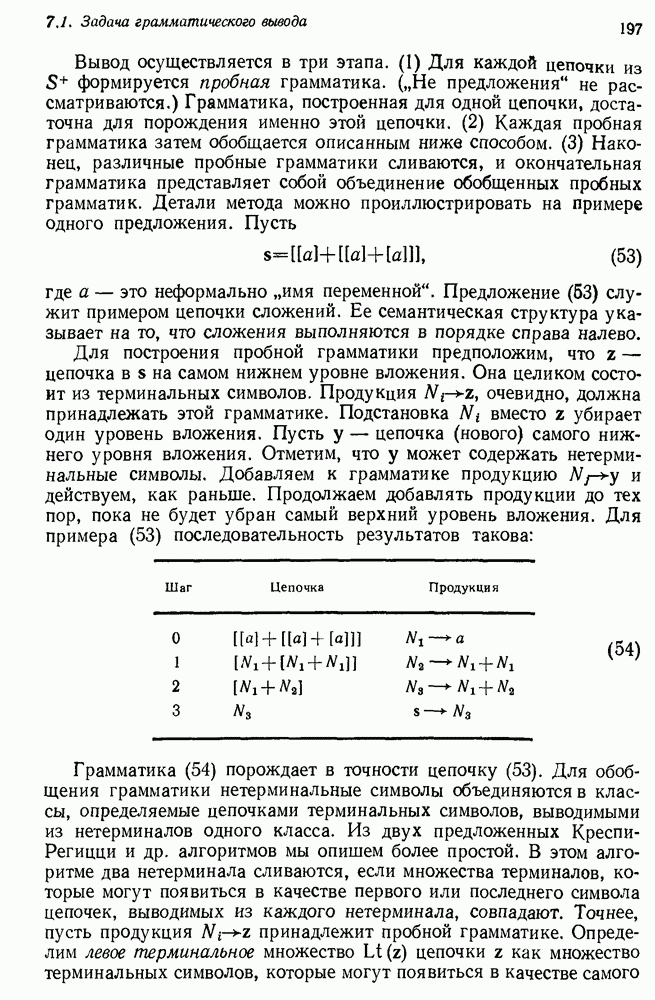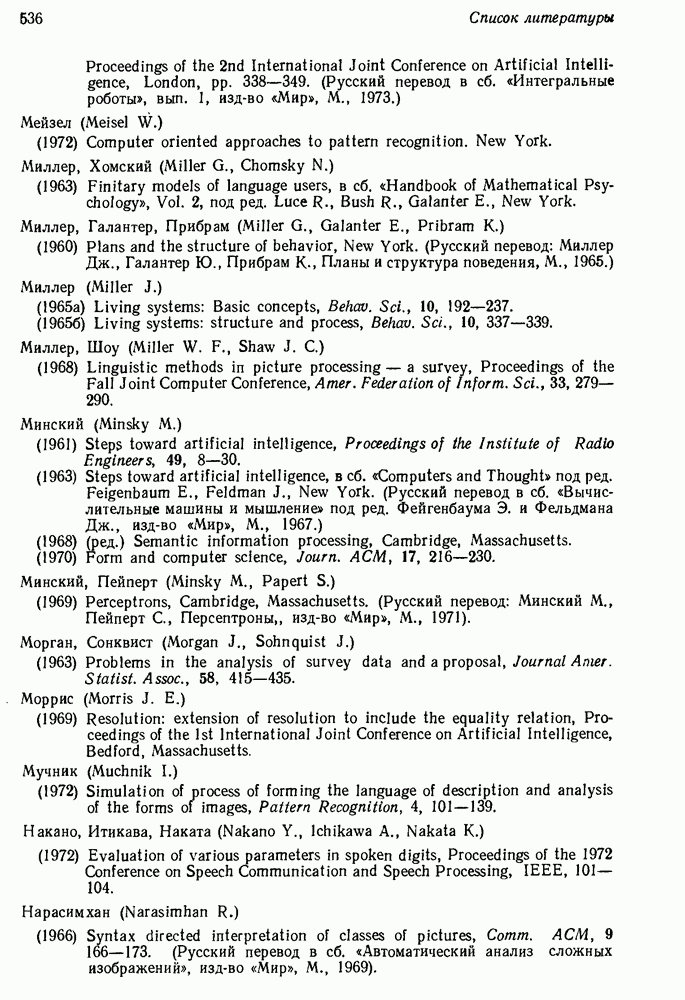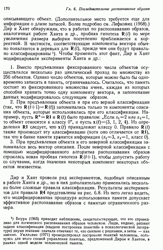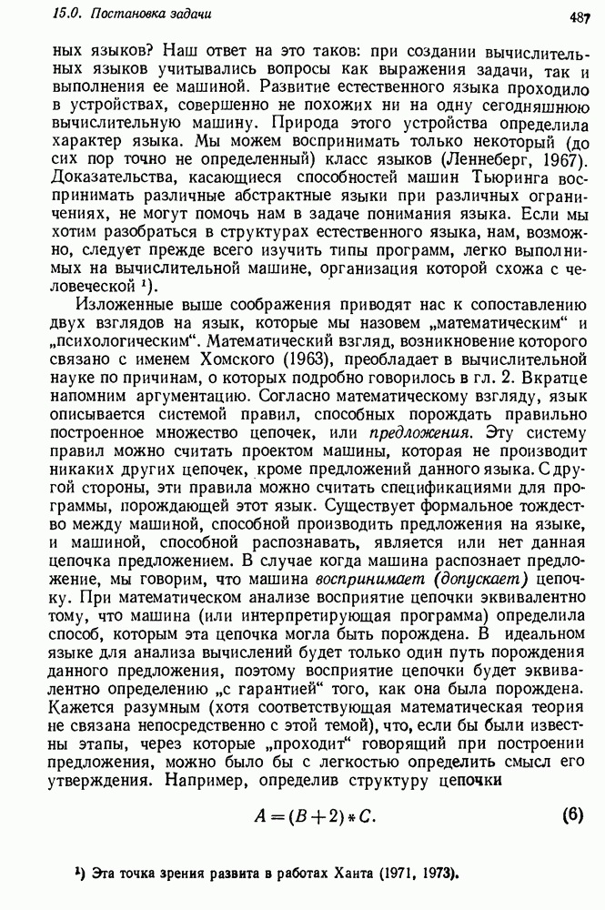 14.2. Дедуктивный вывод в информационном поиске14.2.0. Существующие методыПрограммы, обладающие способностью понимания, должны уметь отвечать на запросы, определяя, какой смысл заключен в той или иной базе данных и что она содержит. Для этого программа должна осуществлять вывод одних фактов из других. Как подразумевается в слове „выводить", соответствующие необходимые процедуры имеют самое непосредственное отношение к доказательству теоремы. Существуют, однако, важные различия между доказательством теорем и выводом при информационном поиске. Алгоритм вывода фактов должен быть корректным. Кажется, нет реальной ситуации, где были бы приемлемы ложные ответы. С другой стороны, полнота, т. е. способность ответить на любой вопрос, допускающий ответ, не является непременным условием. Как мы видели при обсуждении доказательства теорем, полнота часто достигается очень дорогой ценой. В наиболее реальных вопросно-ответных ситуациях большинство вопросов относится к одному и тому же типу, и лишь немногие — к другим. Цель конструктора такой системы — максимизировать полезность системы для пользователя, так что иногда было бы целесообразно пожертвовать способностью вообще отвечать на одни вопросы, чтобы на другие вопросы можно было отвечать очень быстро. Как и следовало ожидать, при создании экспериментальных вопросно-ответных систем вывода такими сугубо практическими соображениями пренебрегали. Возможно, это было оправдано. Мы будем различать несколько типов сложности в процедурах вывода. На самом нижнем уровне программа может быть способной только к перераспределению имеющихся фактов для ответа на запрос. Это демонстрировалось при ответе системы DEACON на вопрос „Кто командир 638-го батальона?“, где ответ был получен подбором нужного сочетания вхождений в базу данных. В качестве побочного продукта процесса ответа на вопросы никакие новые данные не были получены. Более мощный способ — ввести специальные операции для вывода новых фактов. Здесь очень важны вопросы полноты, практичности и определения стратегии решения задач. Программа может содержать ограниченное множество операторов, таких, как импликация и включение множеств, выполнение которых не представляет труда, но которые обеспечивают лишь ограниченные возможности вывода. Другим крайним случаем была бы программа, содержащая полную систему вывода, как, например, резолюции, и рискующая тем, что на некоторые выводы будет тратиться очень много времени. Третий подход состоит в том, чтобы позволить пользователю определять свои собственные процедуры вывода. По существу, пользователь задает вопрос и затем сообщает системе, как найти ответ. Этот подход разделяют Слейгл (1965) в системе DEDUCOM, а также Достерт и Томпсон (1971). Он в принципе отдает все возможности машины в руки пользователя, но может также возложить на него бремя программистской работы. Наоборот, система информационного поиска может содержать заранее составленные подпрограммы дедуктивного вывода, но в то же время позволять пользователю выбирать при желании стратегию. 14.2.1. Системы, использующие неполный вывод14.2.1.1. РЕАГИРУЮЩАЯ БИБЛИОТЕКАНашим первым примером будет очень ограниченная система неполного вывода, которая предназначалась для эксперимента с возможностями некоторых грубых правил вывода (Хант и Куинлан, 