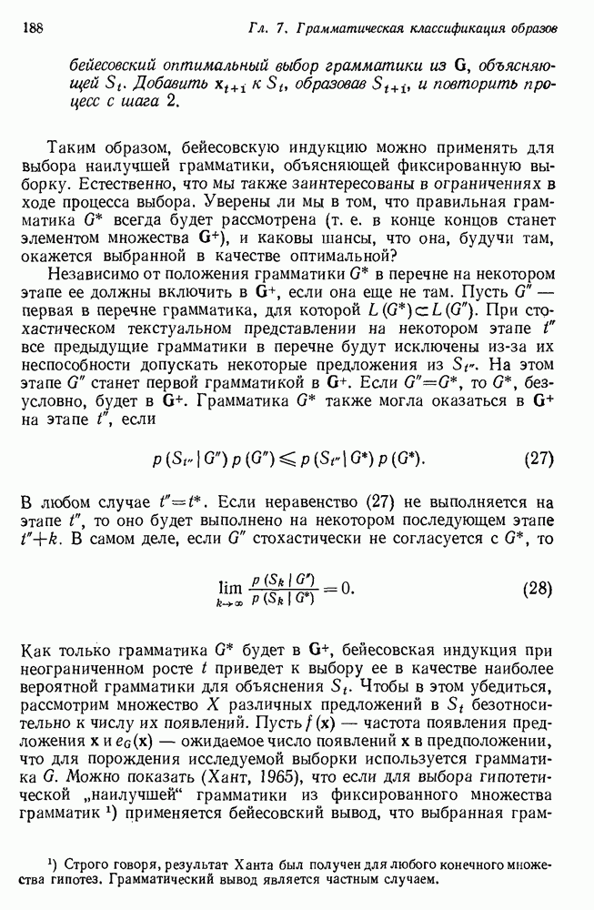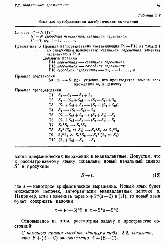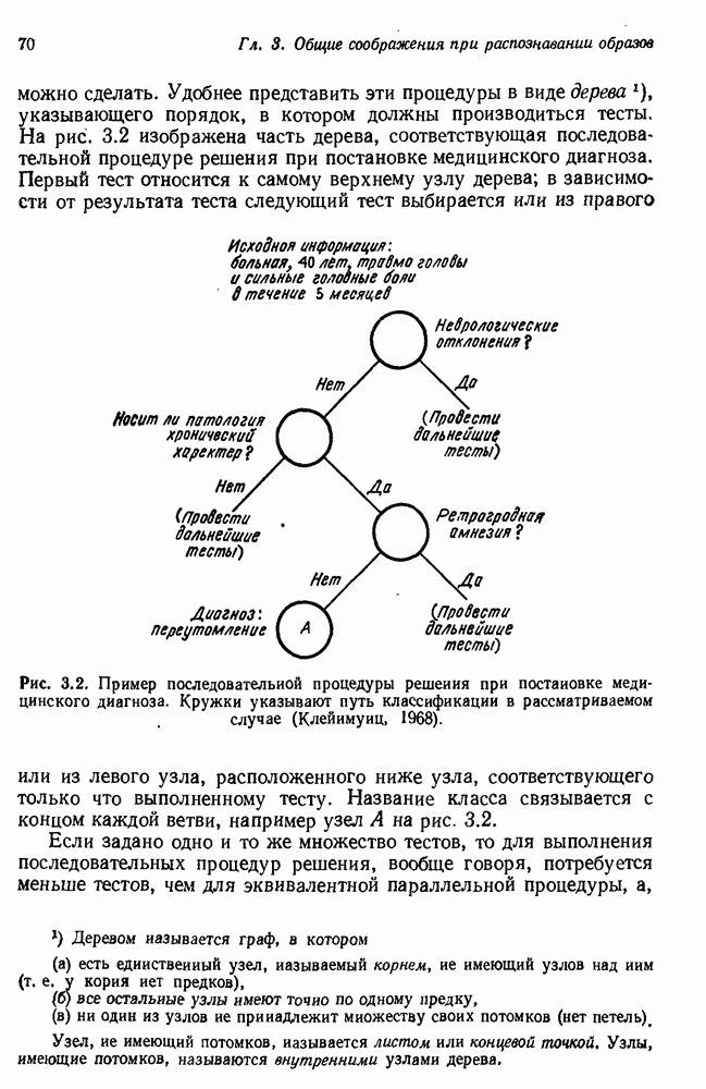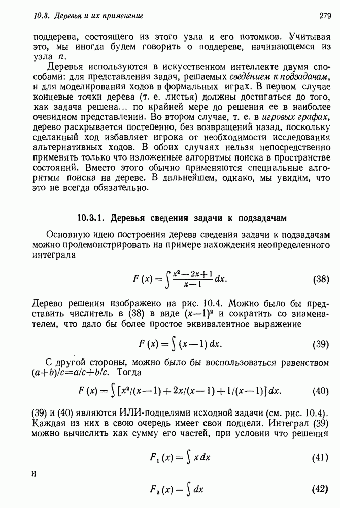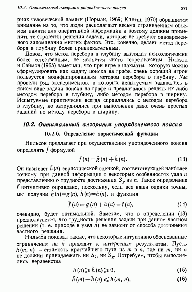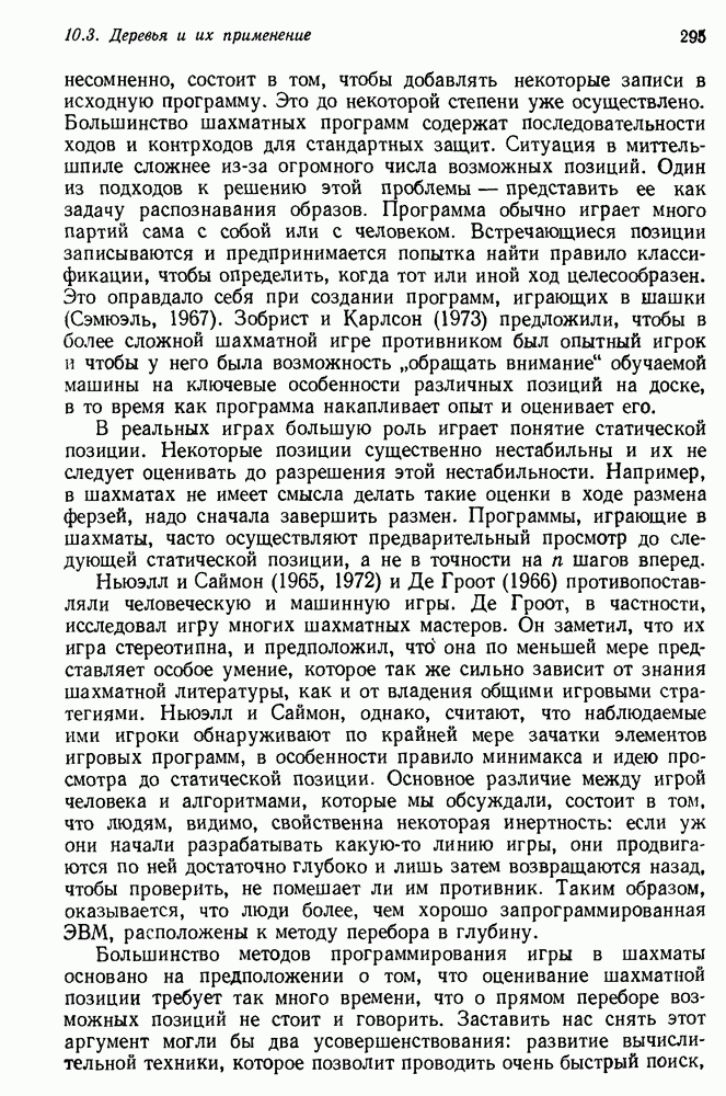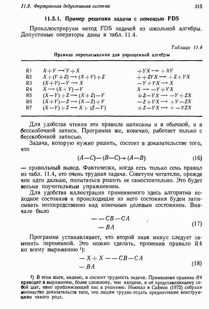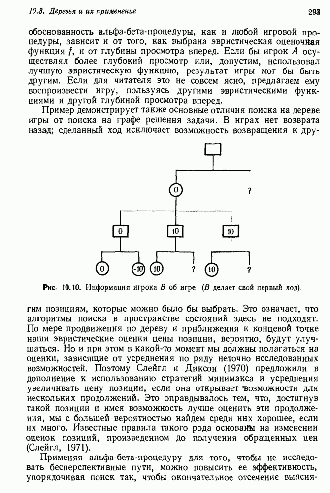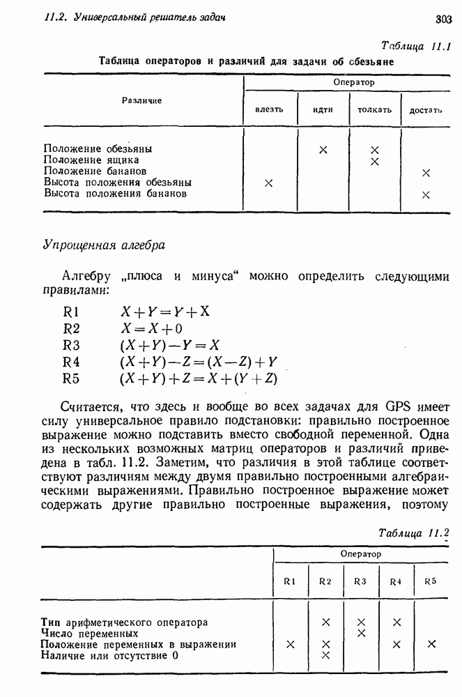 Если можно найти метафакт, в который можно преобразовать входной и имеющийся факты, то система фиксирует соответствие или несоответствие в зависимости от того, согласуются или нет знаки сравниваемых фактов. Иногда пользователи хотели пресечь все или некоторые направления поиска, которые могла породить РЕАГИРУЮЩАЯ БИБЛИОТЕКА. Такая возможность обеспечивалась множеством селективных команд, позволявших пользователю определять новые операнды или ограничивать сравнение несколькими операндами. Эти удобства не относятся к программе искусственного интеллекта, и мы их обсуждать не будем. После исследования этой области оказалось, что РЕАГИРУЮЩАЯ БИБЛИОТЕКА интересна, но сама по себе не является адекватной системой информационного поиска. Пользователи сообщали, что она была бы очень полезна в паре с обыкновенной системой поиска документов. Это указывает на возможность применения ее для автоматизации библиотечного дела. Для искусственного интеллекта РЕАГИРУЮЩАЯ БИБЛИОТЕКА интересна в основном тем, что она показывает, что понимание не ограничивается ответами на отдельные вопросы и даже очень ограниченная программа может дать интересные обобщения. Легко привести пример, в котором РЕАГИРУЮЩАЯ БИБЛИОТЕКА выдает на выходе какую-нибудь глупость, но это не меняет существа дела. Неразумный ответ люди легко обнаружат. В чем они действительно нуждаются — это в напоминании о том, что сведения, которые они когда-то знали, но забыли, могут быть связаны с информацией, которую они только что получили. Ценность же сообщения им чего-то малосодержательного мала. 14.2.1.2. Дедуктивные подпрограммы системы PROTOSYNTHEXPROTOSYNTHEX III (Шварц и др., 1970) содержит несколько сложных приемов для работы с импликациями троек Основная стратегия в PROTOSYNTHEX — представить вопрос в виде начального узла в И/ИЛИ-графе решения задачи. Если на вопрос нельзя ответить сразу, порождаются подзадачи; для них либо находится ответ, либо строятся подподзадачи. Таким образом, здесь непосредственно применимы алгоритмы раскрытия графов решения задач. Фактически PROTOSYNTHEX выбирает, какую очередную подзадачу раскрыть, и применяет для этого алгоритм, подобный алгоритму Multiple Слейгла и Бурского (1966). Вопросы и подвопросы можно считать условиями, которым должна удовлетворять тройка событий, если ее рассматривать как ответ на вопрос. На вопрос дан ответ, если в базе данных найдена подходящая тройка событий или ее можно вывести из имеющихся троек с помощью правил вывода.