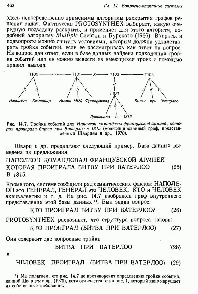 Рис. 14.7. Тройка событий для Наполеон командовал французской армией, которая проиграла битву при Ватерлоо в 1815 (модифицированный граф, представленный Шварцем и др., 1970). Шварц и др. предлагают следующий пример. База данных выведена из предложения