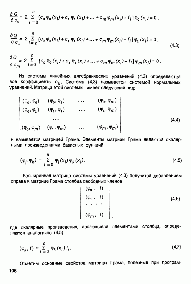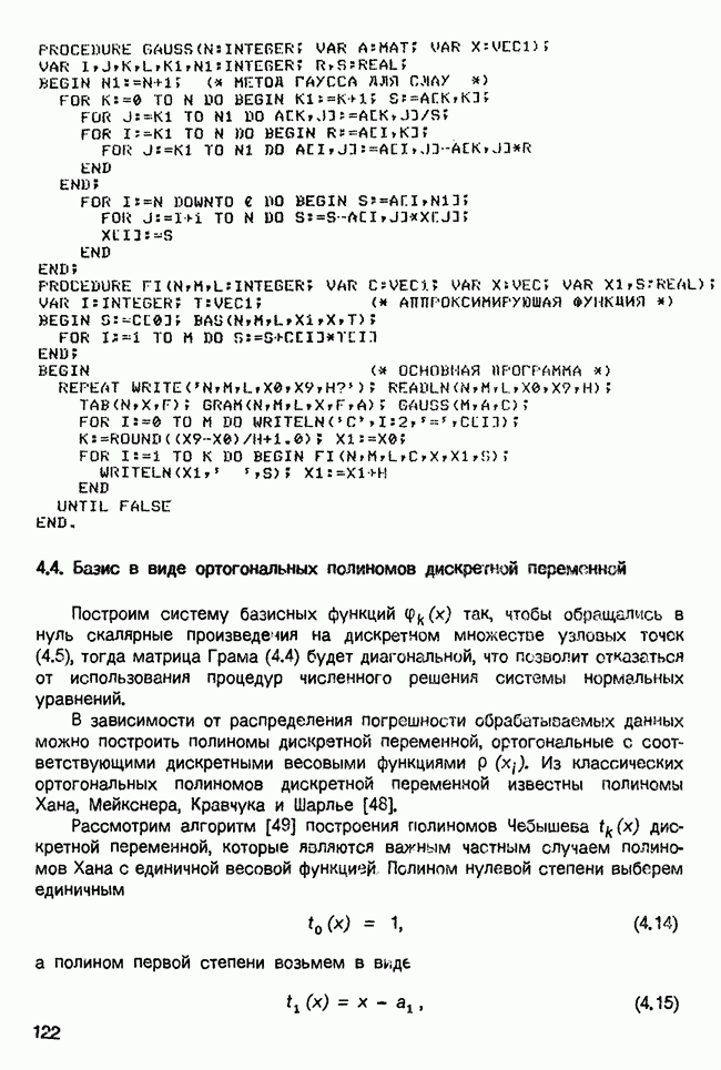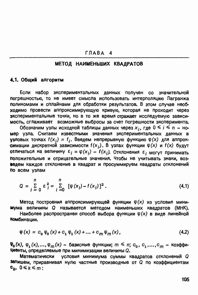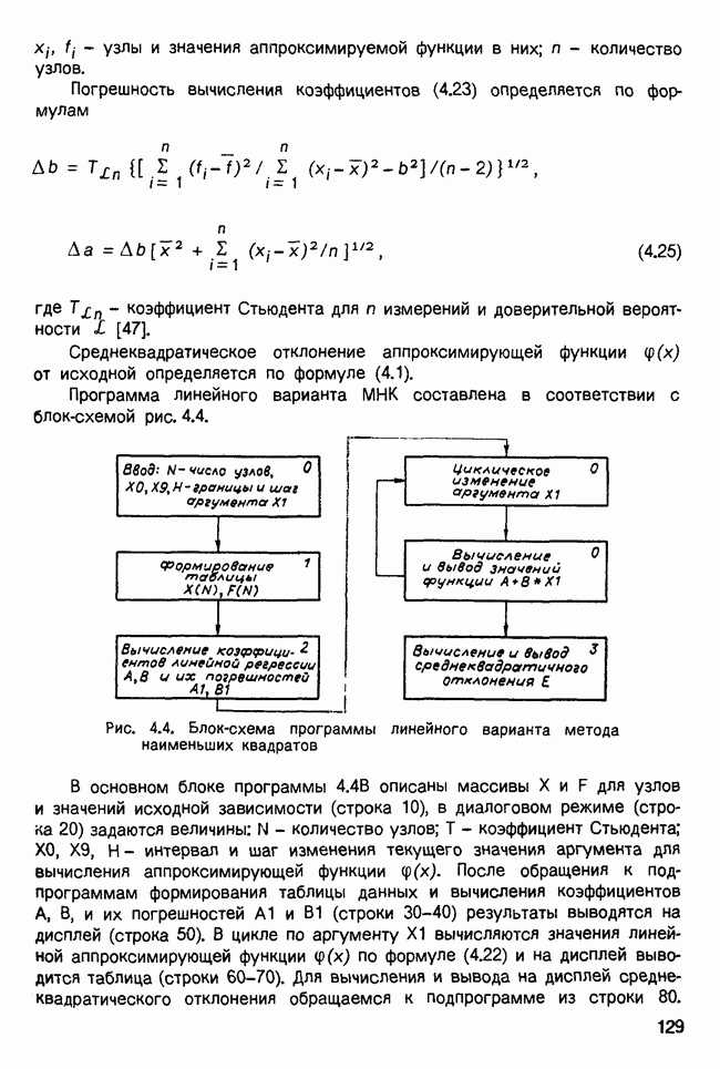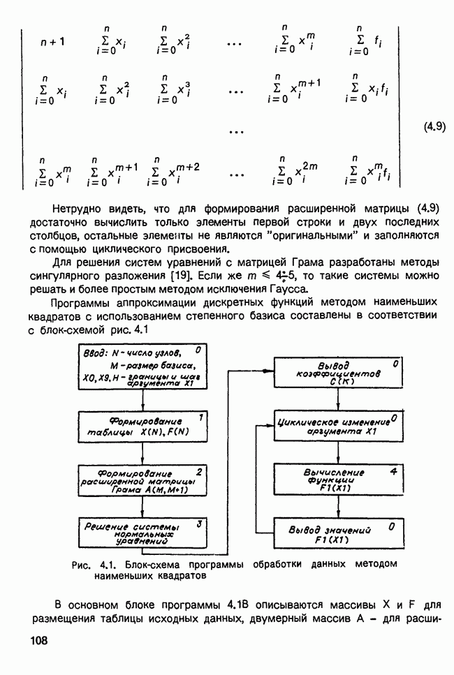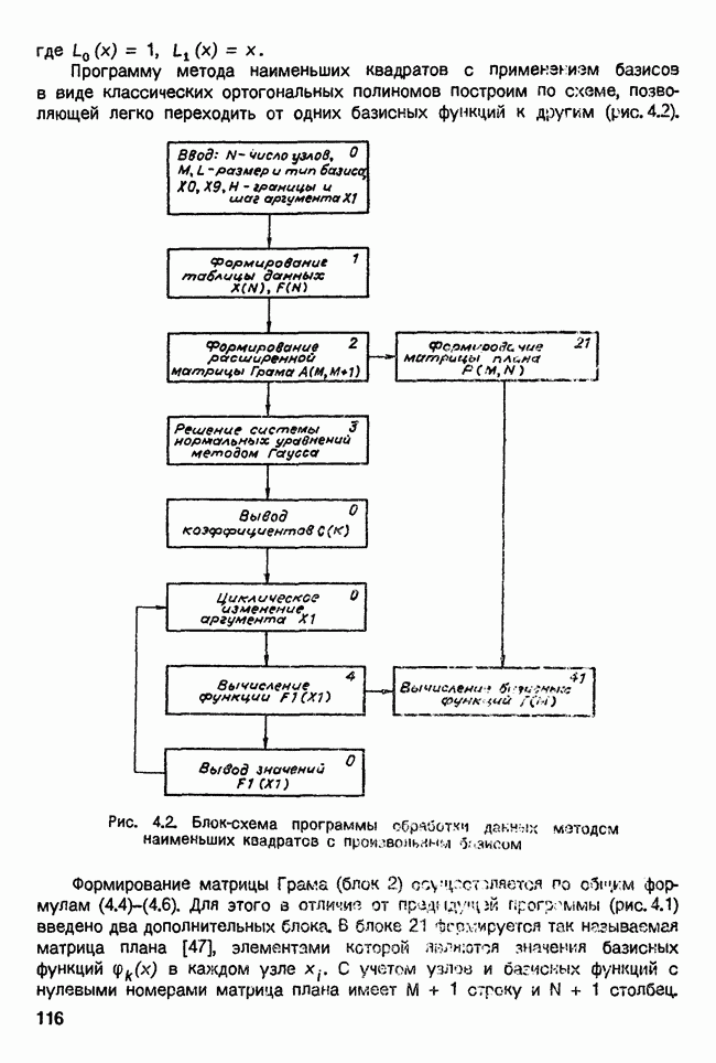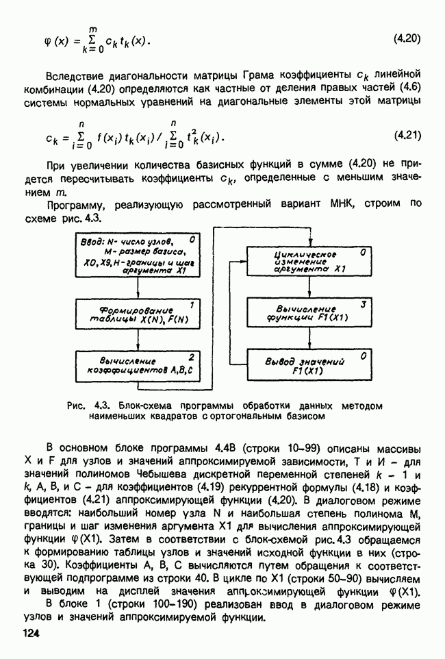 При увеличении количества базисных функций в сумме (4.20) не придется пересчитывать коэффициенты Программу, реализующую рассмотренный вариант МНК, строим по схеме рис. 4.3.