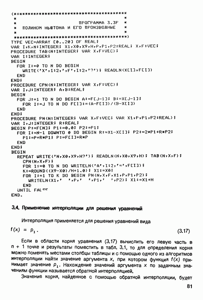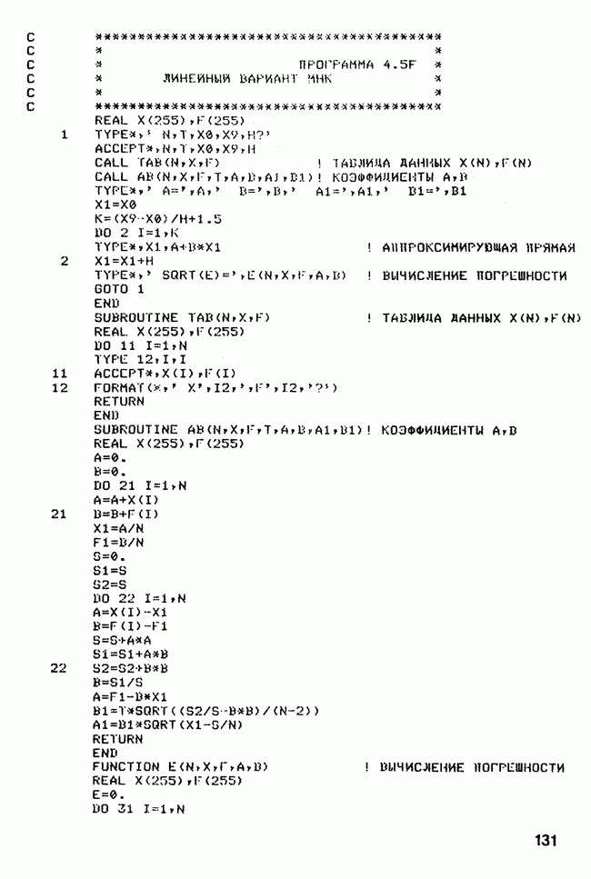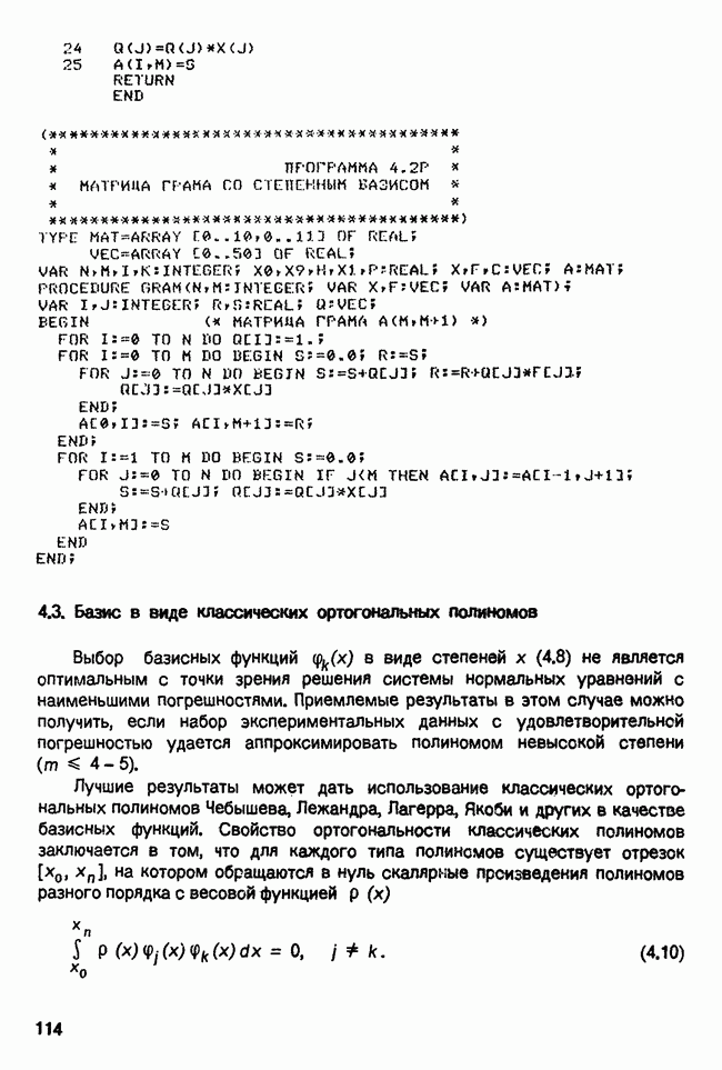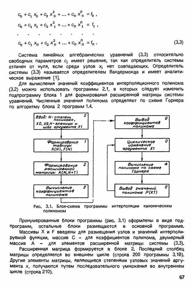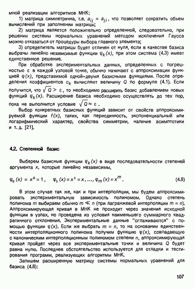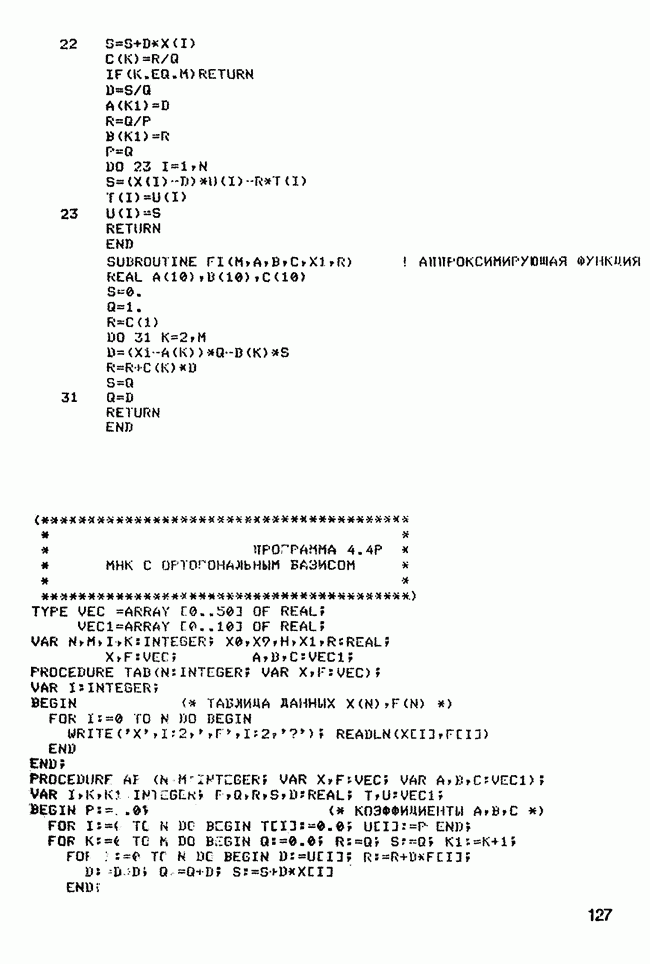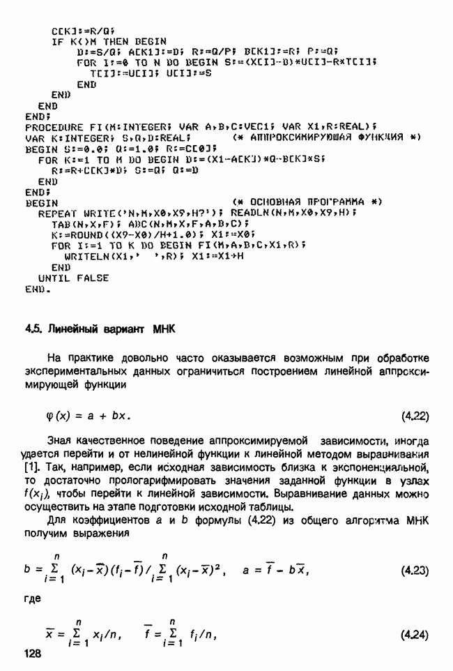 При увеличении количества базисных функций в сумме (4.20) не придется пересчитывать коэффициенты Программу, реализующую рассмотренный вариант МНК, строим по схеме рис. 4.3.
