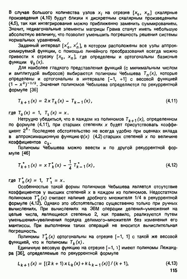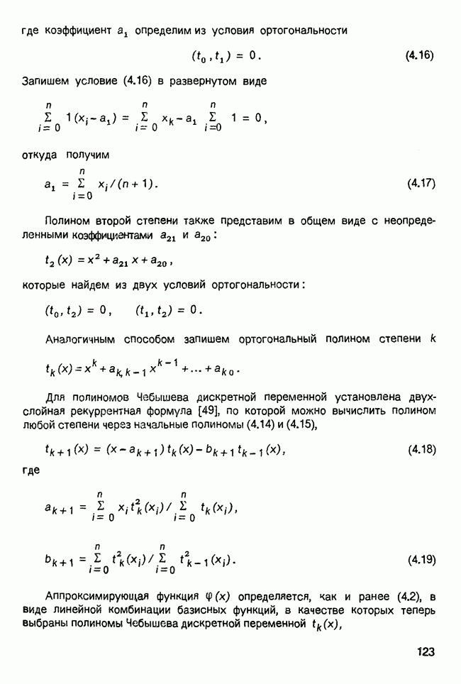 4.4. Базис в виде ортогональных полиномов дискретной переменнейПостроим систему базисных функций В зависимости от распределения погрешности обрабатываемых данных можно построить полиномы дискретной переменной, ортогональные с соответствующими дискретными весовыми функциями Рассмотрим алгоритм [49] построения полиномов Чебышева