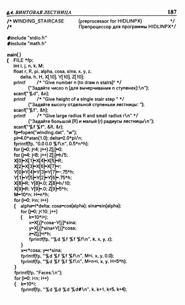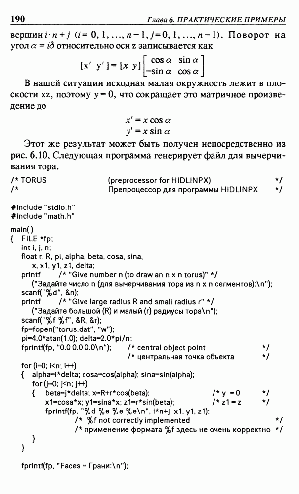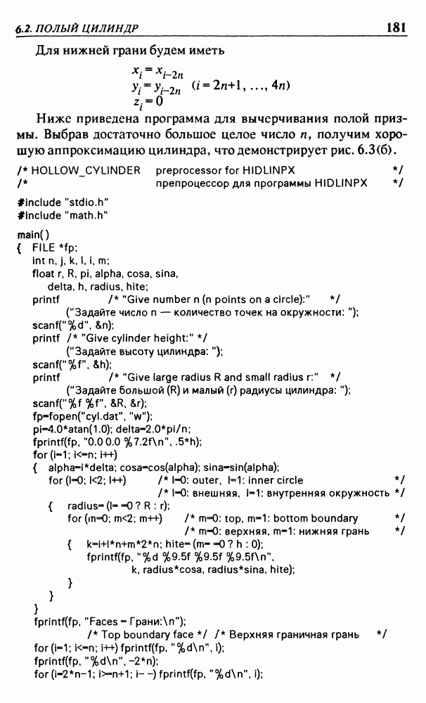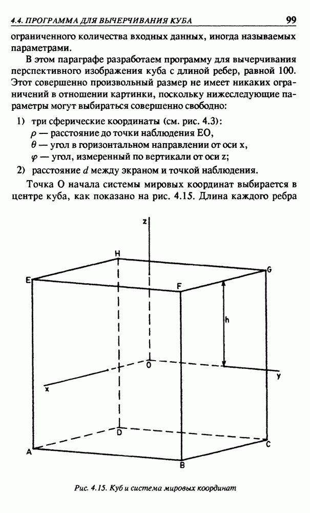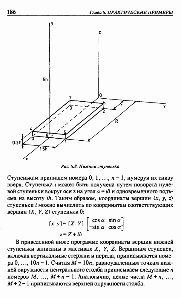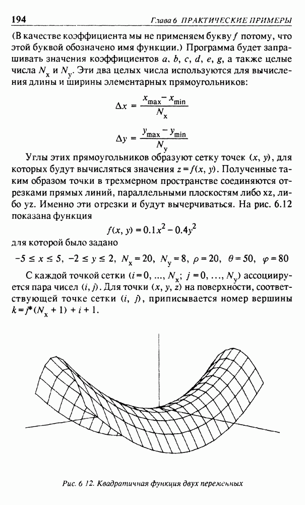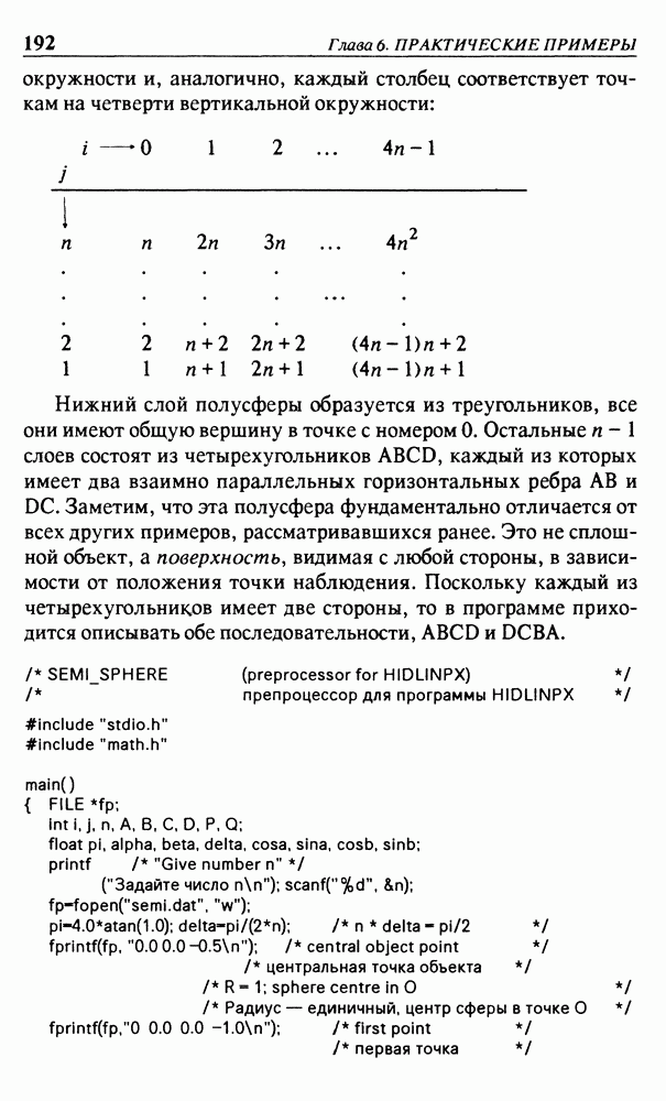 6.6. ПОЛУСФЕРАНа рис. 6.11 показана нижняя половина сферы. Пусть начало системы координат совпадает с центром сферы. Поскольку вся картинка будет автоматически масштабироваться на всю область вывода, абсолютные размеры не имеют значения, поэтому можно