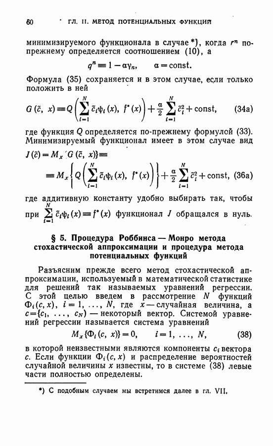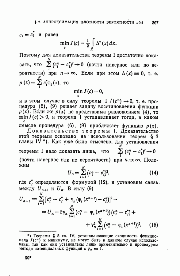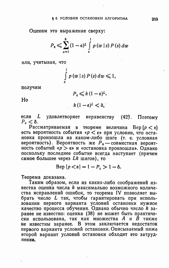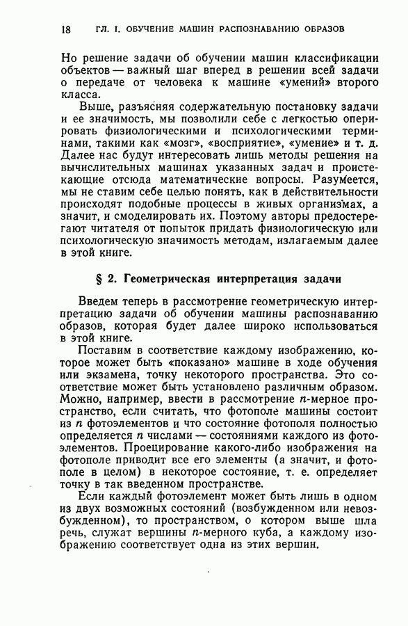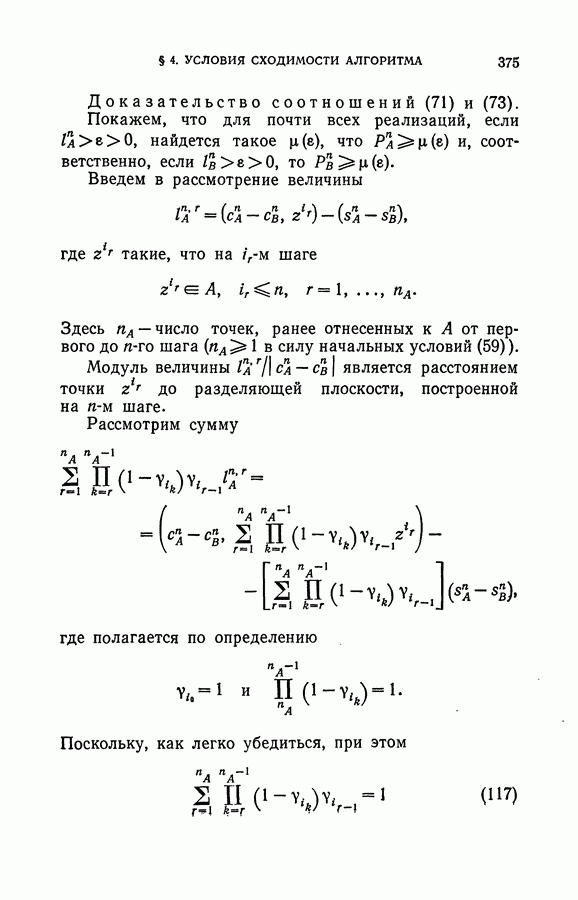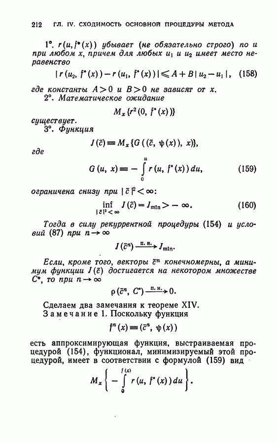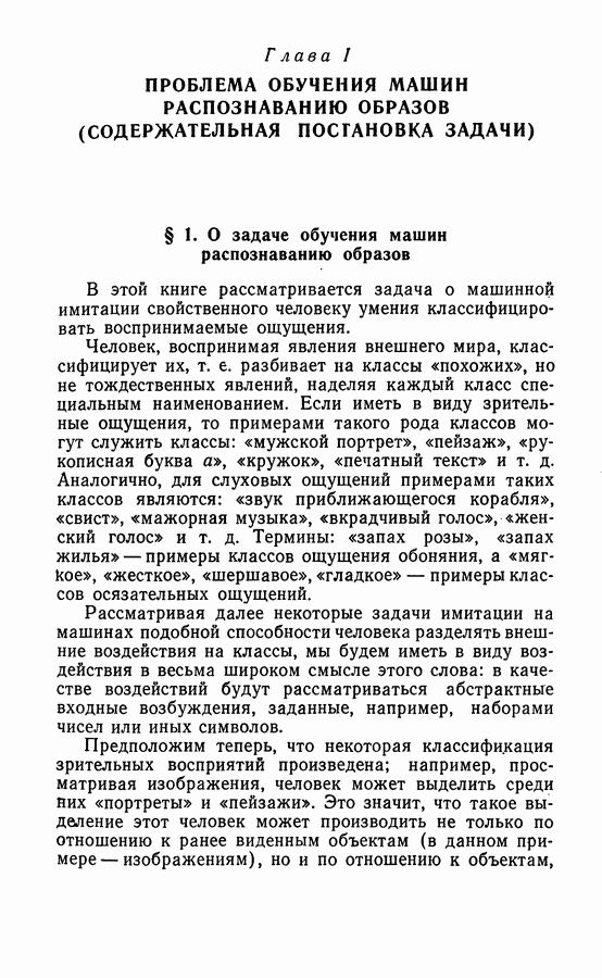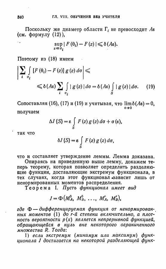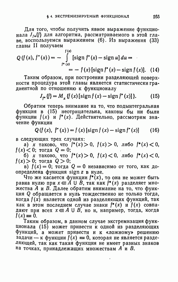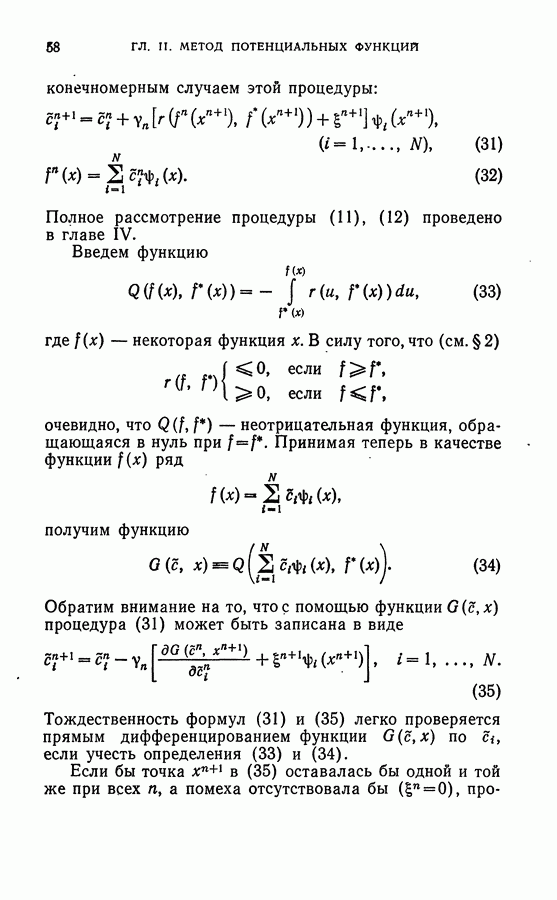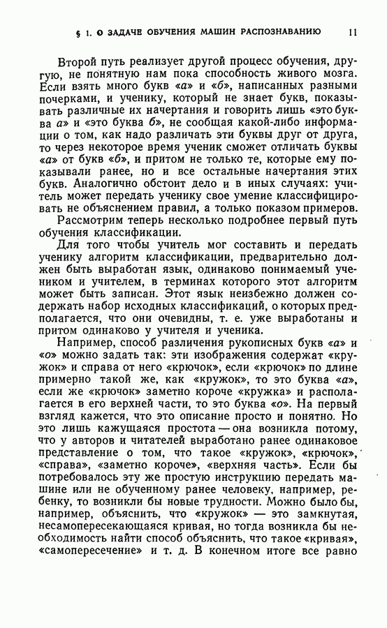 Тогда те же основания позволяют предполагать, что эта функция будет представлять собой «горный ландшафт» с вершинами над областями До сих пор мы старались лишь выяснить основную идею метода потенциальных функций, опираясь не на точные определения, а на интуицию читателя. Нам предстоит далее перейти к точному изложению метода. В связи с этим подчеркнем еще раз, что буквальное применение процедуры в той форме, в какой она была выше описана, далеко не всегда привело бы к успеху, даже в случае обучения с учителем. Одна из причин того, что эта процедура недостаточна, связана с тем, что среди точек пространства X, показываемых учителем, области А, В и т. д. могут быть представлены неравномерно. Если, например, число точек из А заметно больше числа точек из В, то даже интуитивно ясно, что это может привести к неправильно построенной разделяющей поверхности. Алгоритм метода потенциальных функций, который предлагается далее в этой книге (гл. V), отличается от описанной выше «упрощенной процедуры» и, в частности, обходит это затруднение. В предыдущих рассуждениях мы не накладывали каких-либо условий на то, каким образом выбираются точки, показываемые учителем. Между тем ясно, что если все или даже почти все показываемые точки принадлежат подобластям А а До сих пор, говоря о методе потенциальных функций, мы имели в виду лишь детерминистскую задачу: области
