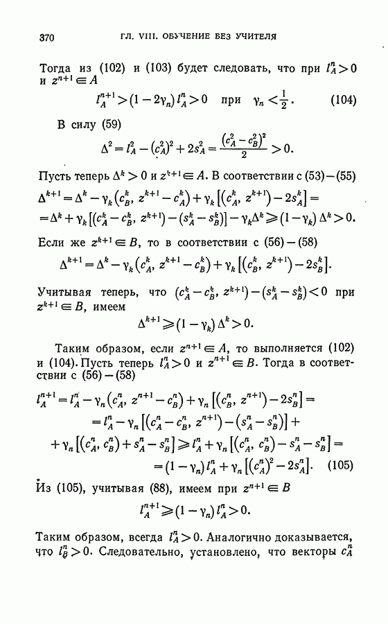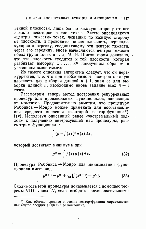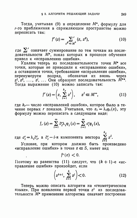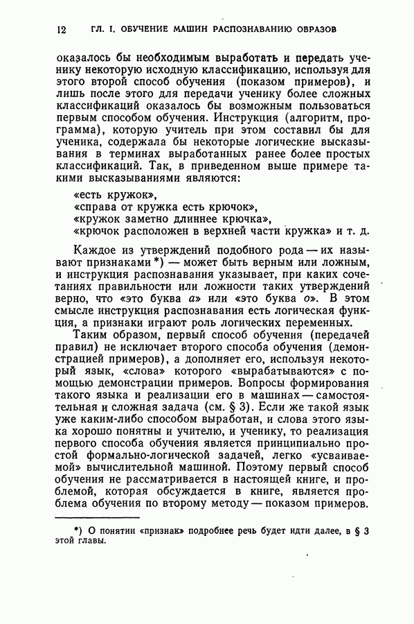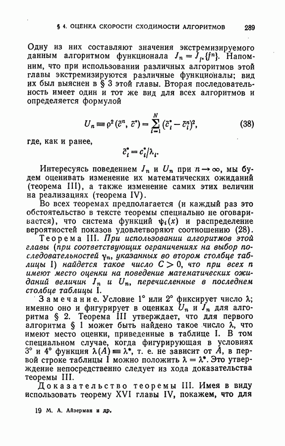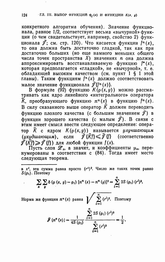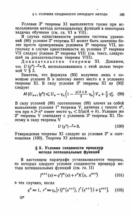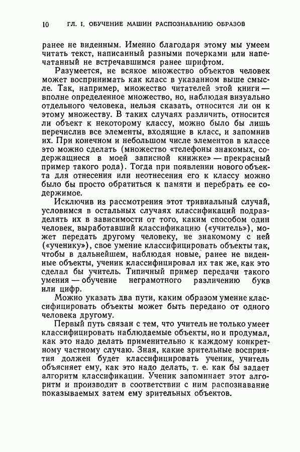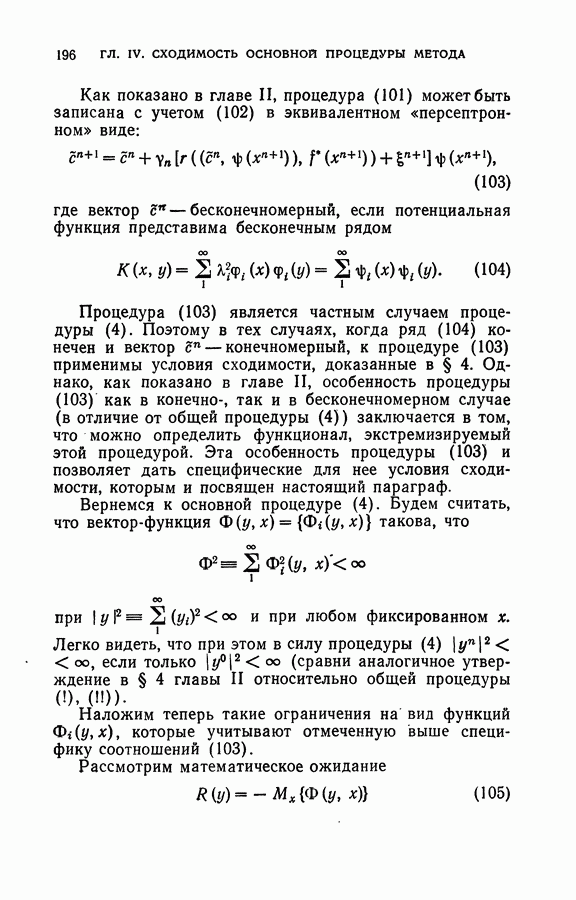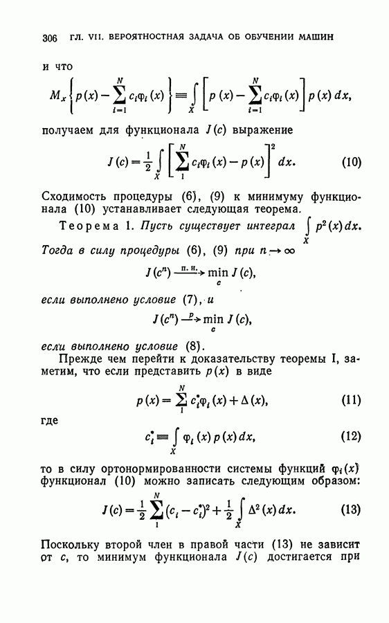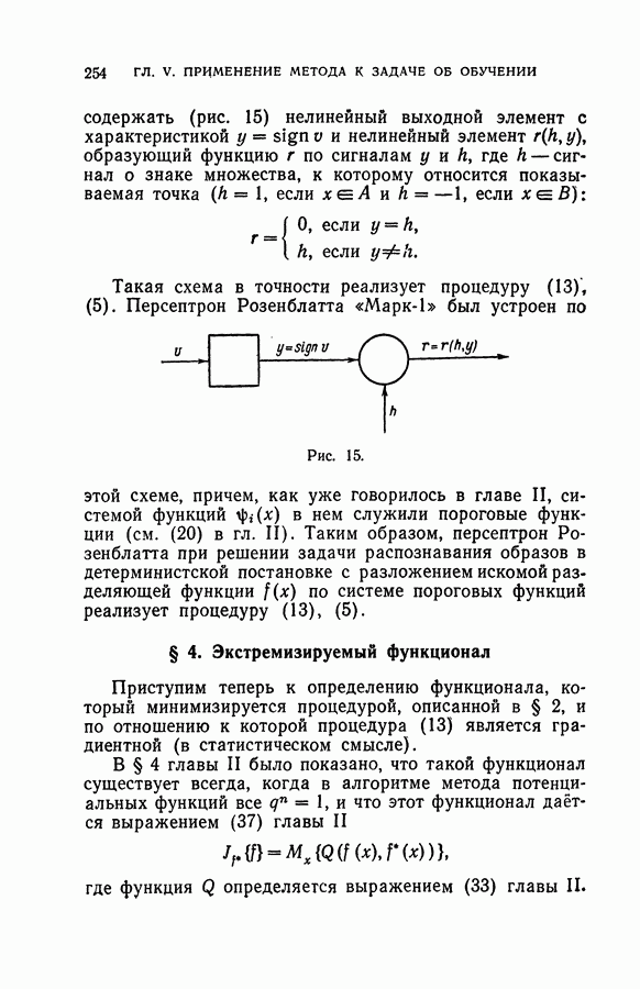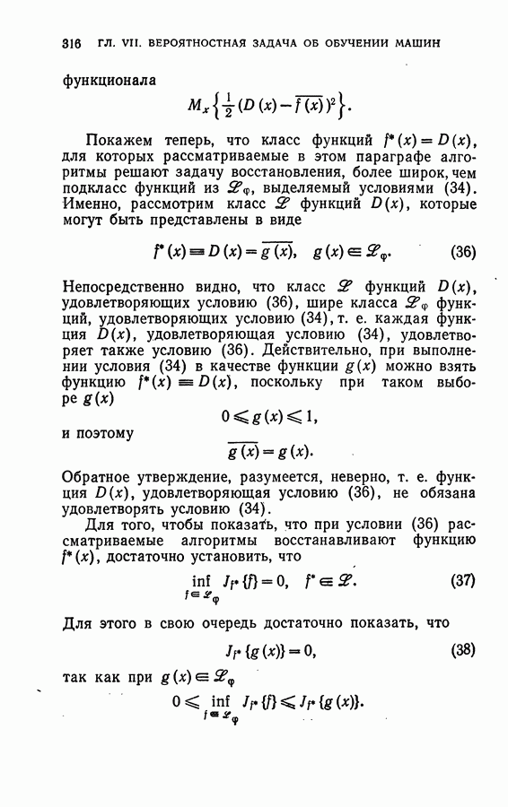 Тогда те же основания позволяют предполагать, что эта функция будет представлять собой «горный ландшафт» с вершинами над областями До сих пор мы старались лишь выяснить основную идею метода потенциальных функций, опираясь не на точные определения, а на интуицию читателя. Нам предстоит далее перейти к точному изложению метода. В связи с этим подчеркнем еще раз, что буквальное применение процедуры в той форме, в какой она была выше описана, далеко не всегда привело бы к успеху, даже в случае обучения с учителем. Одна из причин того, что эта процедура недостаточна, связана с тем, что среди точек пространства X, показываемых учителем, области А, В и т. д. могут быть представлены неравномерно. Если, например, число точек из А заметно больше числа точек из В, то даже интуитивно ясно, что это может привести к неправильно построенной разделяющей поверхности. Алгоритм метода потенциальных функций, который предлагается далее в этой книге (гл. V), отличается от описанной выше «упрощенной процедуры» и, в частности, обходит это затруднение. В предыдущих рассуждениях мы не накладывали каких-либо условий на то, каким образом выбираются точки, показываемые учителем. Между тем ясно, что если все или даже почти все показываемые точки принадлежат подобластям А а До сих пор, говоря о методе потенциальных функций, мы имели в виду лишь детерминистскую задачу: области