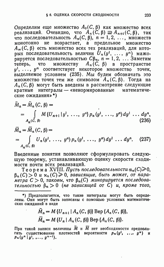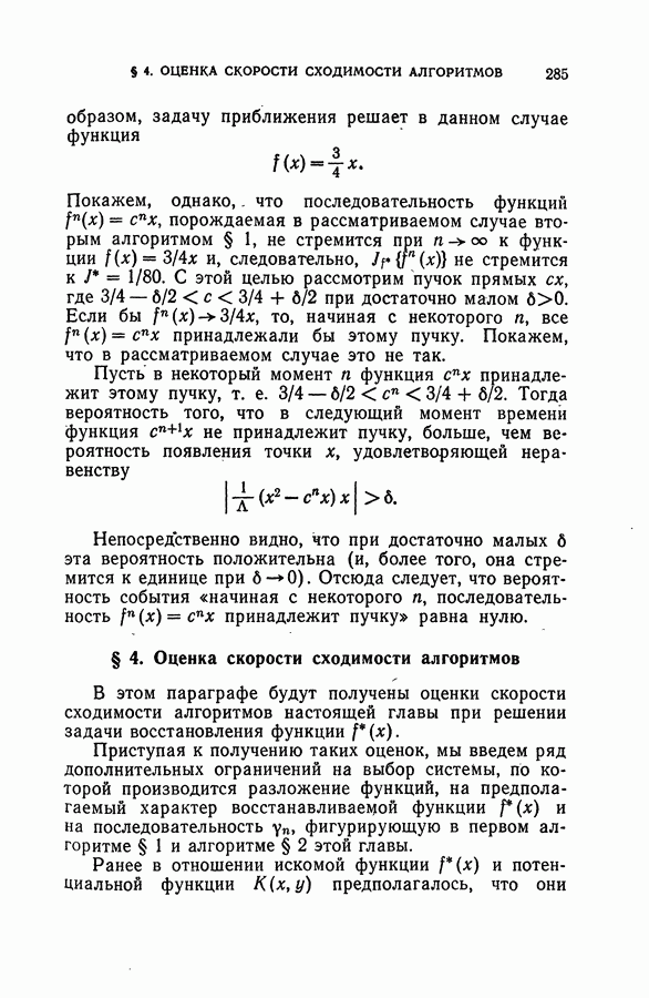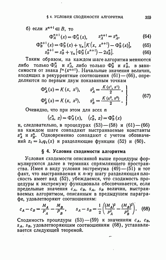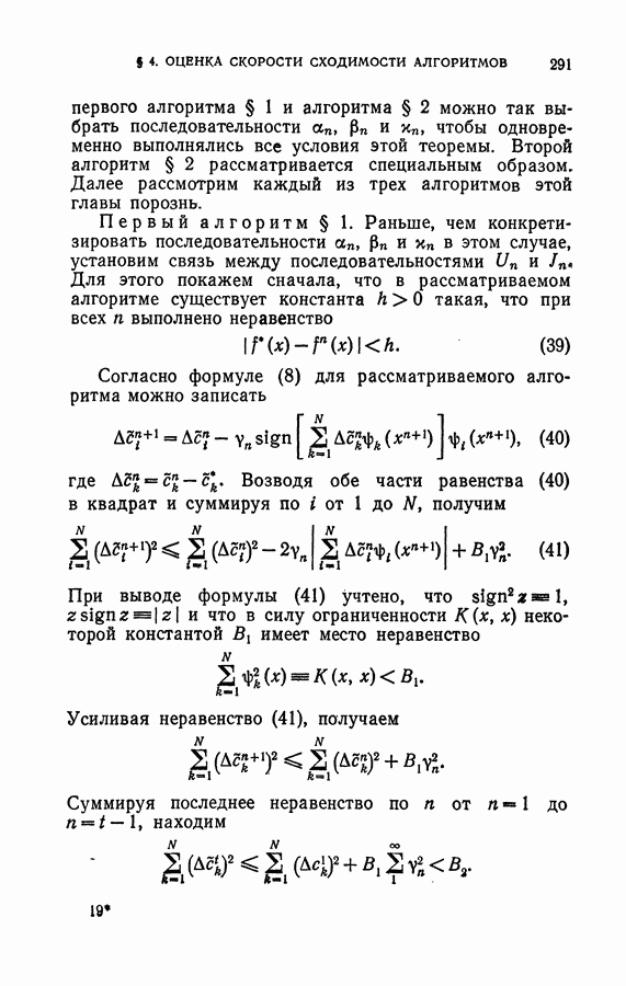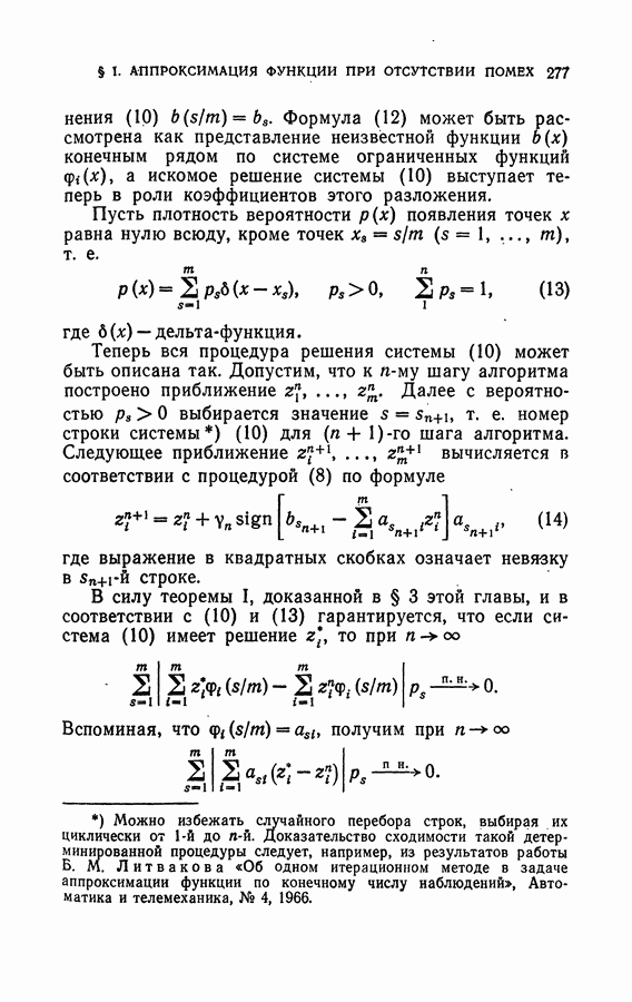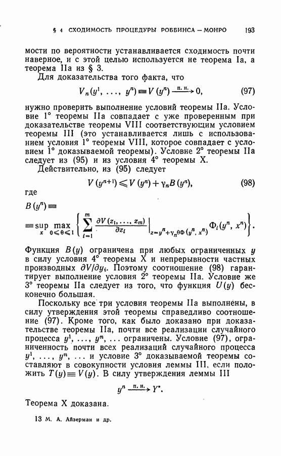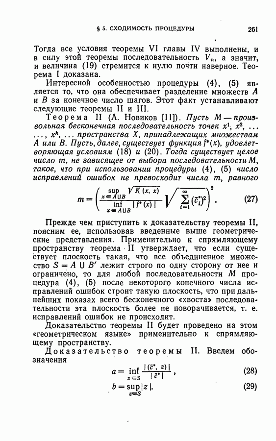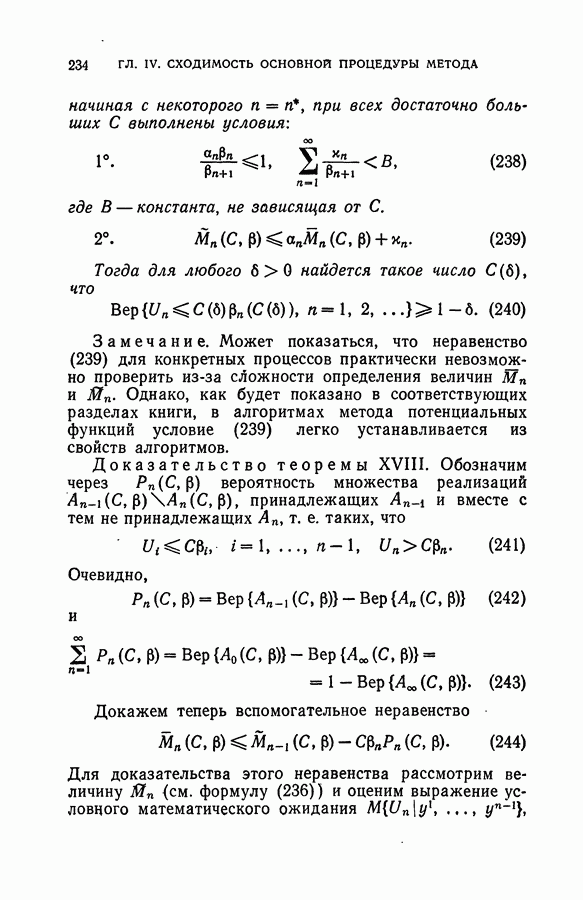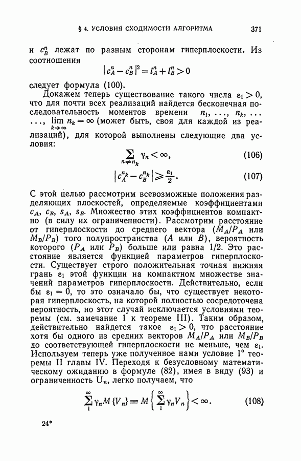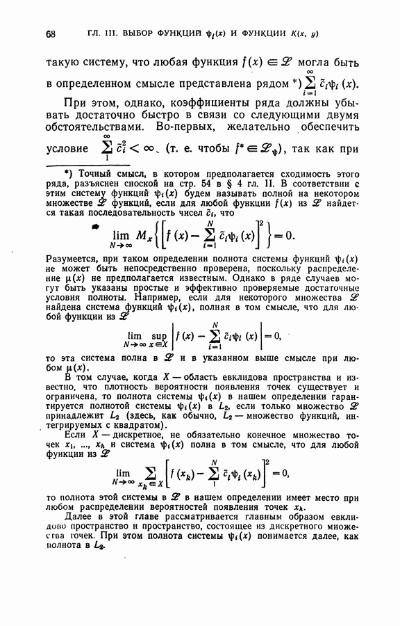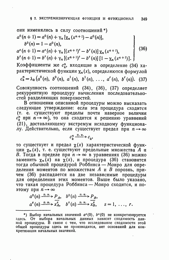Тогда те же основания позволяют предполагать, что эта функция будет представлять собой «горный ландшафт» с вершинами над областями До сих пор мы старались лишь выяснить основную идею метода потенциальных функций, опираясь не на точные определения, а на интуицию читателя. Нам предстоит далее перейти к точному изложению метода. В связи с этим подчеркнем еще раз, что буквальное применение процедуры в той форме, в какой она была выше описана, далеко не всегда привело бы к успеху, даже в случае обучения с учителем. Одна из причин того, что эта процедура недостаточна, связана с тем, что среди точек пространства X, показываемых учителем, области А, В и т. д. могут быть представлены неравномерно. Если, например, число точек из А заметно больше числа точек из В, то даже интуитивно ясно, что это может привести к неправильно построенной разделяющей поверхности. Алгоритм метода потенциальных функций, который предлагается далее в этой книге (гл. V), отличается от описанной выше «упрощенной процедуры» и, в частности, обходит это затруднение. В предыдущих рассуждениях мы не накладывали каких-либо условий на то, каким образом выбираются точки, показываемые учителем. Между тем ясно, что если все или даже почти все показываемые точки принадлежат подобластям А а До сих пор, говоря о методе потенциальных функций, мы имели в виду лишь детерминистскую задачу: области