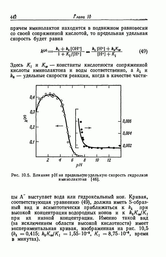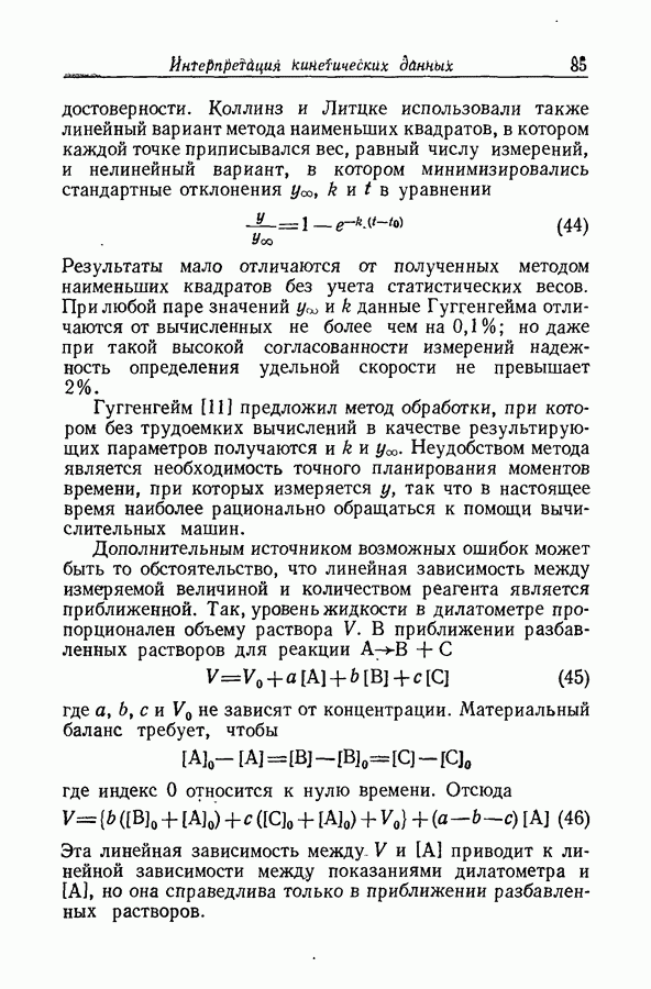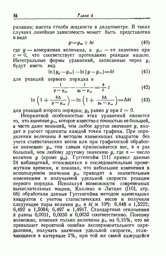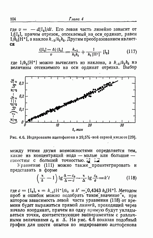 где оператор 6 описывает влияние изменяющейся концентрации кислоты. Линейный характер отдельных участков графиков, изображенных на рис. 9.3 и 9.4, требует,