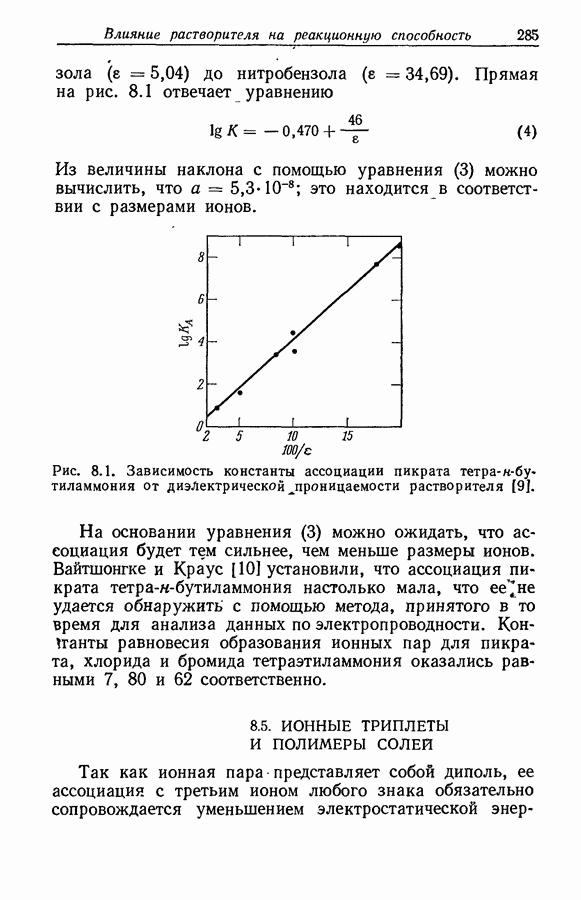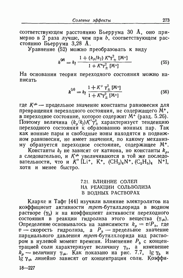 незначительно, а вторую — в растворах, где это превращение произошло практически нацело. Для труднорастворимого вещества В произведение