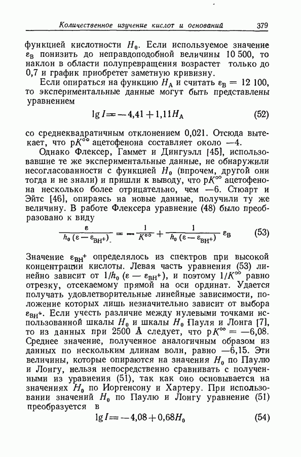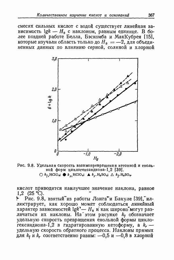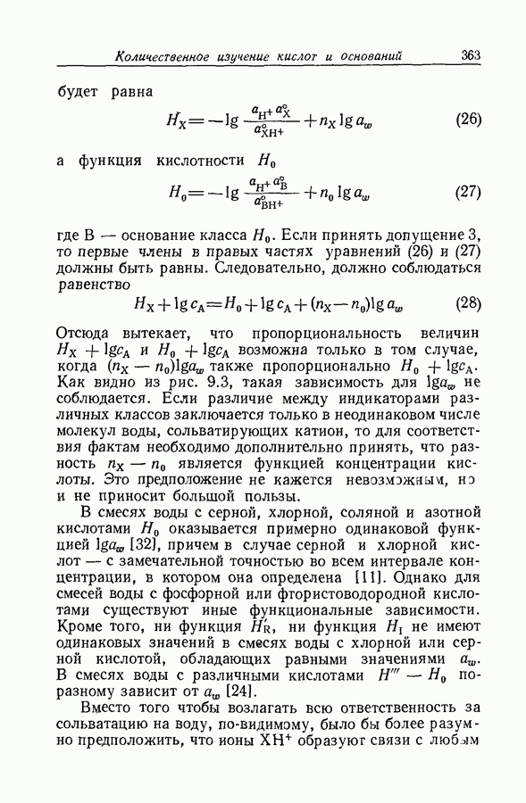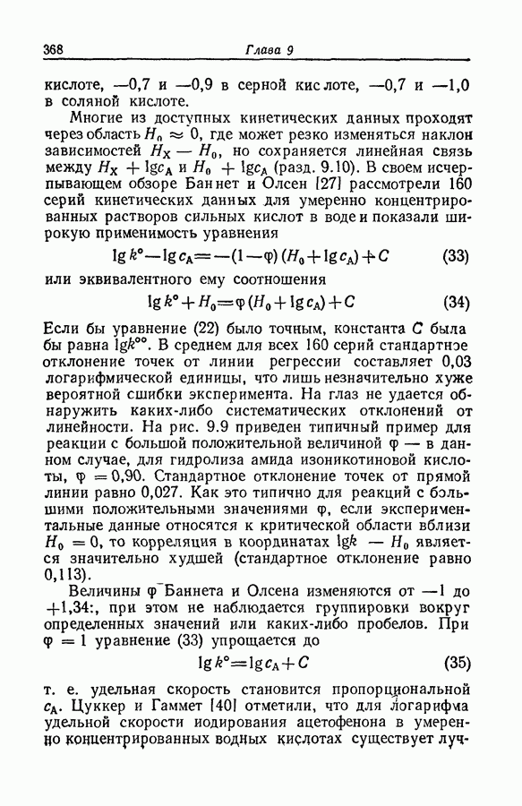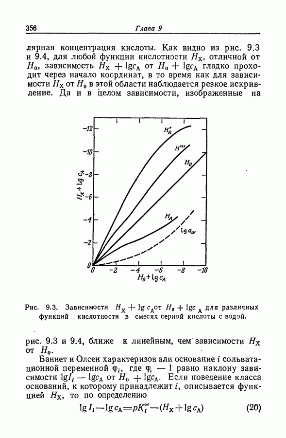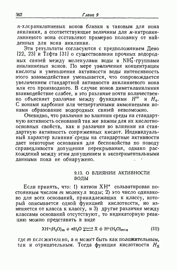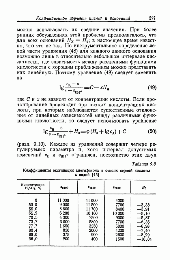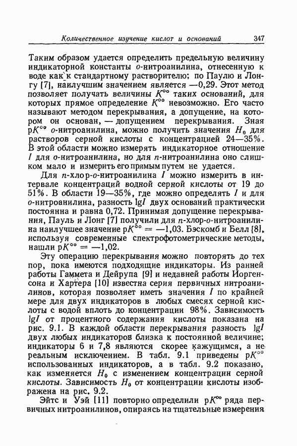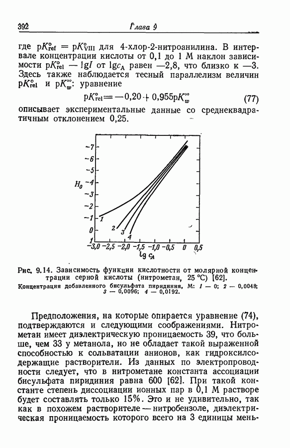 от процентного содержания серной кислоты, полученные Гаммет ом, Чепменсм [28] и Бойдом 129]. В пределах использованных концентраций кислоты ни одно из изученных веществ не подвергается заметному превращению в сопряженную кислоту. Свитинг и Эйтс [30] исследовали