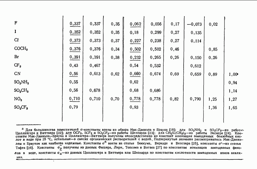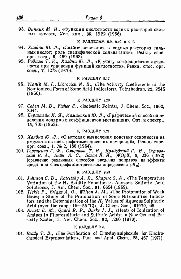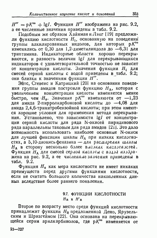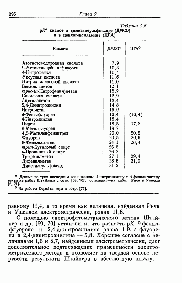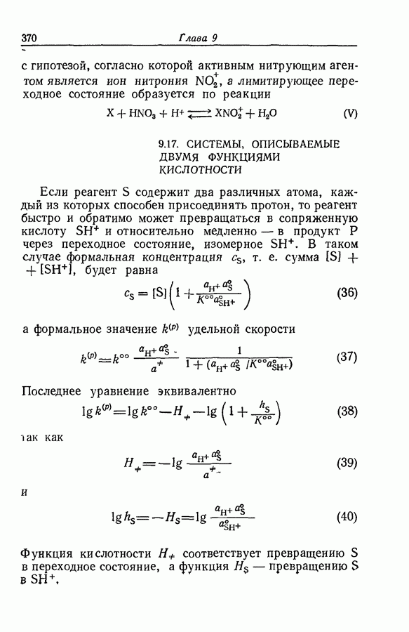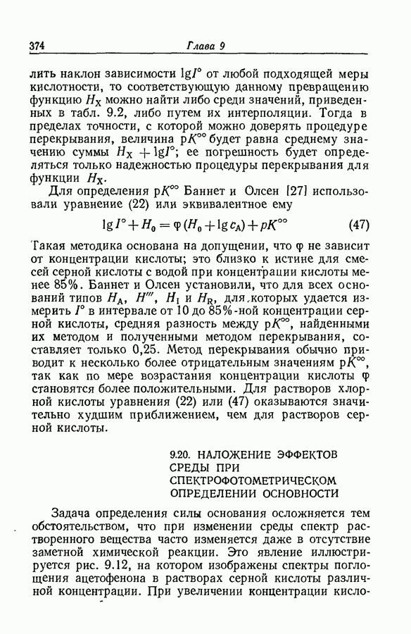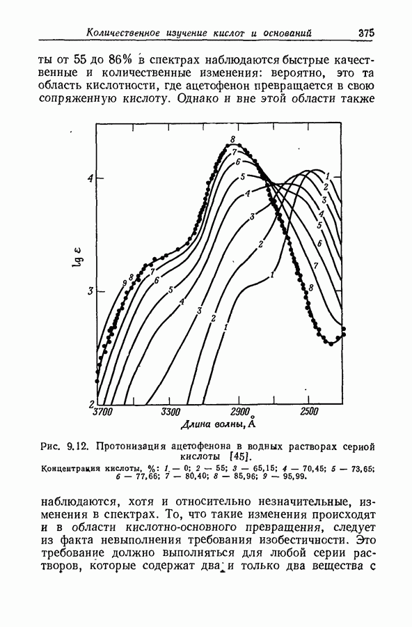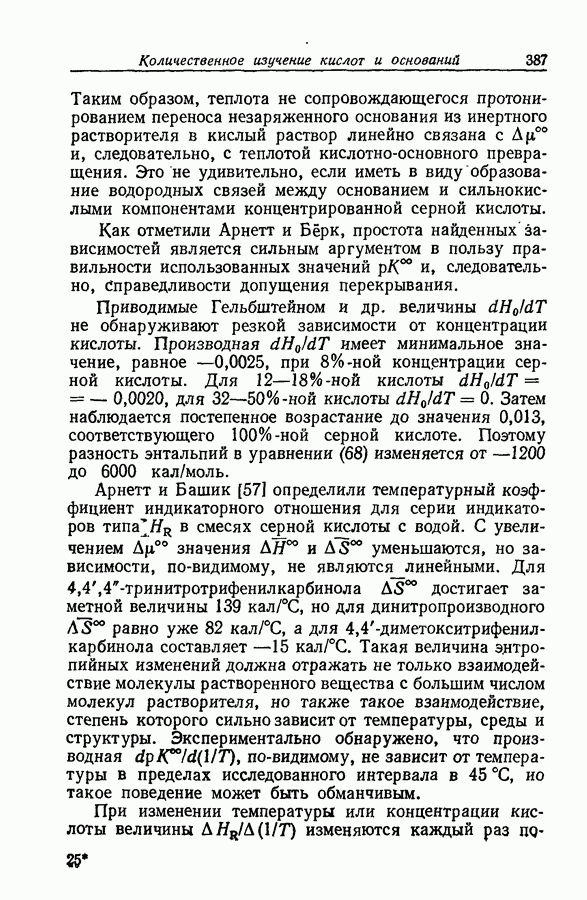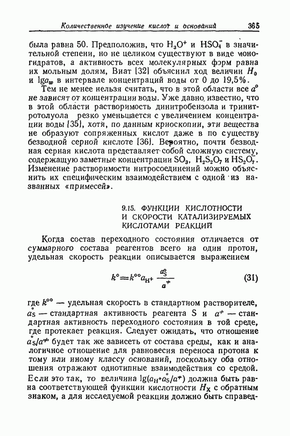 от процентного содержания серной кислоты, полученные Гаммет ом, Чепменсм [28] и Бойдом 129]. В пределах использованных концентраций кислоты ни одно из изученных веществ не подвергается заметному превращению в сопряженную кислоту. Свитинг и Эйтс [30] исследовали