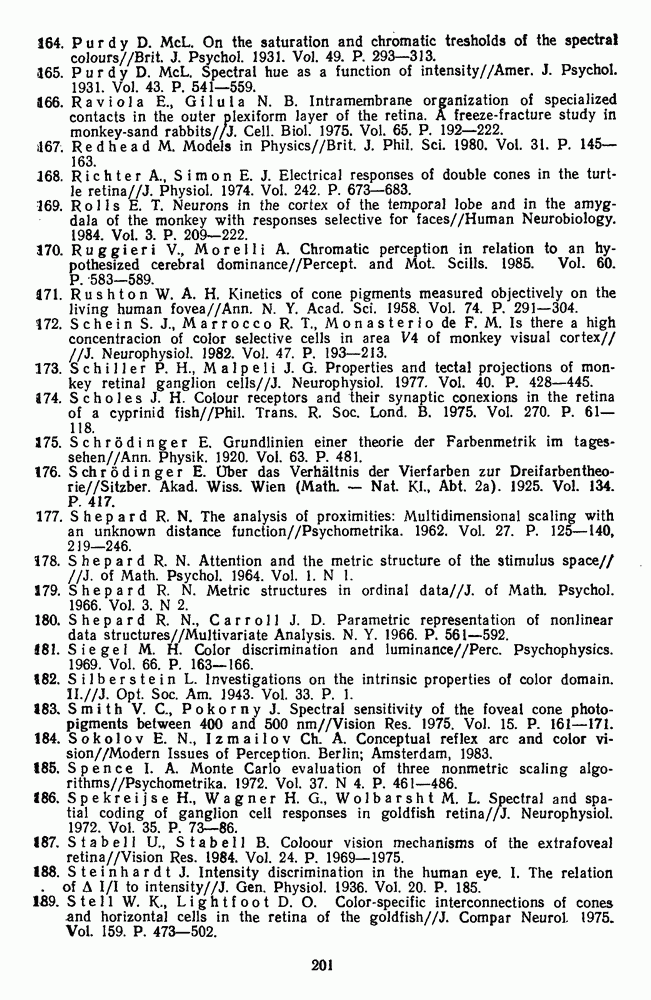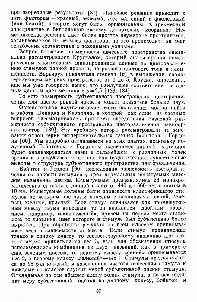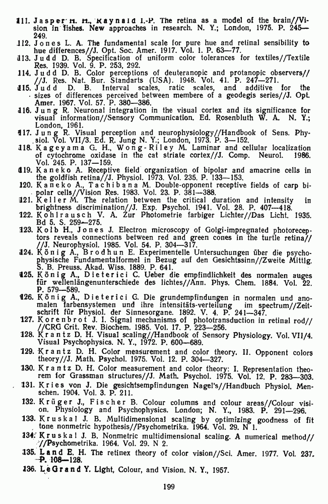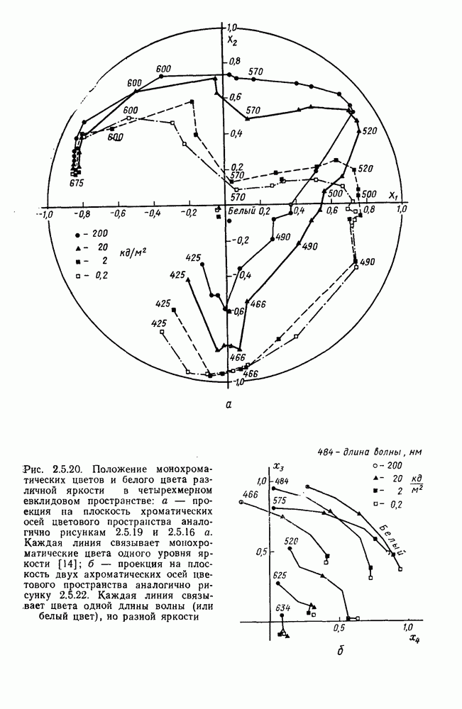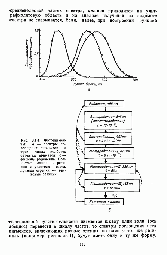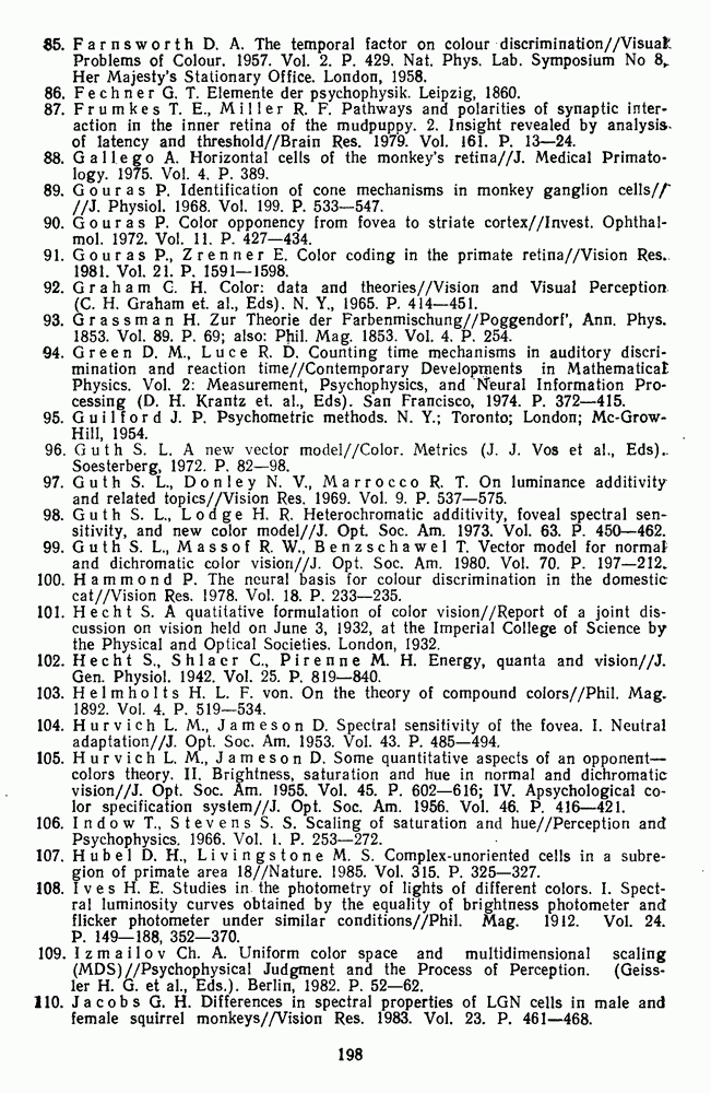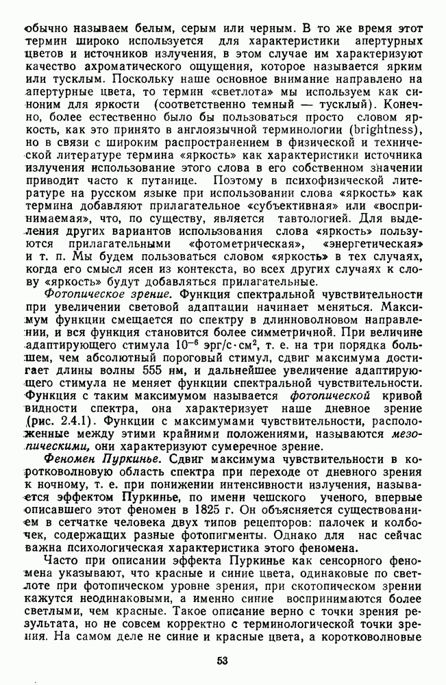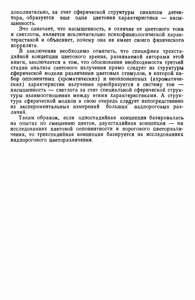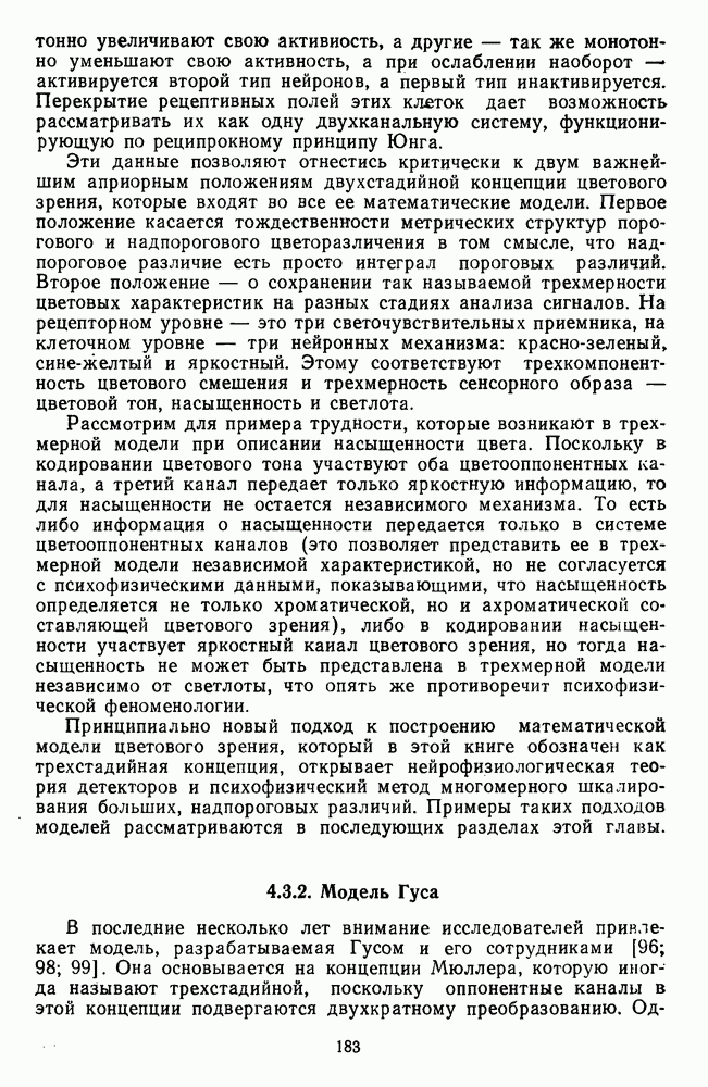 3.3.3. Особенности нейронов парво- и магноцеллюлярных слоевПо современным данным, нейроны НКТ, участвующие в кодировании цвета, локализуются в парвоцеллюлярных слоях [77; 74]. Здесь сконцентрированы тонические клетки спектральным составом излучения, но и яркостным контрастом стимула и фона. Интересно в этой связи, что максимально насыщенными цвета, кроме красных, воспринимаются не на темном фоне, а на светлом ахроматическом фоне [13]. Например, синий цвет наблюдается максимально насыщенным, тогда как его яркость составляет лишь Клетки Магноцеллюлярные слои также состоят из оппонентных нейронов с пространственно разнесенными в рецептивном поле входами от колбочек разного типа. Часть авторов связывают нейронные сети этих слоев с кодированием яркости [93], другая часть — с кодированием движущихся объектов [77]. В пользу последней точки зрения свидетельствуют такие свойства нейронов из крупноклеточных слоев, как выраженная чувствительность к высоким временным частотам, высокая контрастная чувствительность и большие рецептивные поля. Функциональные различия между нейронами из парво- и магноцеллюлярных слоев во многом определяются организацией их афферентных входов. В НКТ обезьяны ретинальные волокна от фазических и тонических ганглиозных клеток оканчиваются соответственно в крупно- и мелкоклеточных слоях. По свойствам реакций и строению РП фазические и тонические нейроны у обезьяны напоминают У- и Х-нейроны в зрительной системе кошки, у которой аксоны этих клеток также оканчиваются в разных слоях НКТ. Из различий в детекторных свойствах Анатомическая сегрегация нейронов с разными функциональными свойствами наблюдается уже в сетчатке, где отростки биполяров и ганглиозных клеток