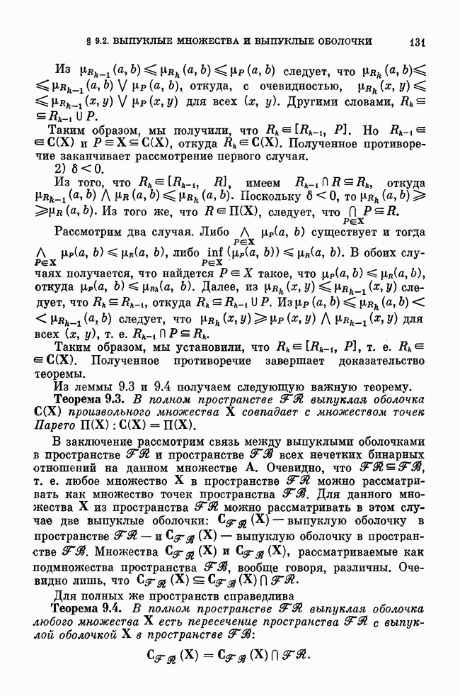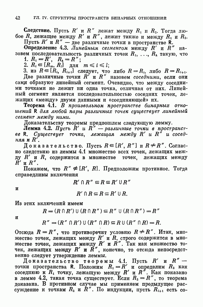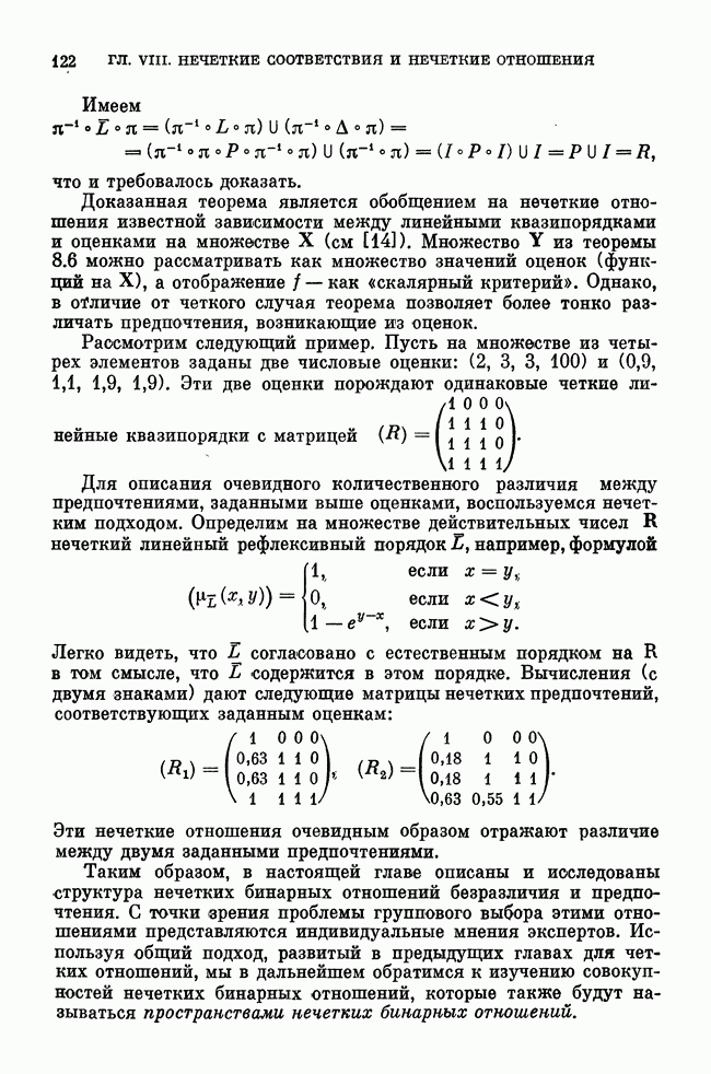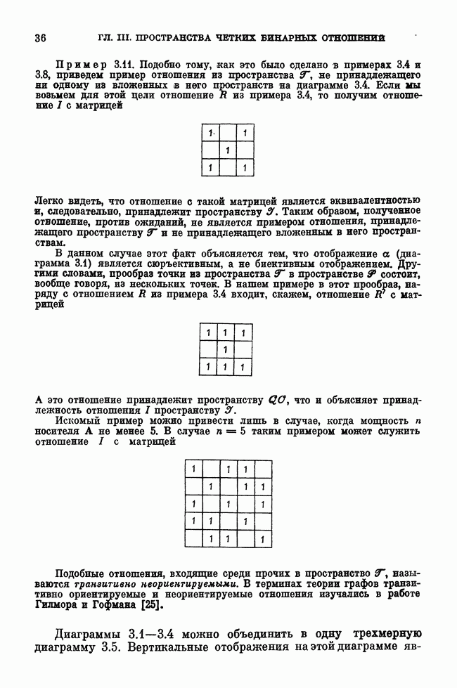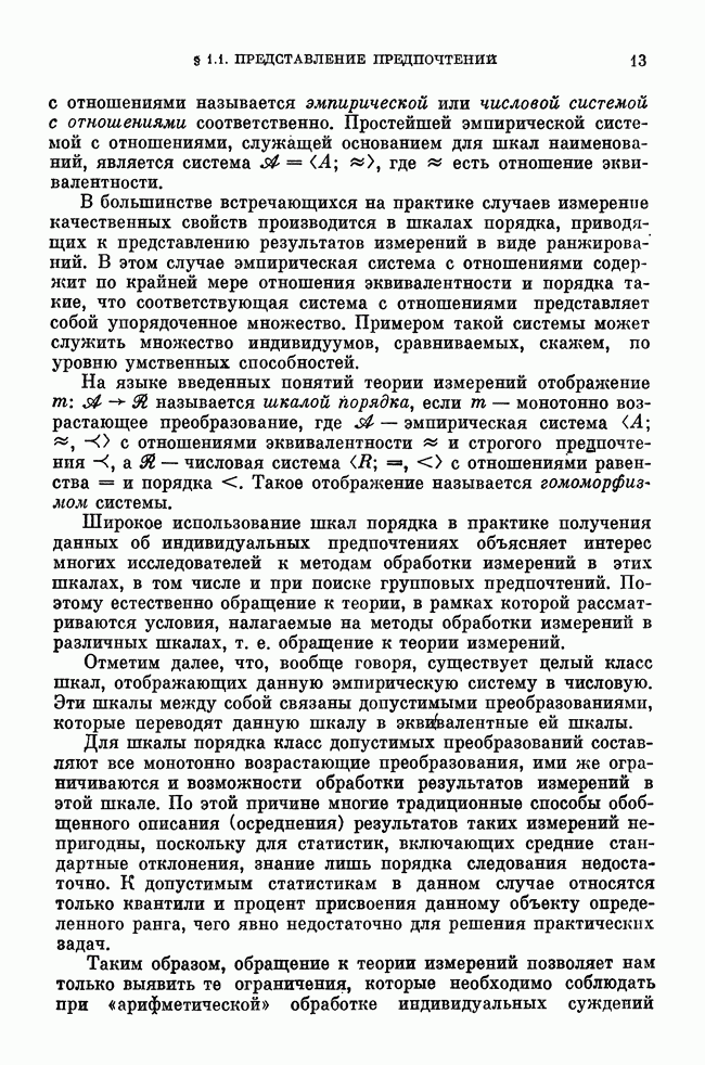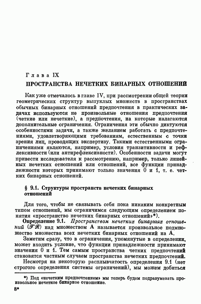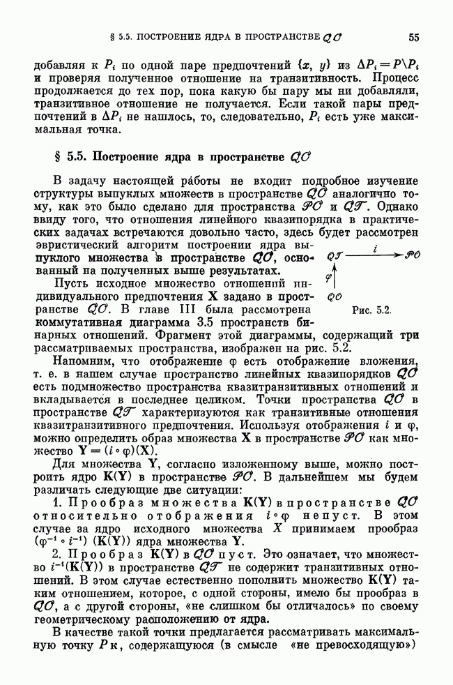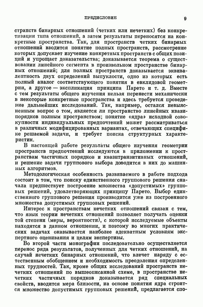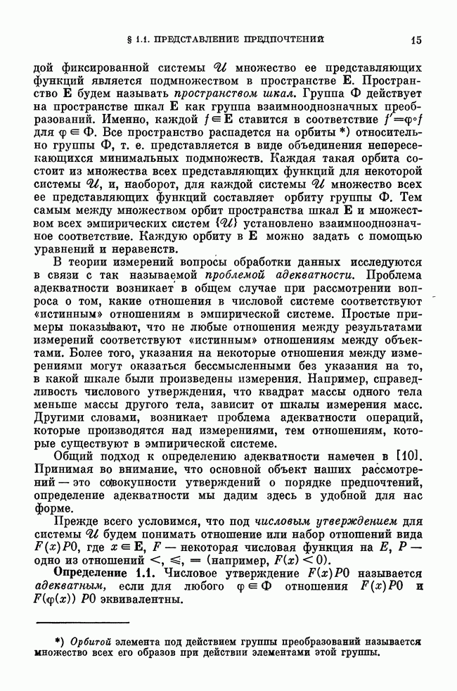 Глава VI. ОБЩИЙ АНАЛИЗ ВЫПУКЛЫХ И МЕТРИЧЕСКИХ СТРУКТУРВ предыдущих главах для решения проблемы группового выбора была развита общая теория выпуклых множеств в пространствах бинарных отношений и рассмотрены ее реализации в трех конкретных пространствах отношений индивидуального предпочтения. Настало время ответить на два вполне уместных здесь вопроса: как реализуются результаты, полученные в рамках этой теории, в остальных пространствах системы пространств, представленной на диаграмме 3.5, и как соотносятся групповые решения, получаемые на основе предложенного подхода, и подхода, при котором для построения групповых решений используется метрическая структура? Отвечая на эти вопросы, удобно взглянуть на построенную в главе III систему пространств как бы сверху. Мы начнем наш «обзор» с общего рассмотрения метрической структуры в полных пространствах и указания на ранее изученные в этом отношении пространства (§ 6.1). В следующем параграфе будут рассмотрены выпуклые и метрические структуры в рассматривавшихся ранее неполных пространствах. В конце этого параграфа ответ на первый вопрос будет представлен в таблице, подводящей итог изучению свойств полноты и выпуклости в пространствах диаграммы 3.5. В последнем параграфе этой главы будет проведено сравнение указанных двух подходов к решению проблемы группового выбора на конкретных примерах в двух пространствах диаграммы 3.5. § 6.1. Близость и метрика в полных пространствах бинарных отношенийИнтуитивно понятие близости существует в любом пространстве с метрикой — мы говорим, что точка пространстве бинарных отношений аксиоматическое описание понятия «функция близости», более широкое, чем понятие метрики, в конечном итоге приводит к однозначной метрической структуре. Этим мы, безусловно, обязаны специфике рассматриваемых задач. В этом параграфе мы рассмотрим функции близости и расстояния для случая полных пространств бинарных отношений, где связь между этими понятиями становится наиболее прозрачной. Начнем со следующего общего определения. Определение 6.1. Пусть А1. Аддитивность: