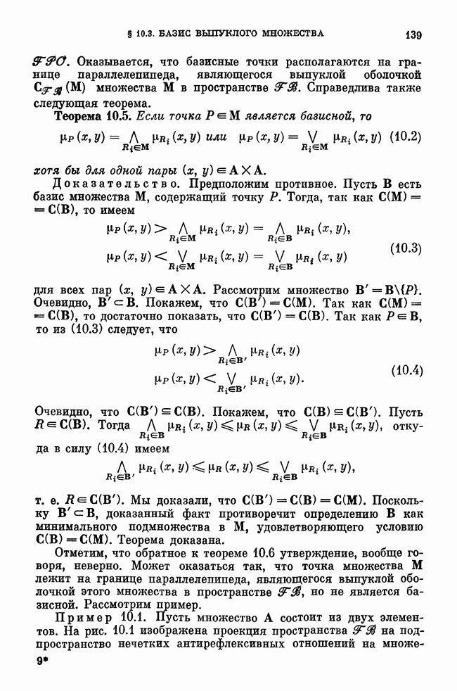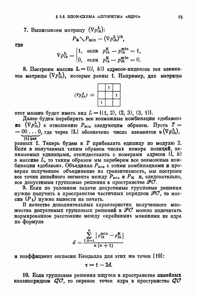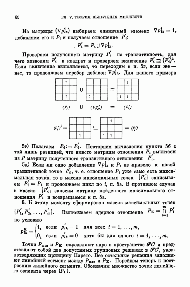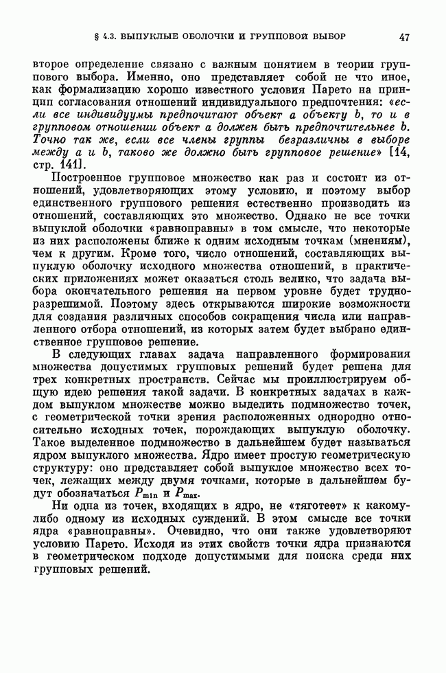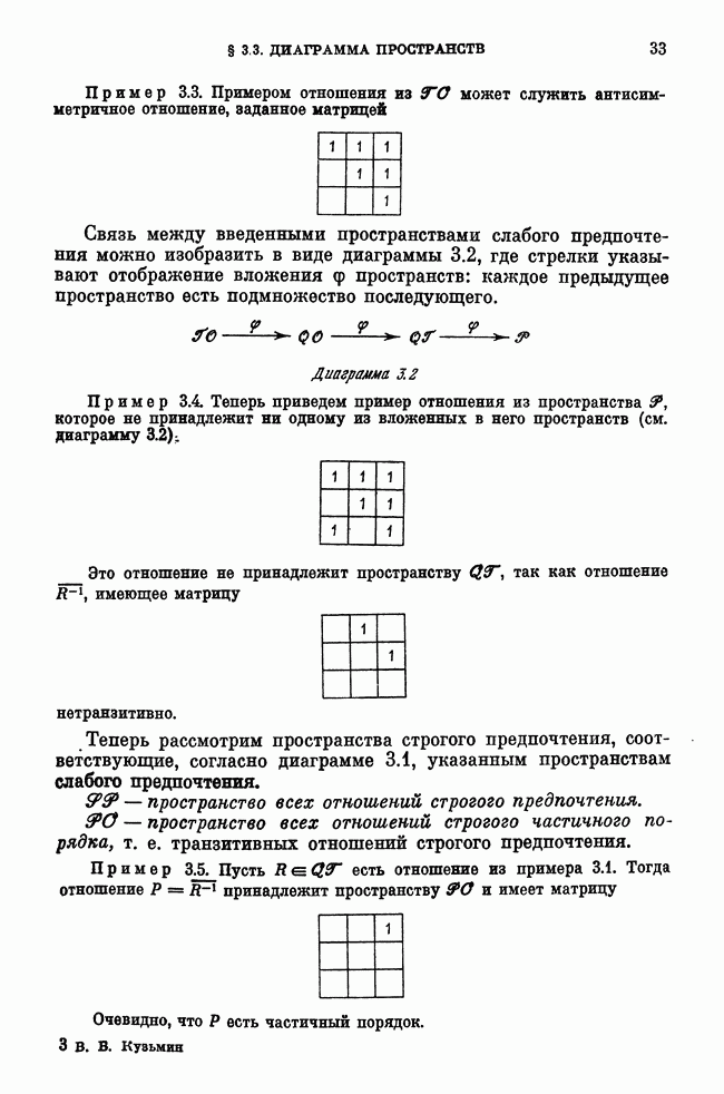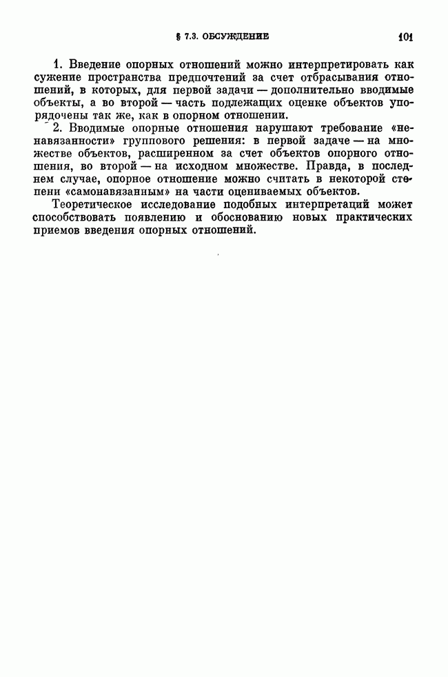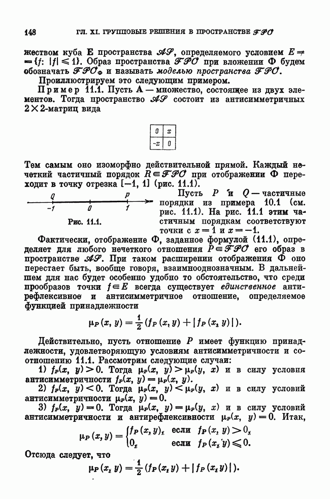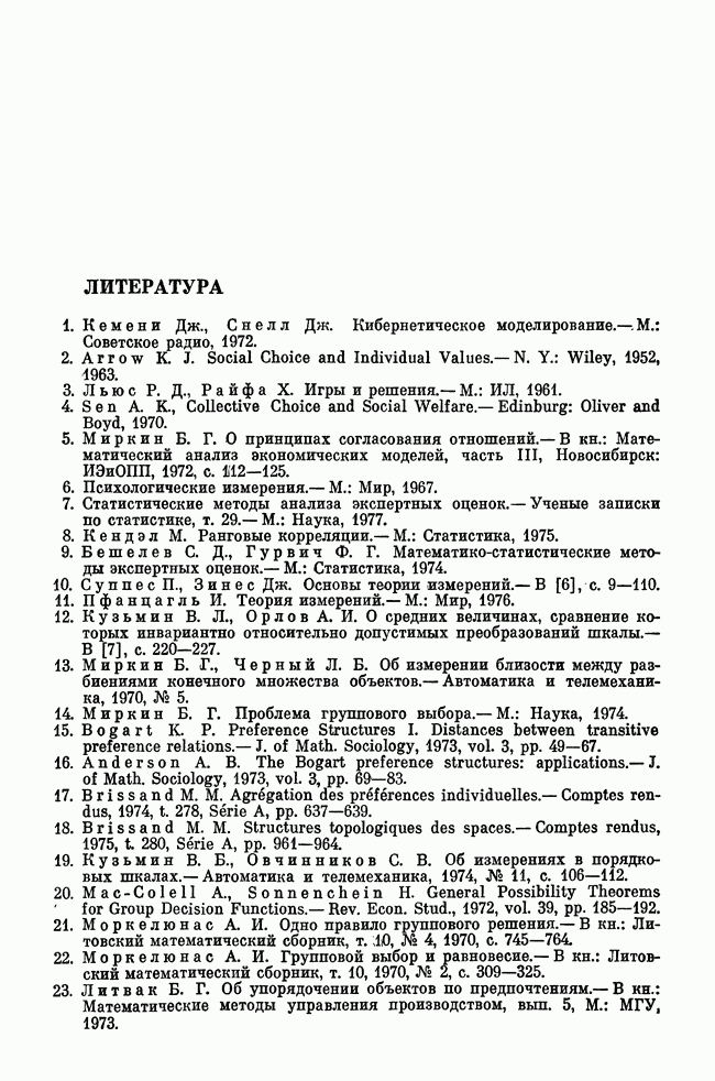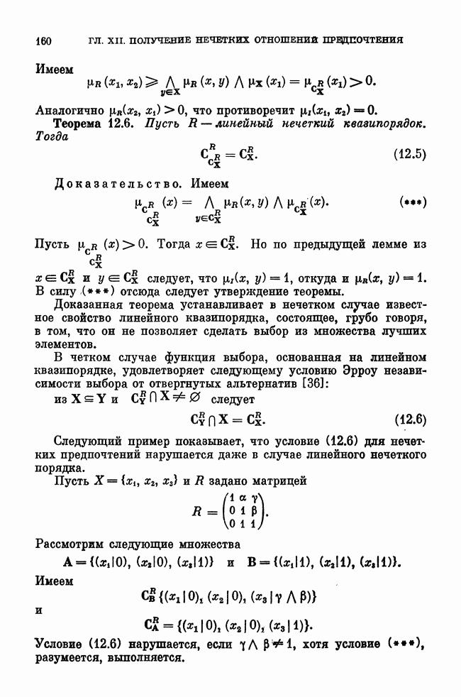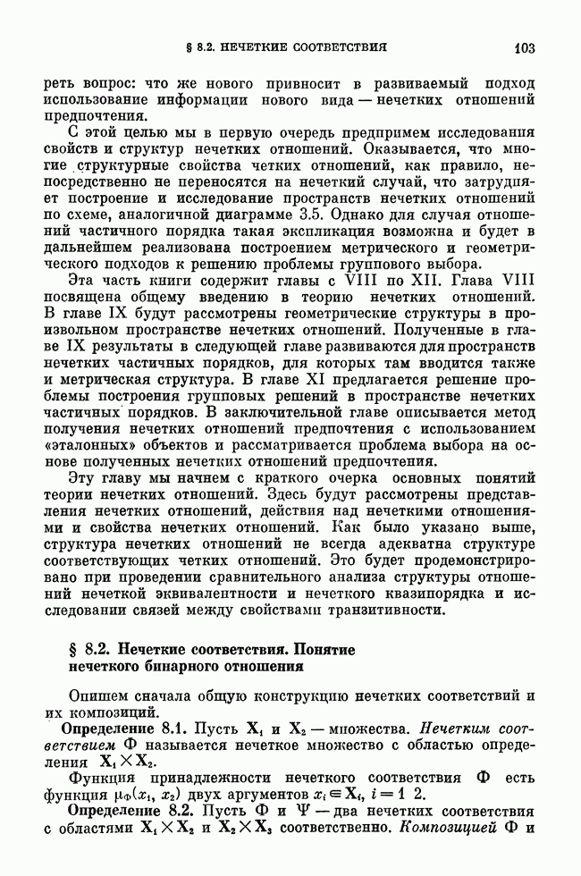 Глава VI. ОБЩИЙ АНАЛИЗ ВЫПУКЛЫХ И МЕТРИЧЕСКИХ СТРУКТУРВ предыдущих главах для решения проблемы группового выбора была развита общая теория выпуклых множеств в пространствах бинарных отношений и рассмотрены ее реализации в трех конкретных пространствах отношений индивидуального предпочтения. Настало время ответить на два вполне уместных здесь вопроса: как реализуются результаты, полученные в рамках этой теории, в остальных пространствах системы пространств, представленной на диаграмме 3.5, и как соотносятся групповые решения, получаемые на основе предложенного подхода, и подхода, при котором для построения групповых решений используется метрическая структура? Отвечая на эти вопросы, удобно взглянуть на построенную в главе III систему пространств как бы сверху. Мы начнем наш «обзор» с общего рассмотрения метрической структуры в полных пространствах и указания на ранее изученные в этом отношении пространства (§ 6.1). В следующем параграфе будут рассмотрены выпуклые и метрические структуры в рассматривавшихся ранее неполных пространствах. В конце этого параграфа ответ на первый вопрос будет представлен в таблице, подводящей итог изучению свойств полноты и выпуклости в пространствах диаграммы 3.5. В последнем параграфе этой главы будет проведено сравнение указанных двух подходов к решению проблемы группового выбора на конкретных примерах в двух пространствах диаграммы 3.5. § 6.1. Близость и метрика в полных пространствах бинарных отношенийИнтуитивно понятие близости существует в любом пространстве с метрикой — мы говорим, что точка пространстве бинарных отношений аксиоматическое описание понятия «функция близости», более широкое, чем понятие метрики, в конечном итоге приводит к однозначной метрической структуре. Этим мы, безусловно, обязаны специфике рассматриваемых задач. В этом параграфе мы рассмотрим функции близости и расстояния для случая полных пространств бинарных отношений, где связь между этими понятиями становится наиболее прозрачной. Начнем со следующего общего определения. Определение 6.1. Пусть А1. Аддитивность: