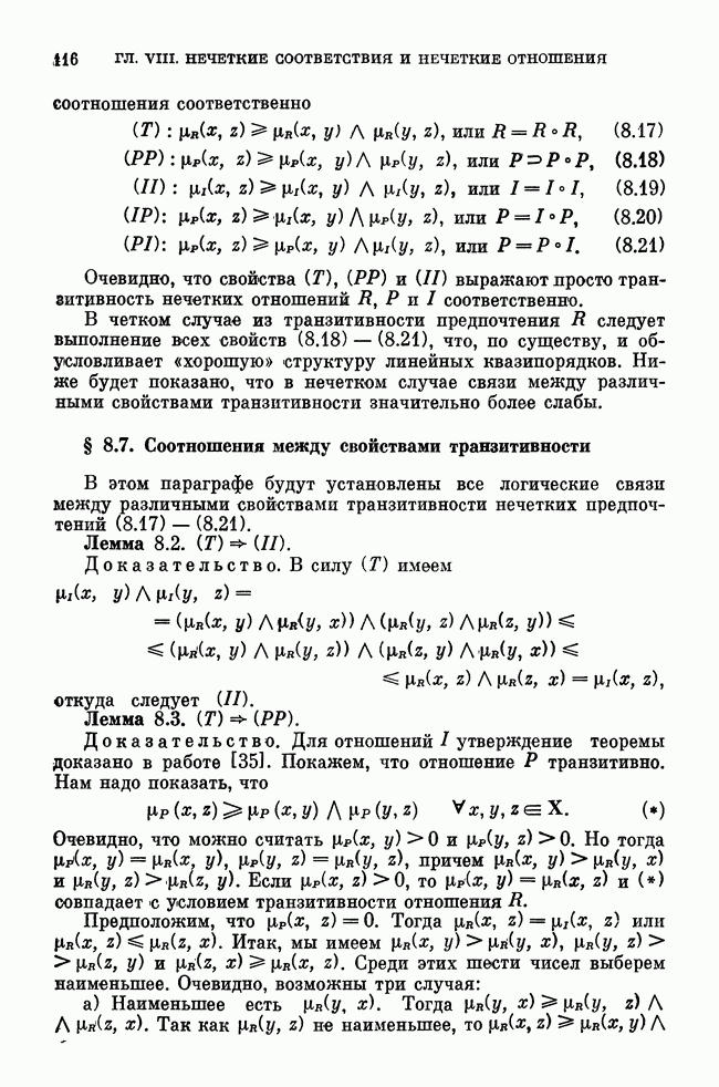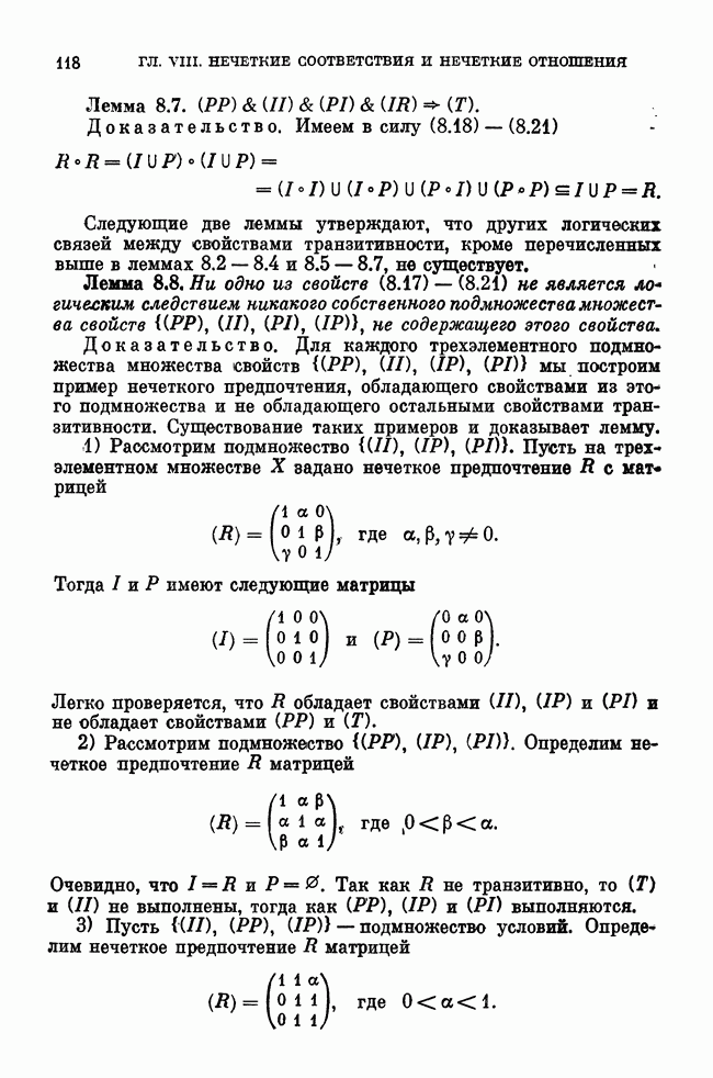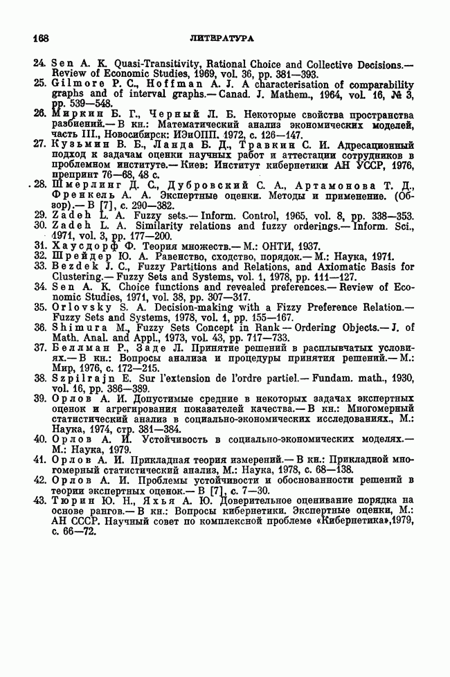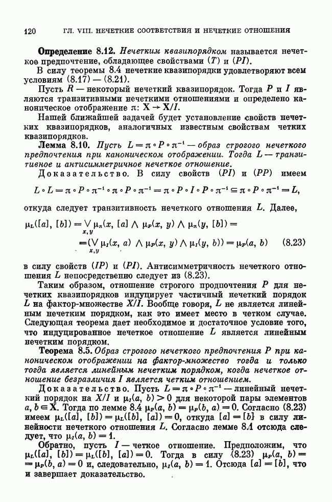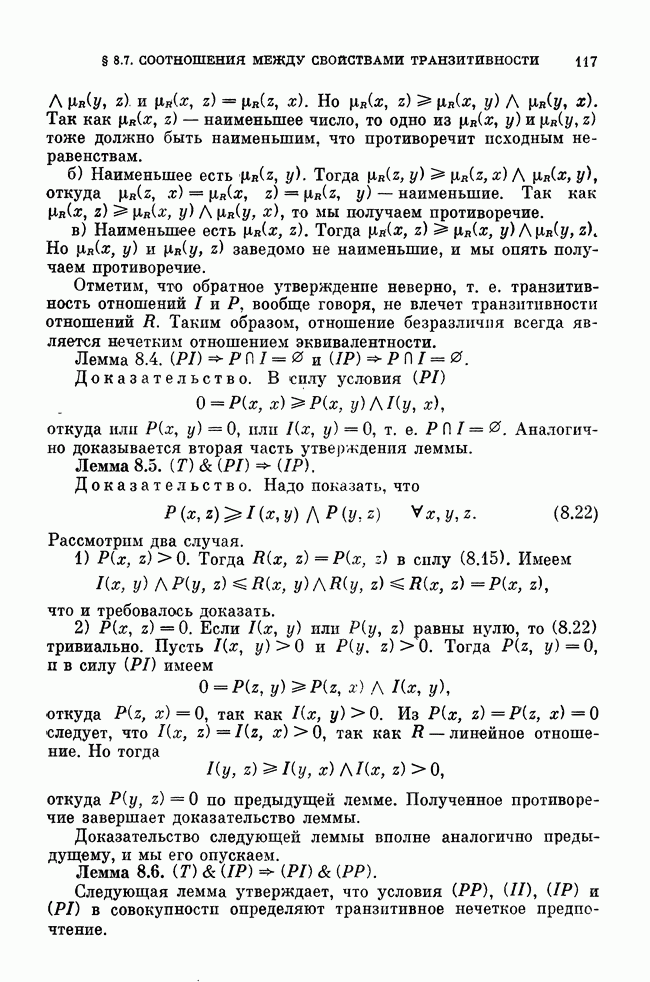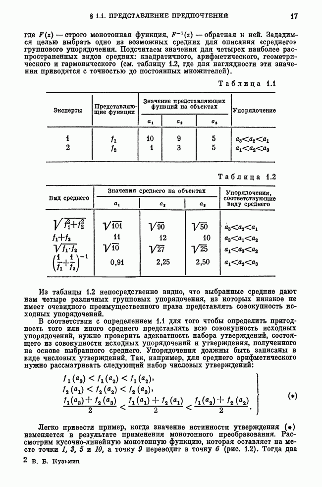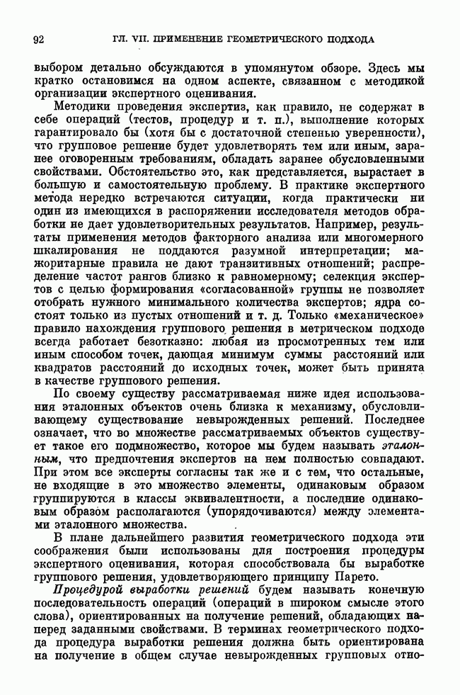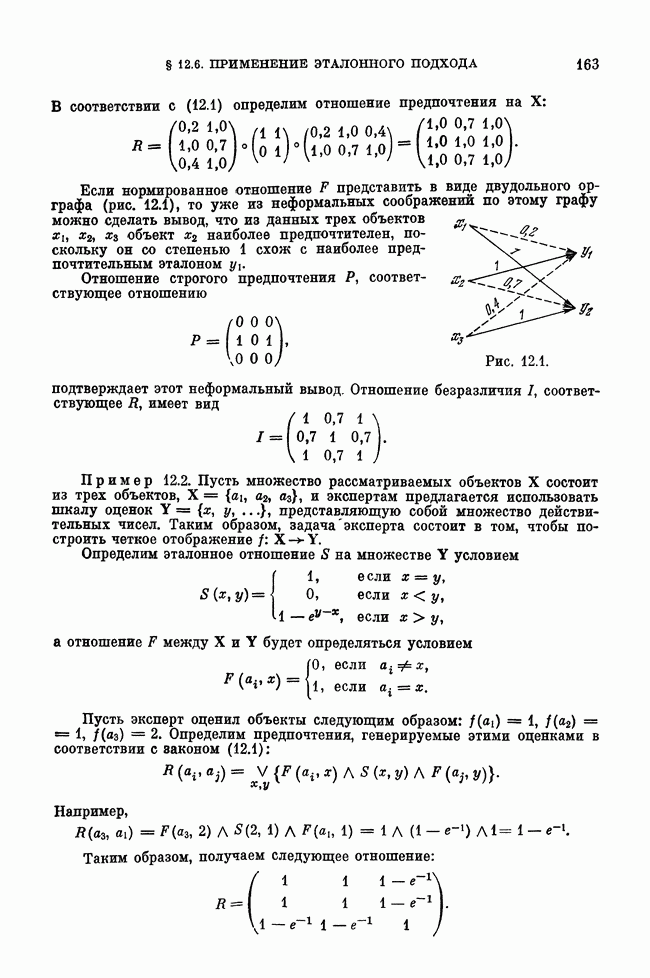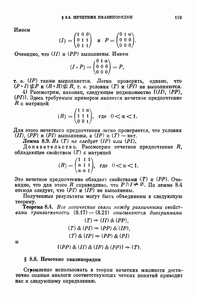 Глава VI. ОБЩИЙ АНАЛИЗ ВЫПУКЛЫХ И МЕТРИЧЕСКИХ СТРУКТУРВ предыдущих главах для решения проблемы группового выбора была развита общая теория выпуклых множеств в пространствах бинарных отношений и рассмотрены ее реализации в трех конкретных пространствах отношений индивидуального предпочтения. Настало время ответить на два вполне уместных здесь вопроса: как реализуются результаты, полученные в рамках этой теории, в остальных пространствах системы пространств, представленной на диаграмме 3.5, и как соотносятся групповые решения, получаемые на основе предложенного подхода, и подхода, при котором для построения групповых решений используется метрическая структура? Отвечая на эти вопросы, удобно взглянуть на построенную в главе III систему пространств как бы сверху. Мы начнем наш «обзор» с общего рассмотрения метрической структуры в полных пространствах и указания на ранее изученные в этом отношении пространства (§ 6.1). В следующем параграфе будут рассмотрены выпуклые и метрические структуры в рассматривавшихся ранее неполных пространствах. В конце этого параграфа ответ на первый вопрос будет представлен в таблице, подводящей итог изучению свойств полноты и выпуклости в пространствах диаграммы 3.5. В последнем параграфе этой главы будет проведено сравнение указанных двух подходов к решению проблемы группового выбора на конкретных примерах в двух пространствах диаграммы 3.5. § 6.1. Близость и метрика в полных пространствах бинарных отношенийИнтуитивно понятие близости существует в любом пространстве с метрикой — мы говорим, что точка пространстве бинарных отношений аксиоматическое описание понятия «функция близости», более широкое, чем понятие метрики, в конечном итоге приводит к однозначной метрической структуре. Этим мы, безусловно, обязаны специфике рассматриваемых задач. В этом параграфе мы рассмотрим функции близости и расстояния для случая полных пространств бинарных отношений, где связь между этими понятиями становится наиболее прозрачной. Начнем со следующего общего определения. Определение 6.1. Пусть А1. Аддитивность: