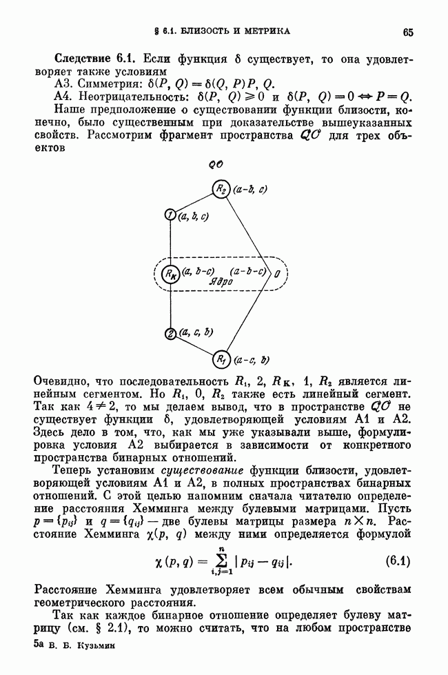Согласно условию Следствие 6.1. Если функция А3. Симметрия: А4. Неотрицательность: Наше предположение о существовании функции близости, конечно, было существенным при доказательстве вышеуказанных свойств. Рассмотрим фрагмент пространства