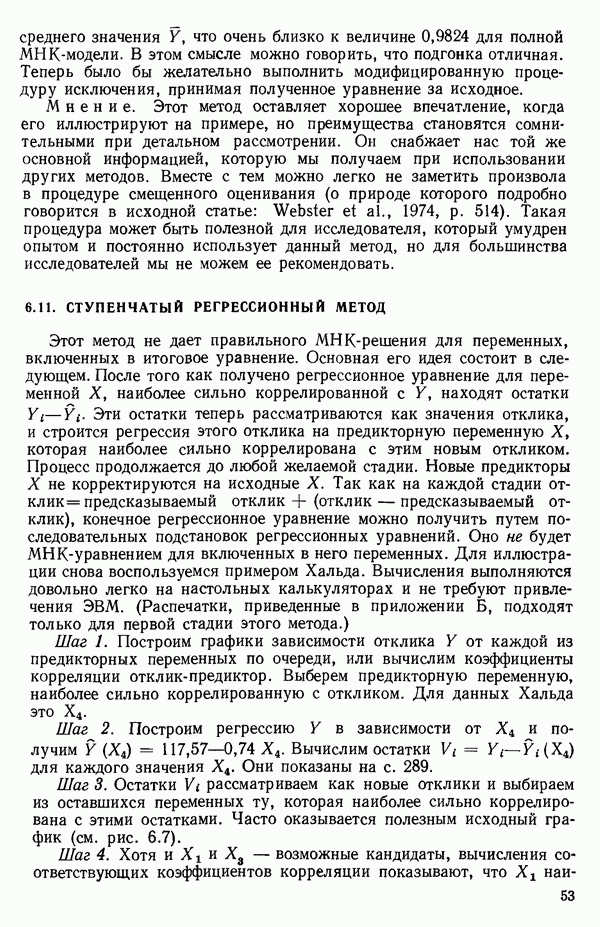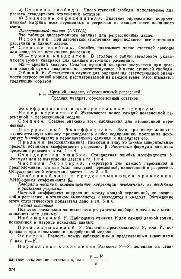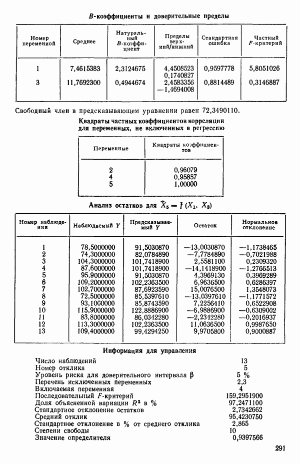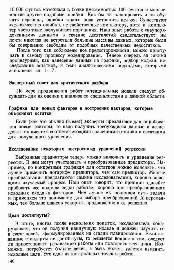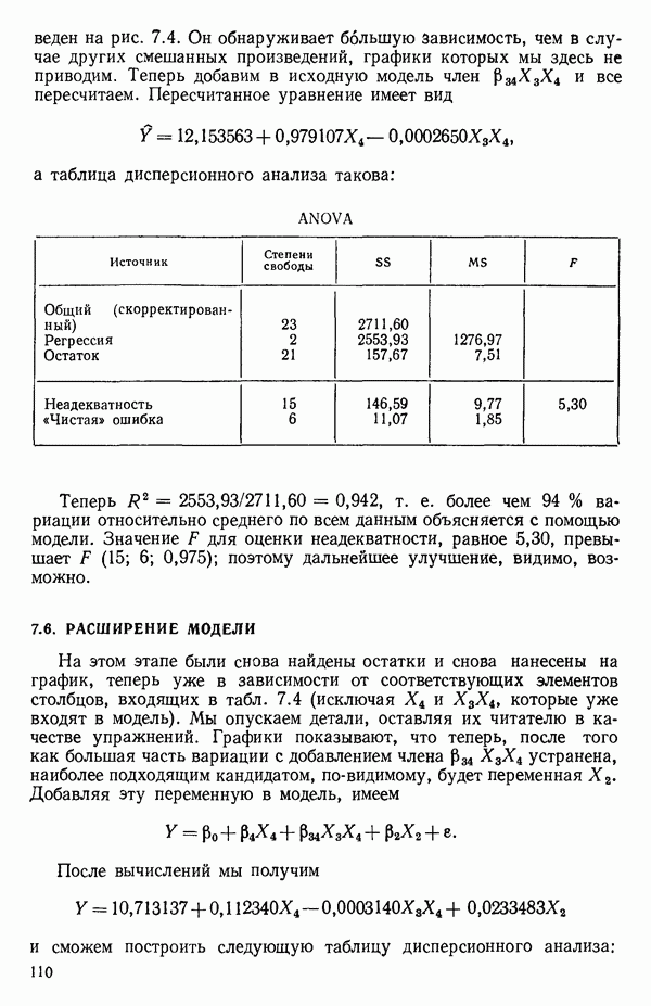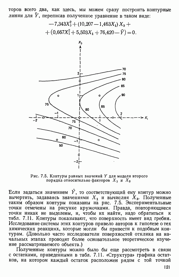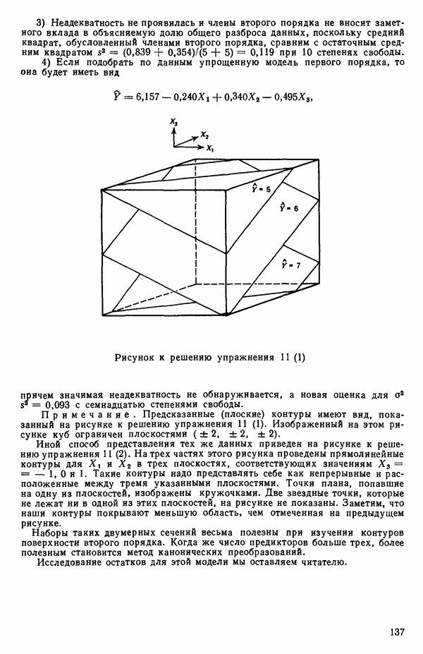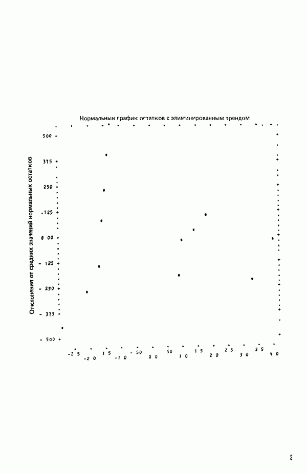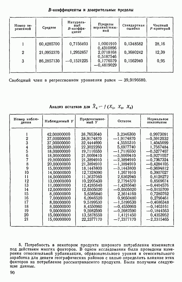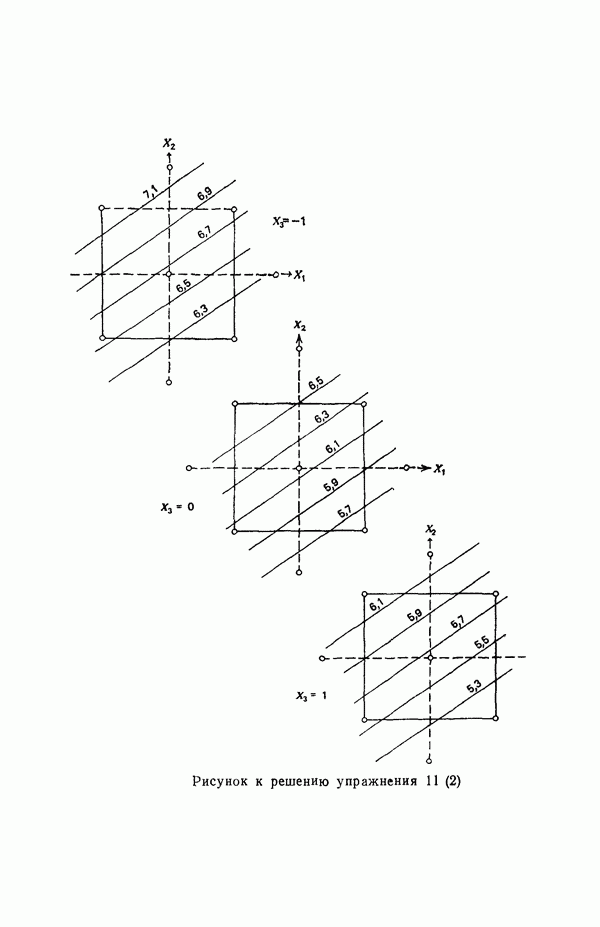 , т. е. модель должна считаться неадекватной. Чтобы разобраться в этом, мы можем исследовать остатки, вычерчивая, в частности, их графики в зависимости от «кандидатов» в новые факторы. Исходные наблюдения, предсказанные значения и остатки приведены в табл. 7.3. На рис. 7.1, 7.2 и 7.3 показаны графики остатков в зависимости от