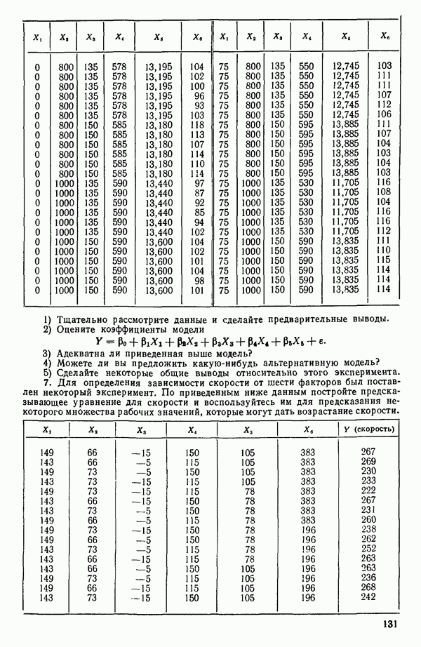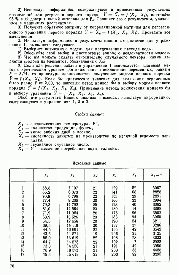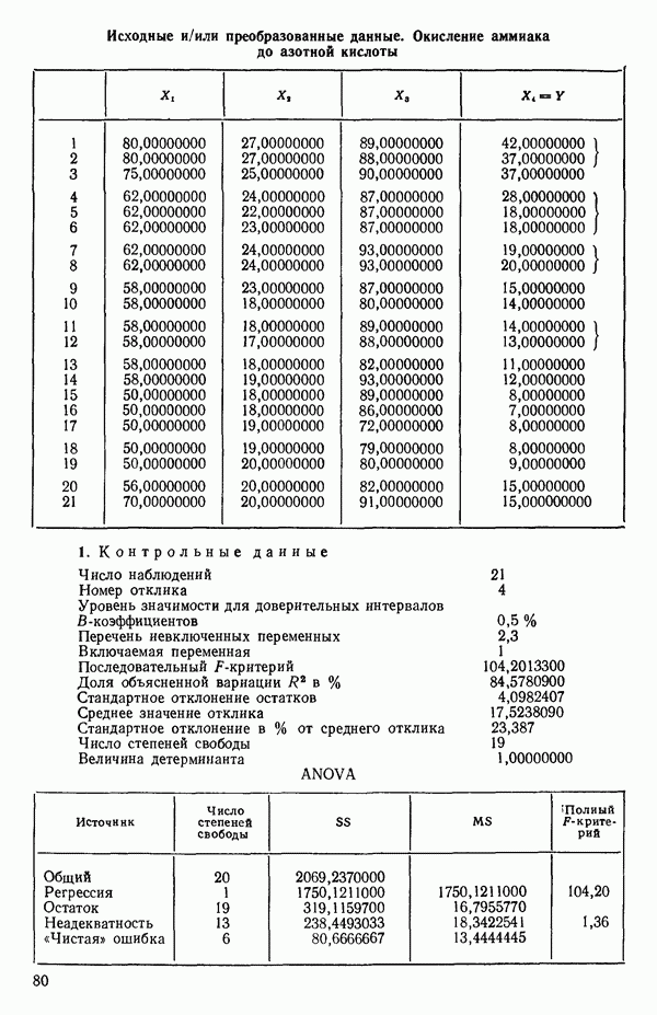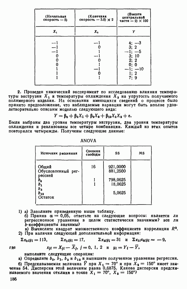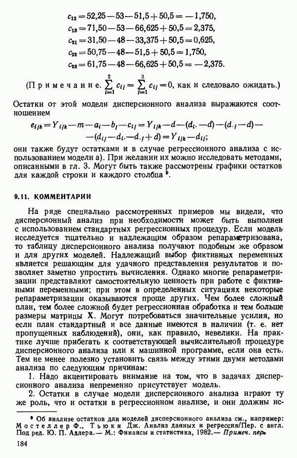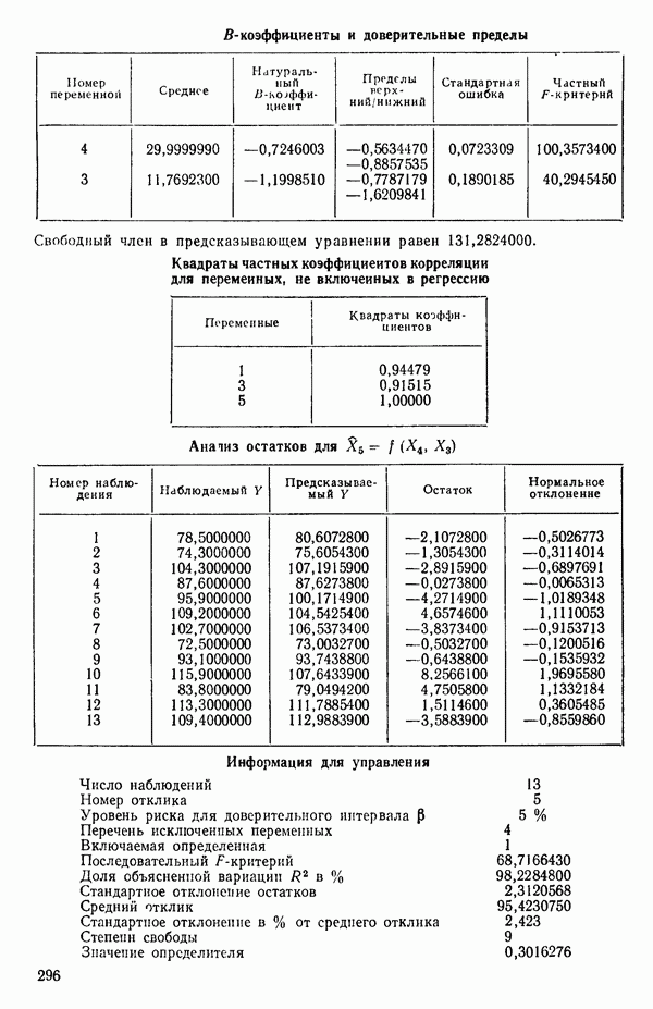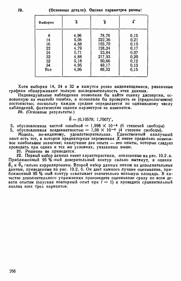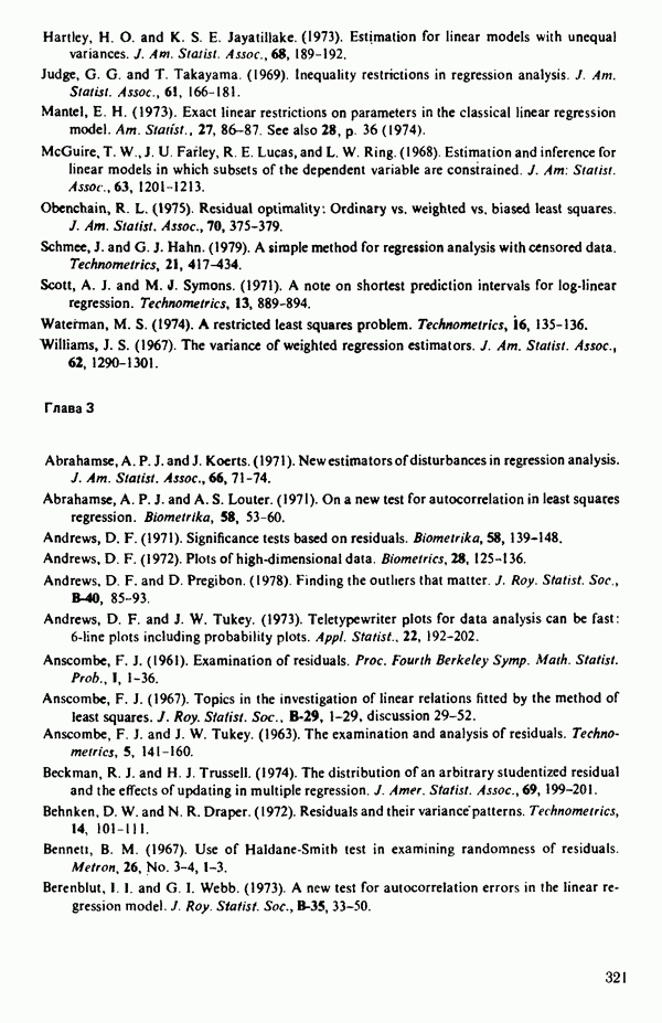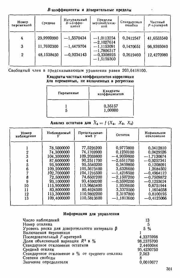 , т. е. модель должна считаться неадекватной. Чтобы разобраться в этом, мы можем исследовать остатки, вычерчивая, в частности, их графики в зависимости от «кандидатов» в новые факторы. Исходные наблюдения, предсказанные значения и остатки приведены в табл. 7.3. На рис. 7.1, 7.2 и 7.3 показаны графики остатков в зависимости от