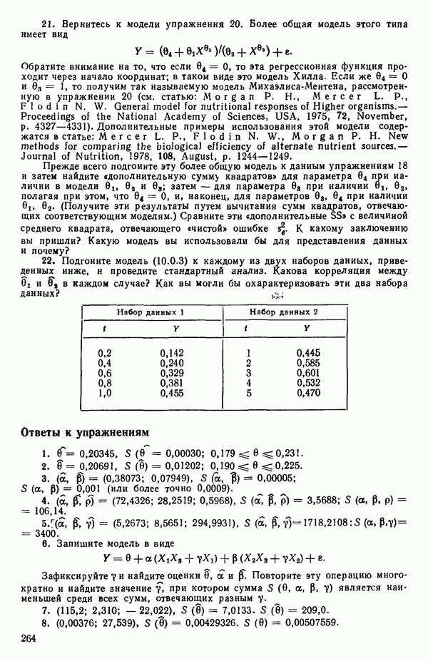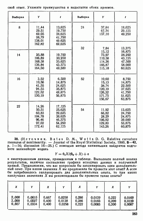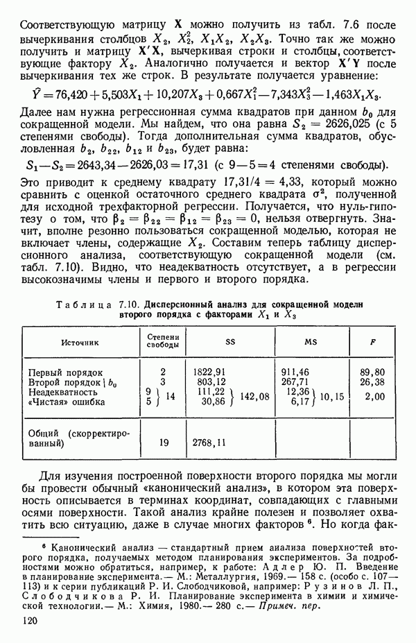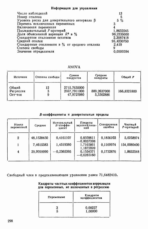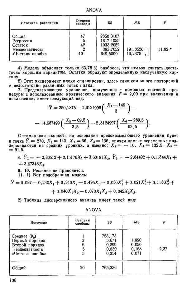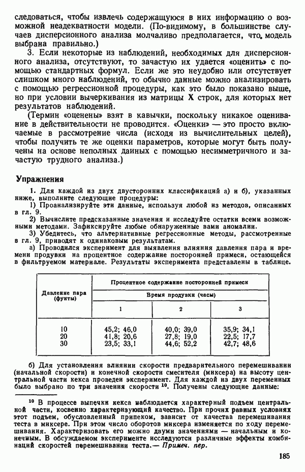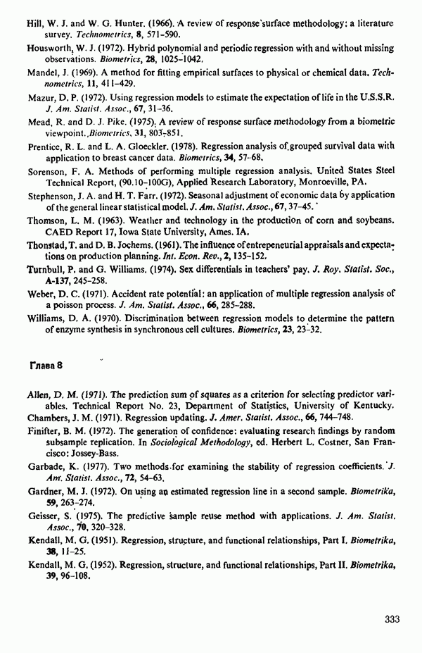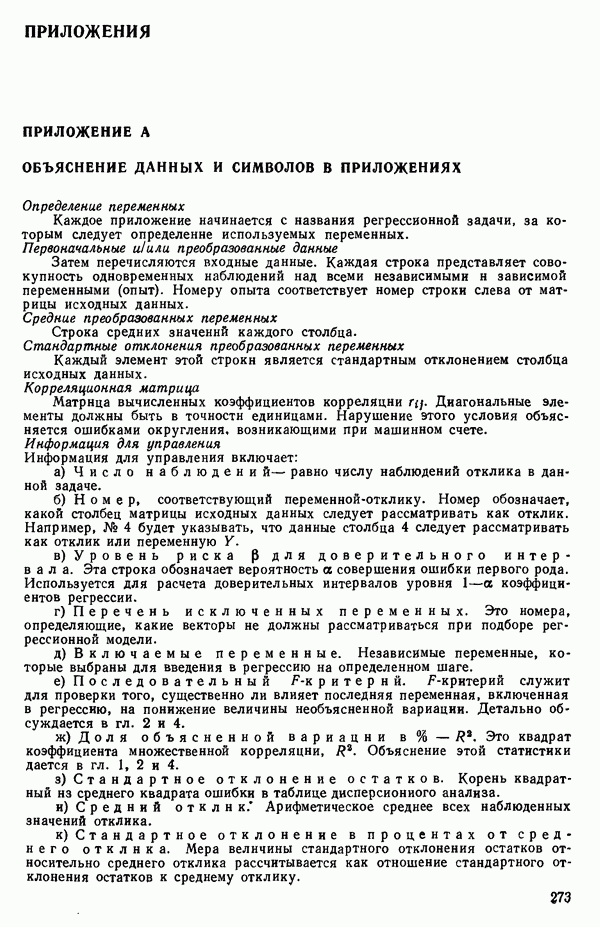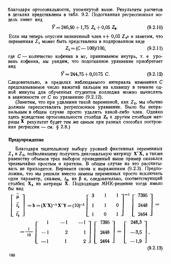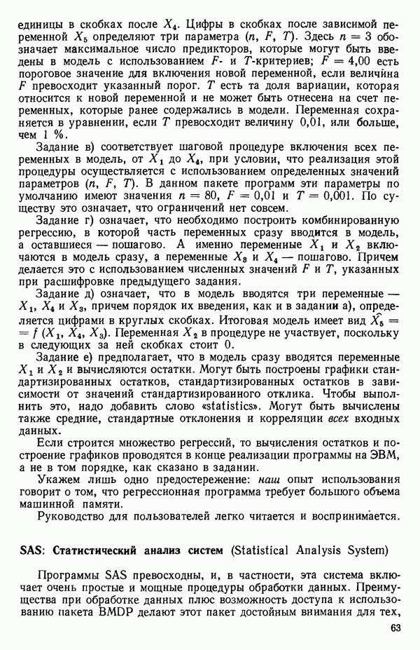 , т. е. модель должна считаться неадекватной. Чтобы разобраться в этом, мы можем исследовать остатки, вычерчивая, в частности, их графики в зависимости от «кандидатов» в новые факторы. Исходные наблюдения, предсказанные значения и остатки приведены в табл. 7.3. На рис. 7.1, 7.2 и 7.3 показаны графики остатков в зависимости от
