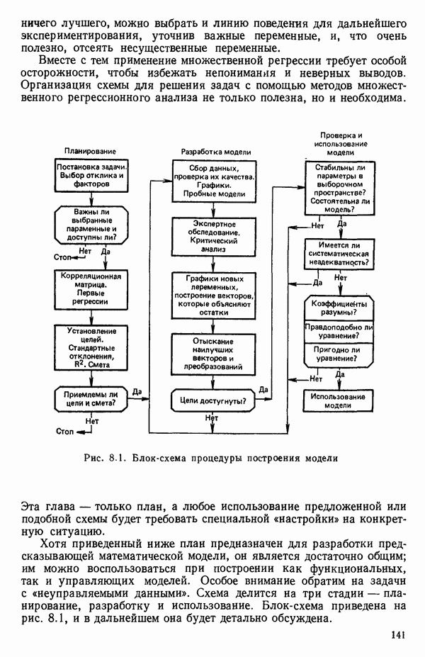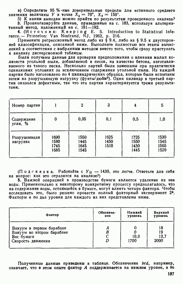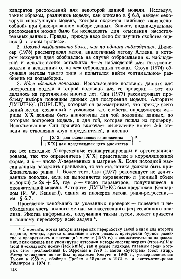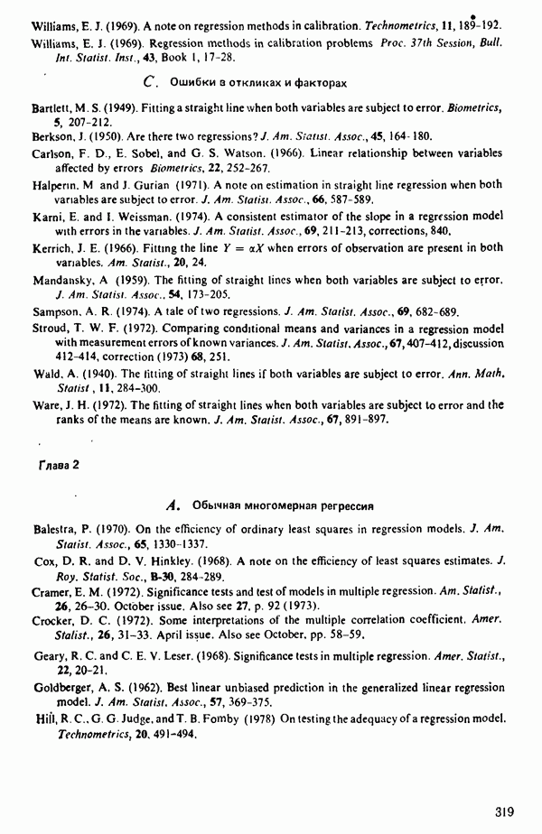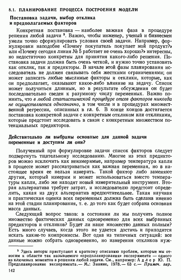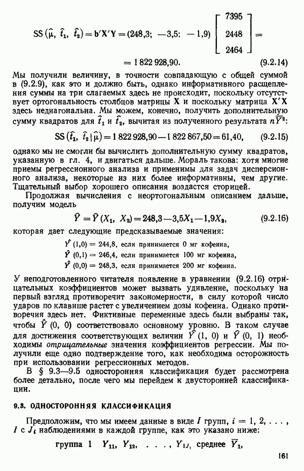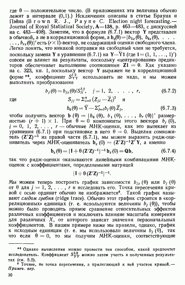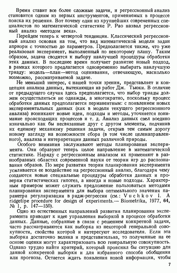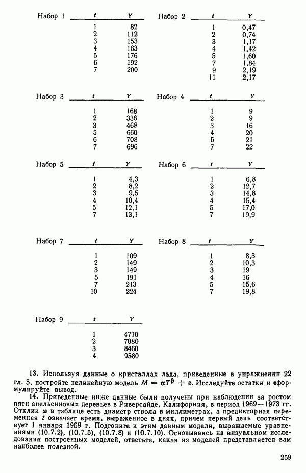 , т. е. модель должна считаться неадекватной. Чтобы разобраться в этом, мы можем исследовать остатки, вычерчивая, в частности, их графики в зависимости от «кандидатов» в новые факторы. Исходные наблюдения, предсказанные значения и остатки приведены в табл. 7.3. На рис. 7.1, 7.2 и 7.3 показаны графики остатков в зависимости от