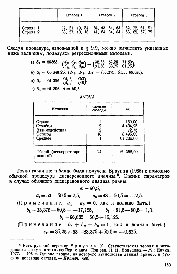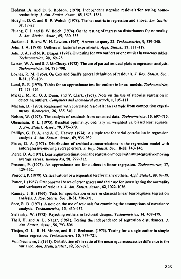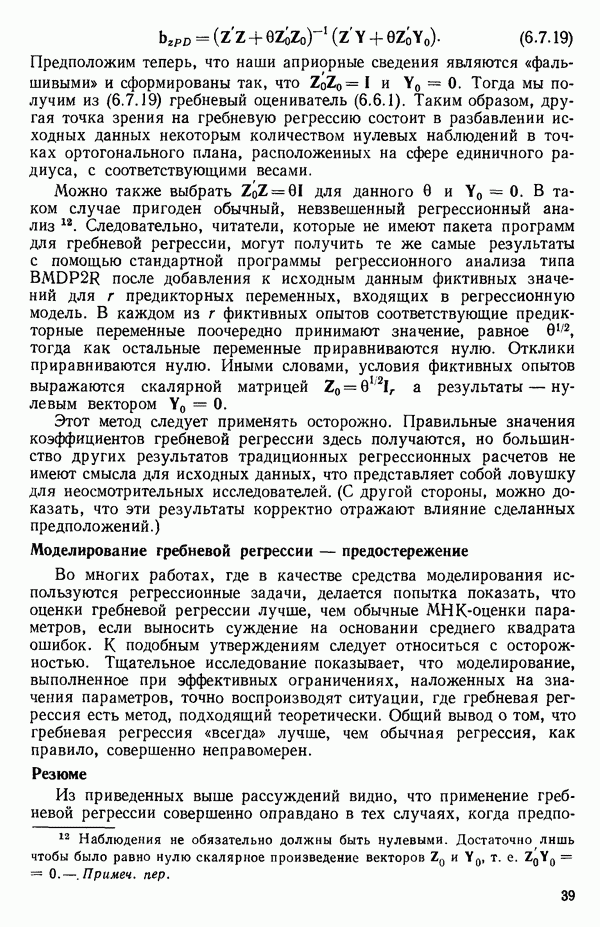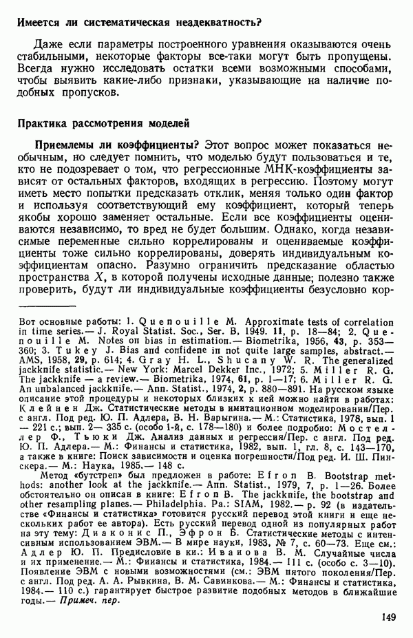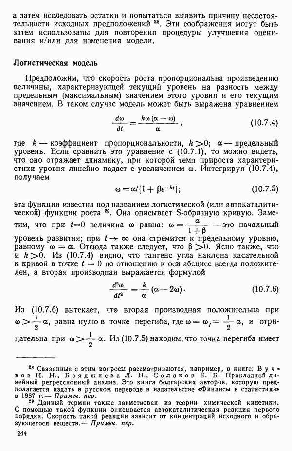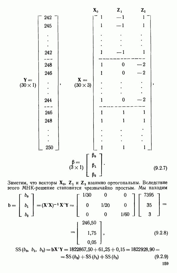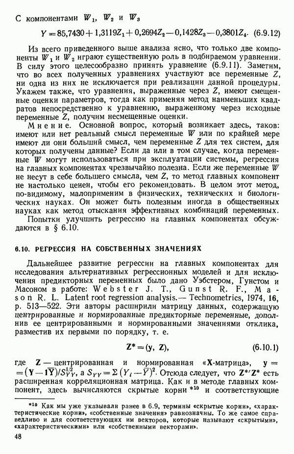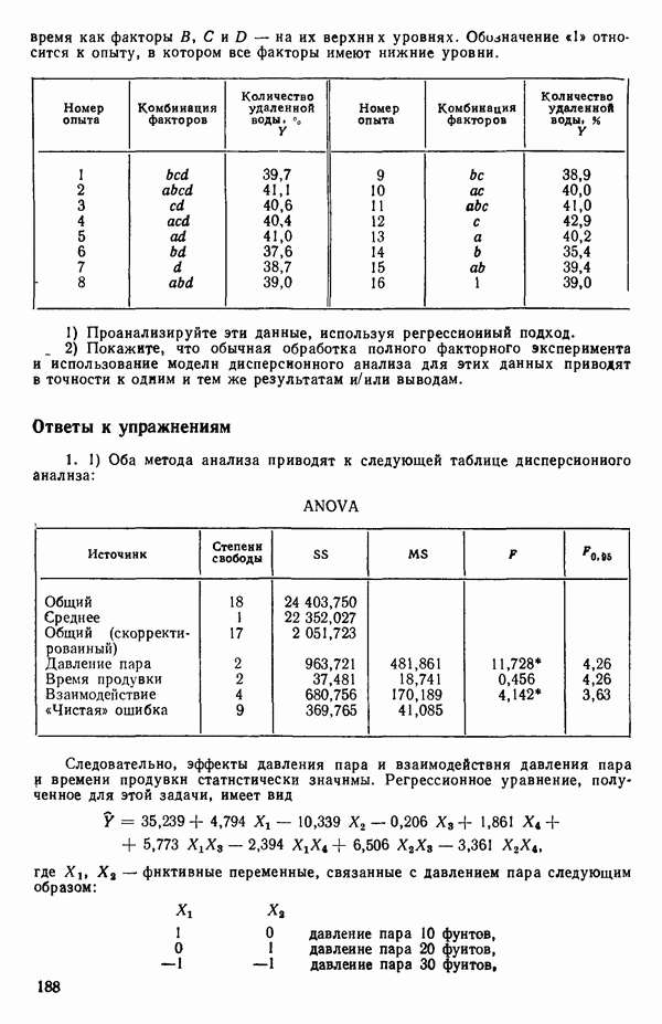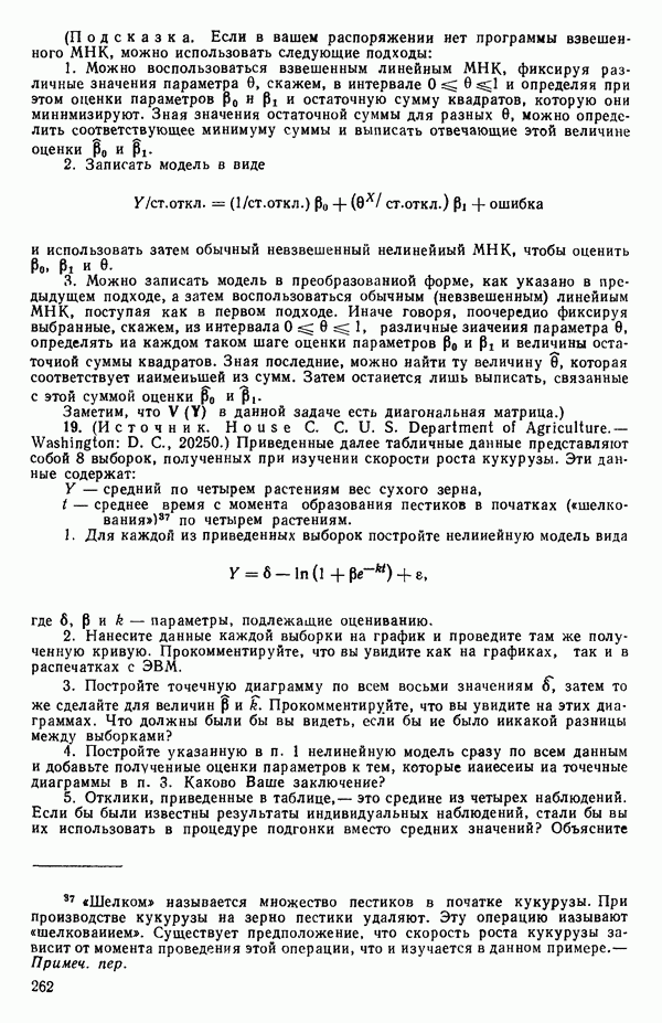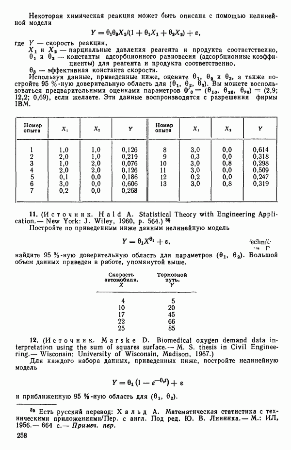 , т. е. модель должна считаться неадекватной. Чтобы разобраться в этом, мы можем исследовать остатки, вычерчивая, в частности, их графики в зависимости от «кандидатов» в новые факторы. Исходные наблюдения, предсказанные значения и остатки приведены в табл. 7.3. На рис. 7.1, 7.2 и 7.3 показаны графики остатков в зависимости от
