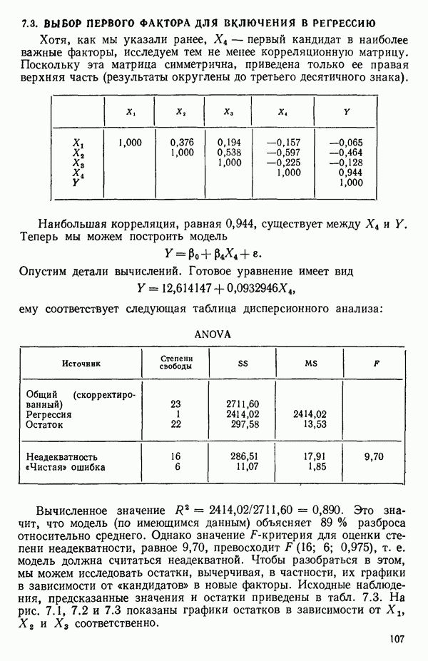 7.3. ВЫБОР ПЕРВОГО ФАКТОРА ДЛЯ ВКЛЮЧЕНИЯ В РЕГРЕССИЮ