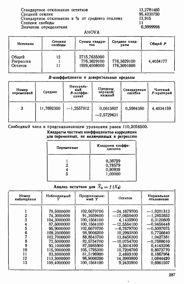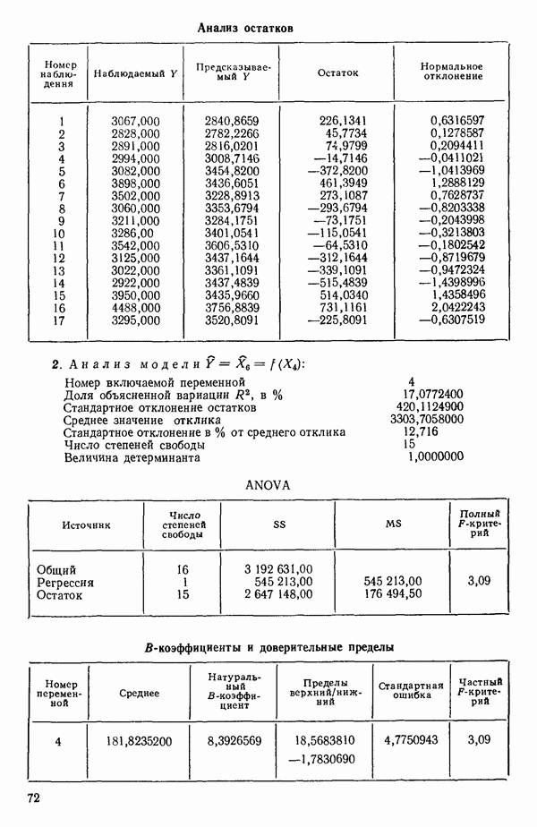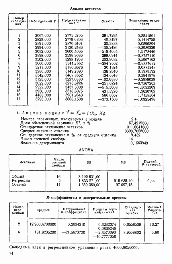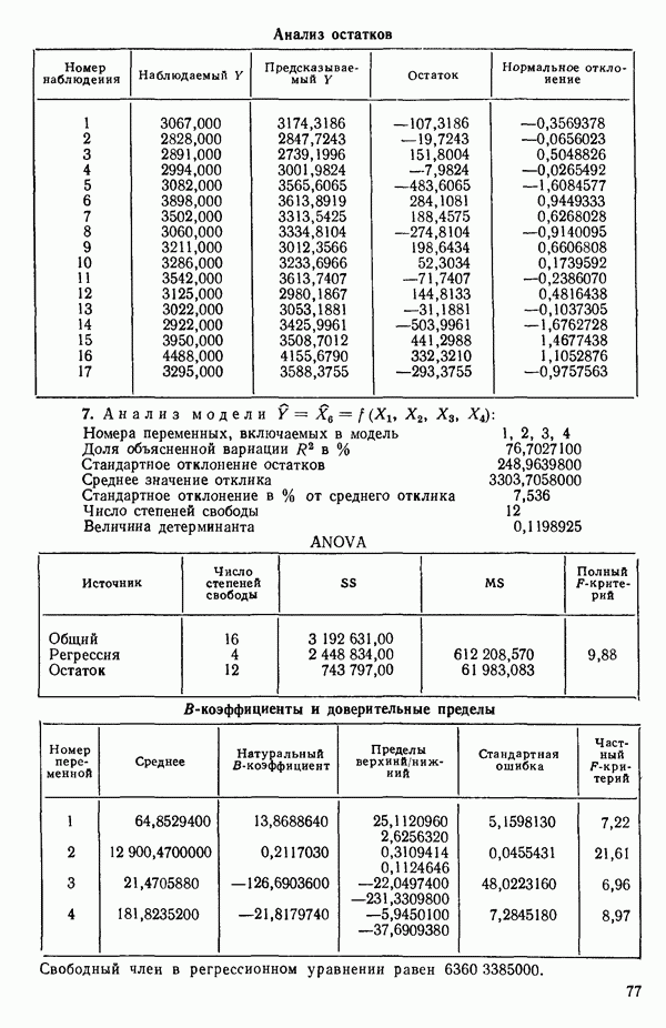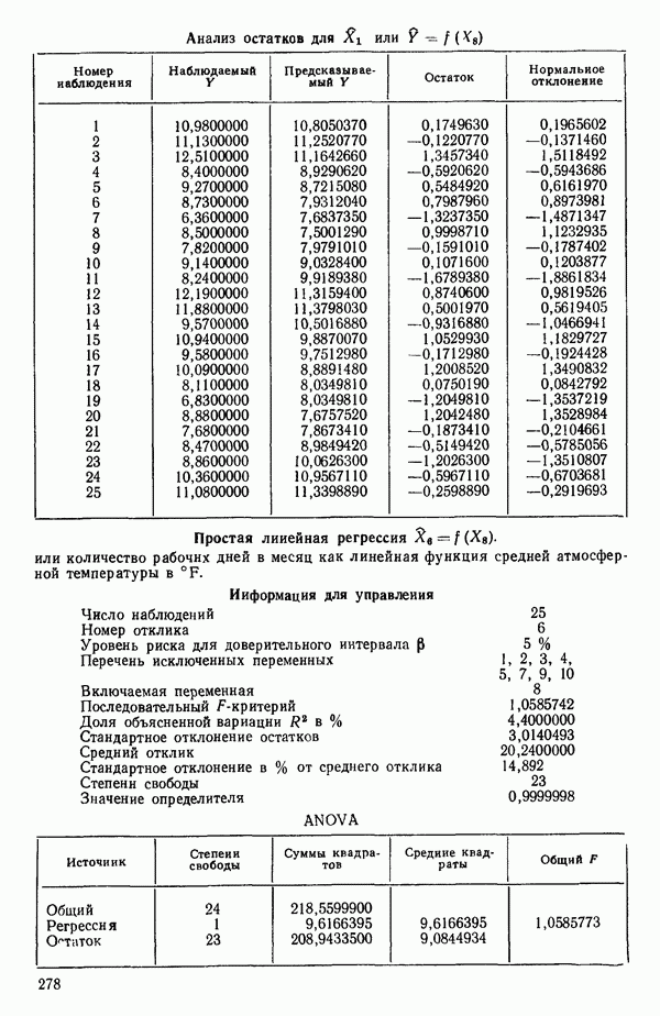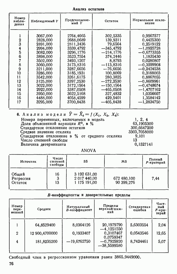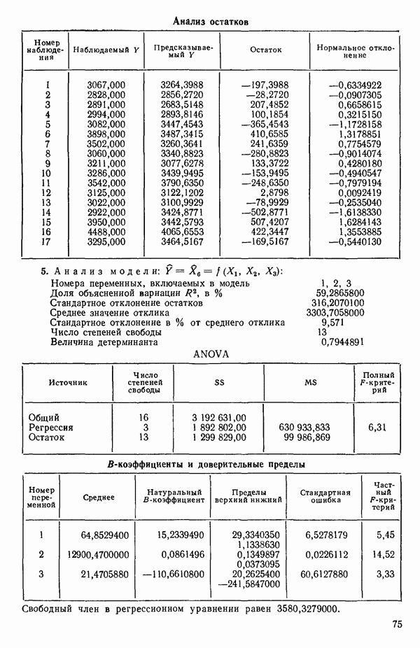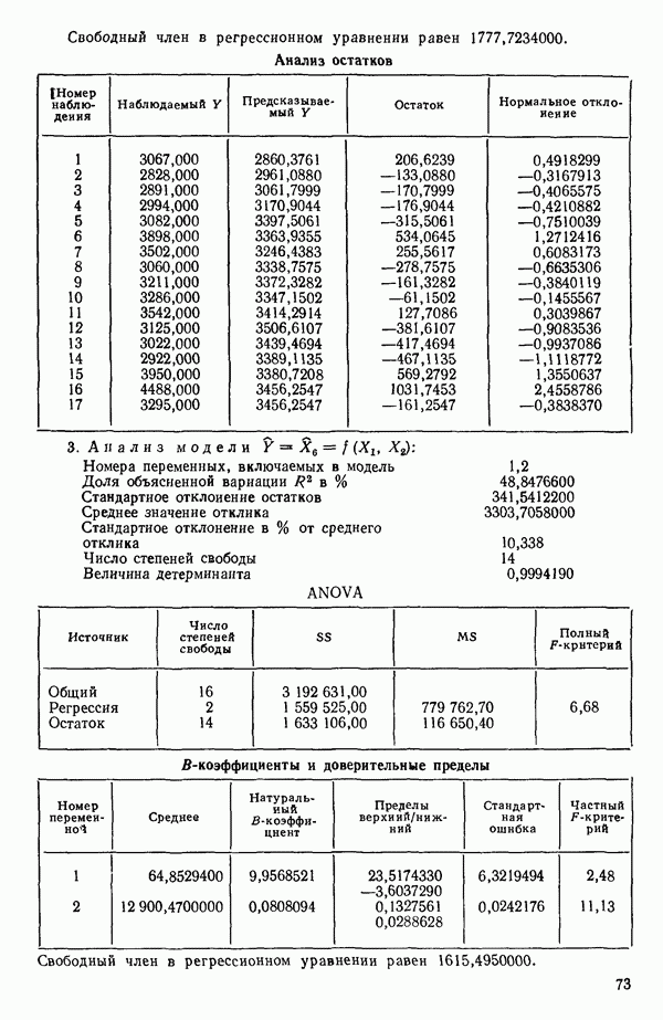 Таблица 7.3. Наблюдения, предсказанные значения и остатки