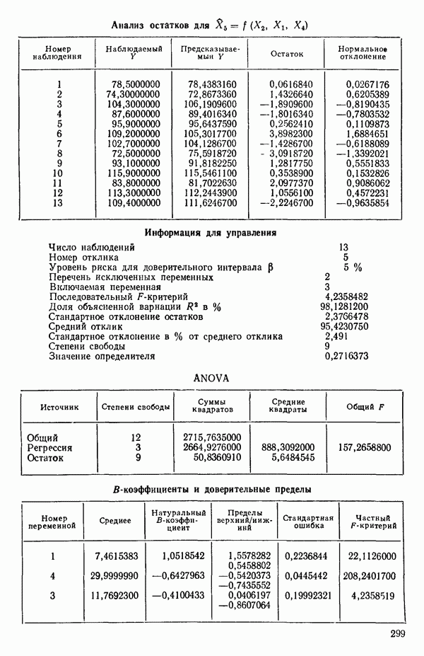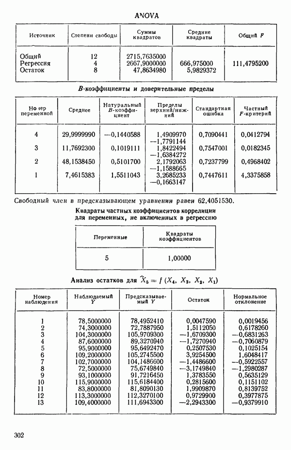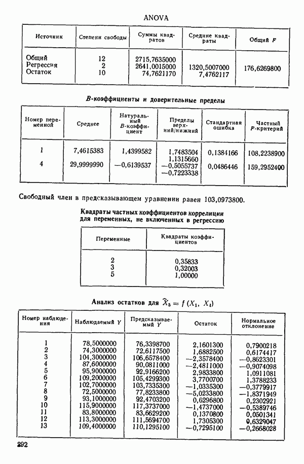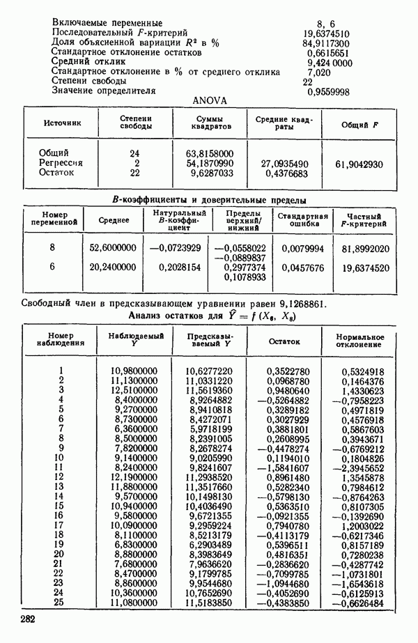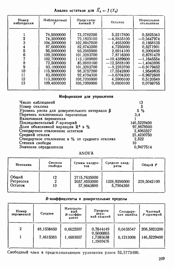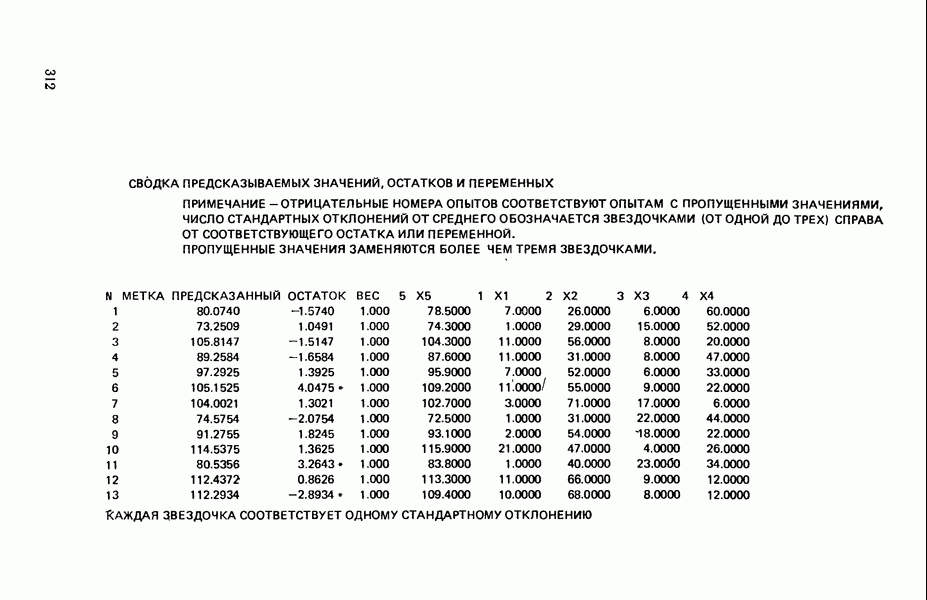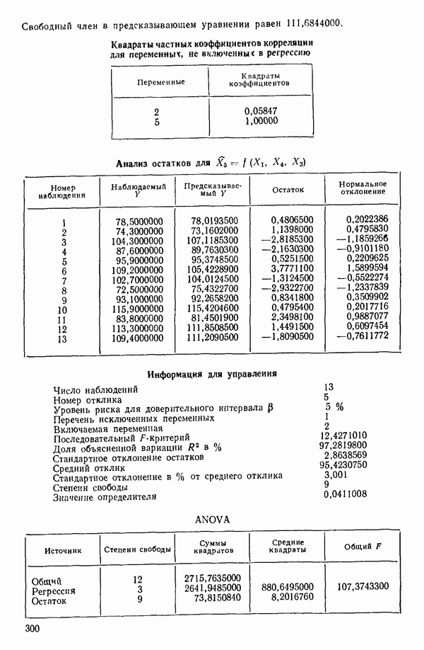 Таблица 7.3. Наблюдения, предсказанные значения и остатки
