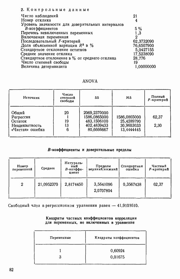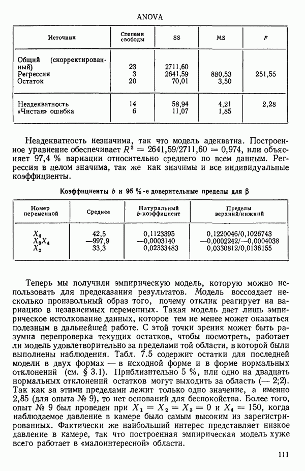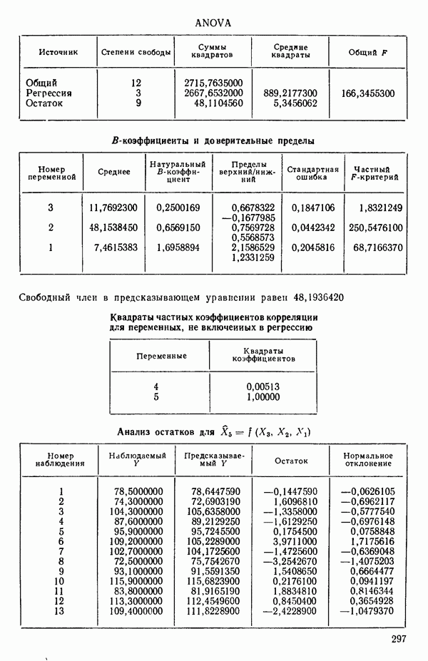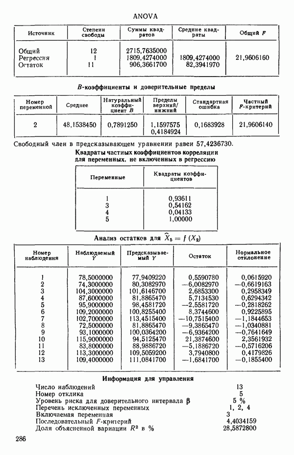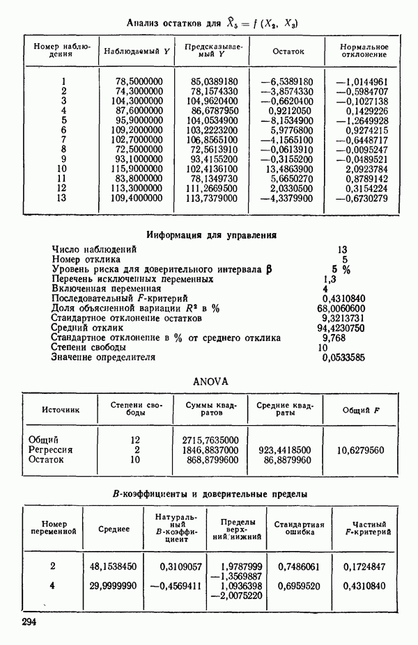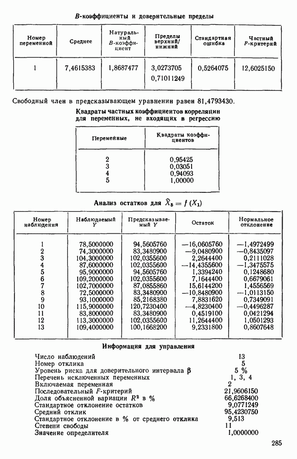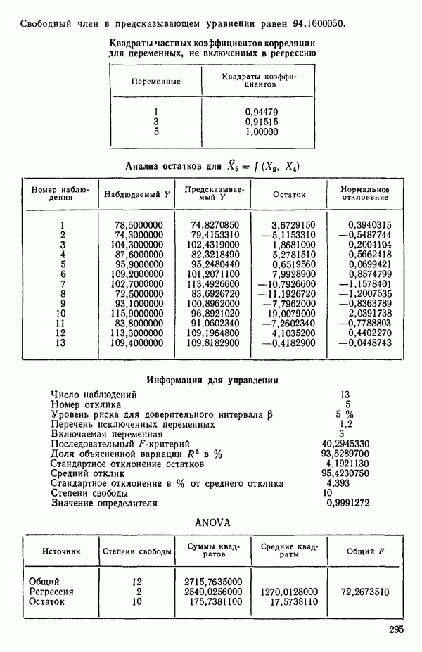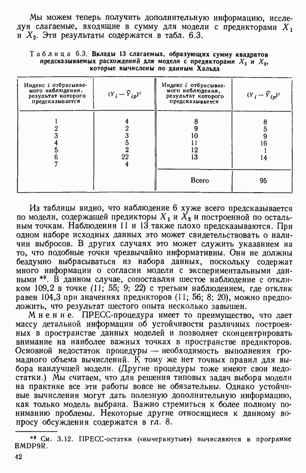 Таблица 7.3. Наблюдения, предсказанные значения и остатки